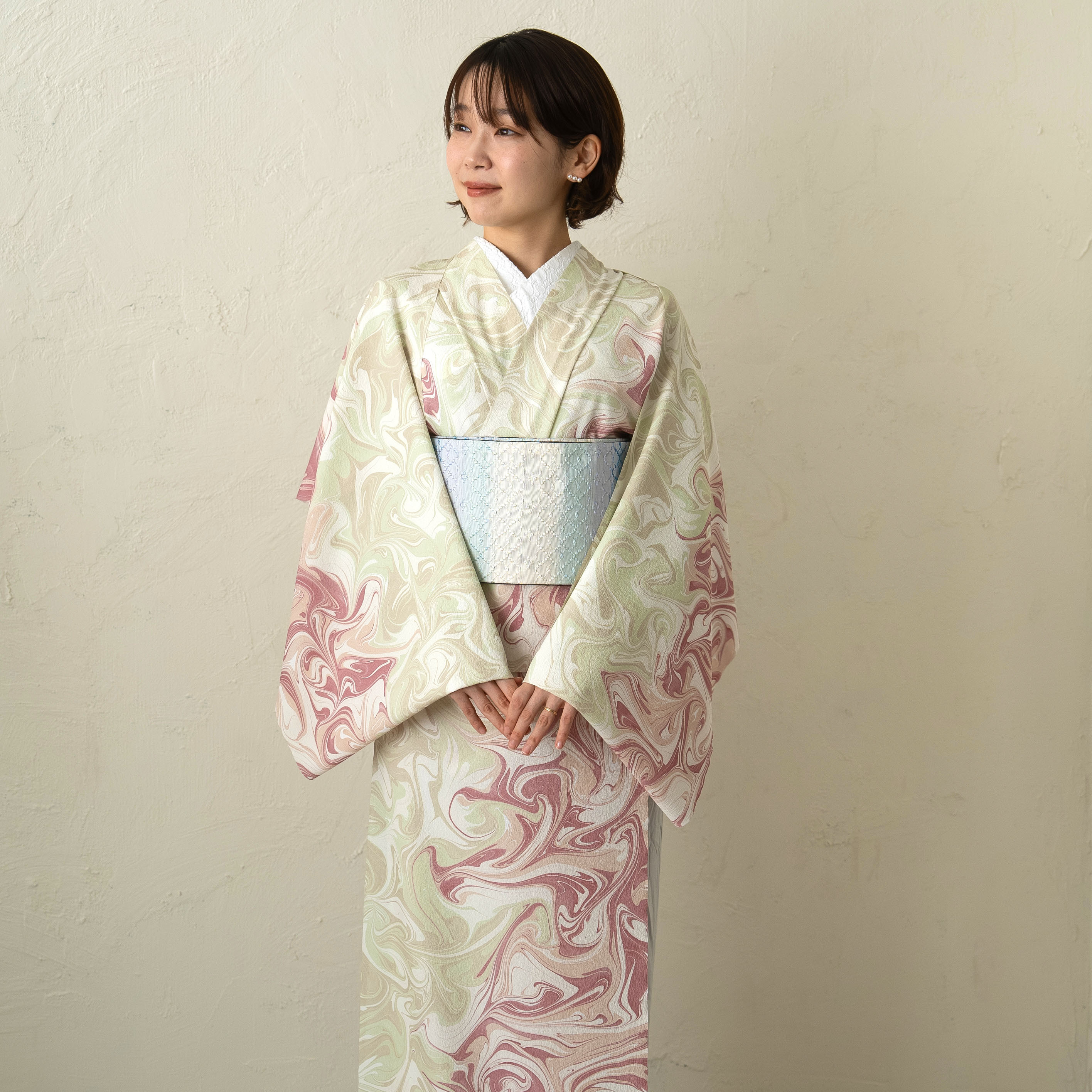 季節を問わず、いつでも上品な華やかさを纏える一着。シンプルな帯を合わせればエレガントに、遊び心のある小物をプラスすれば洗練されたモダンスタイルに。自由な感性でコーディネートを楽しんでいただける、ロングセラーデザインです。
