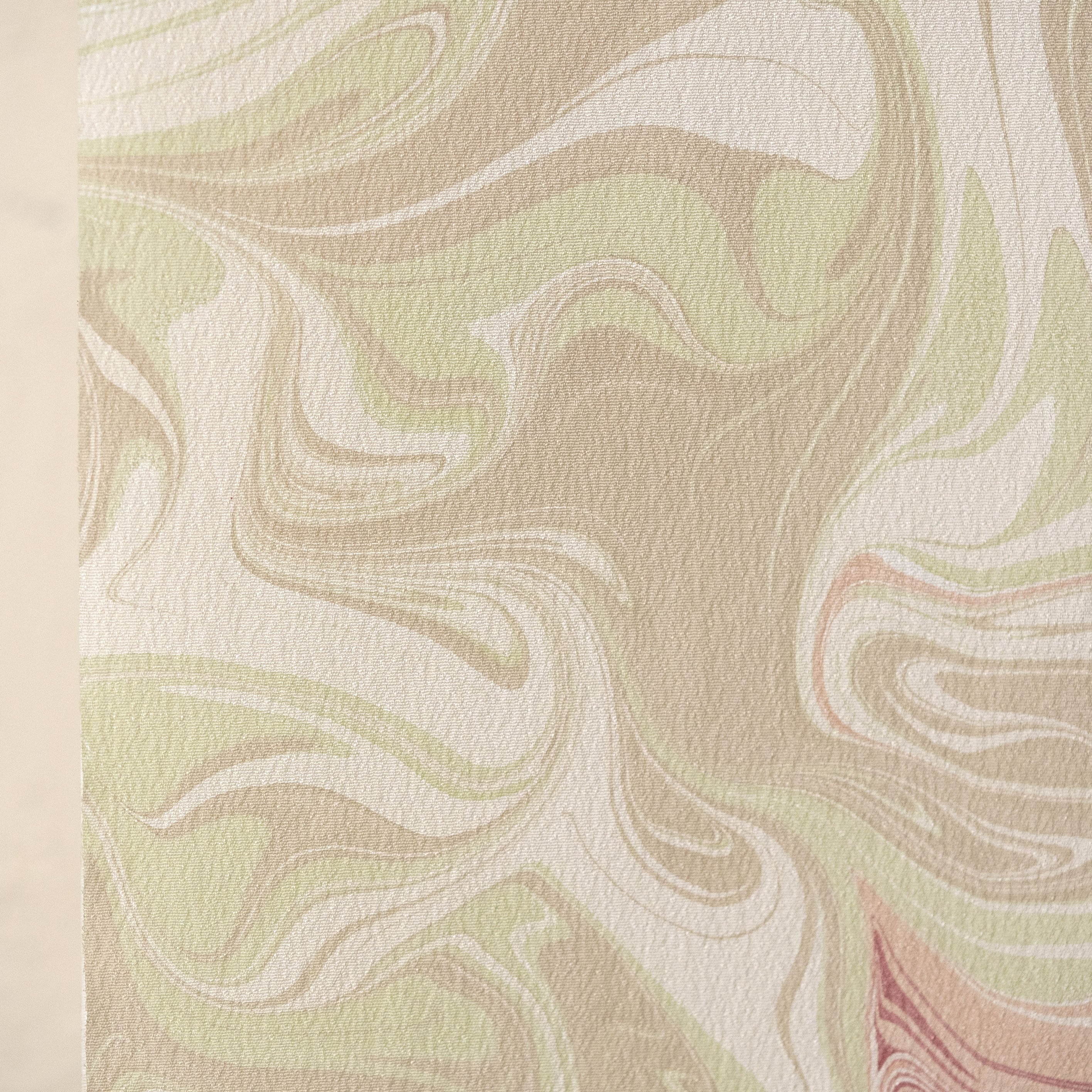 柔らかく溶け合うピスタチオグリーンとボルドーが、まるで花びらが風に舞うように優雅に広がる一着。繊細でありながら大胆な大柄のデザインが、纏う人の魅力をより一層引き立てます。