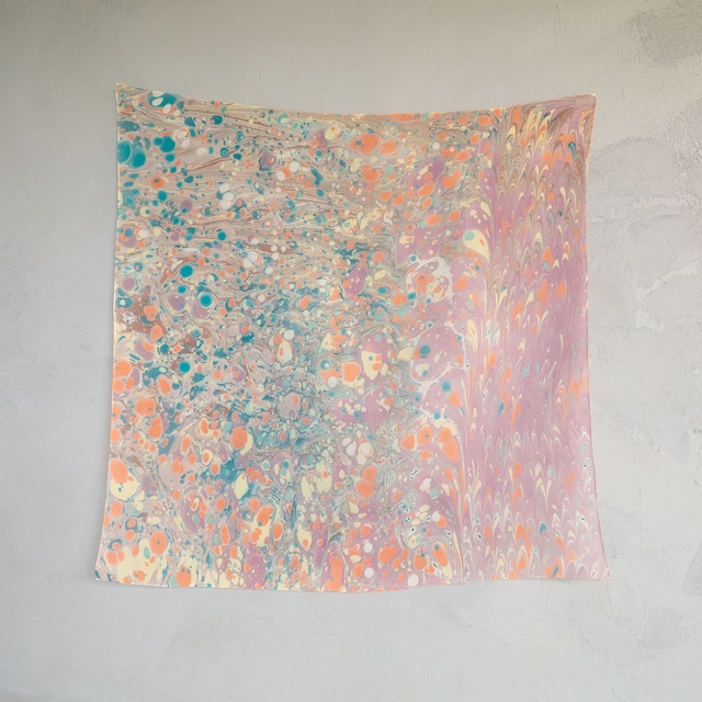 作家恭平の墨流し技法で制作した手染めの国産シルク100%スカーフ。