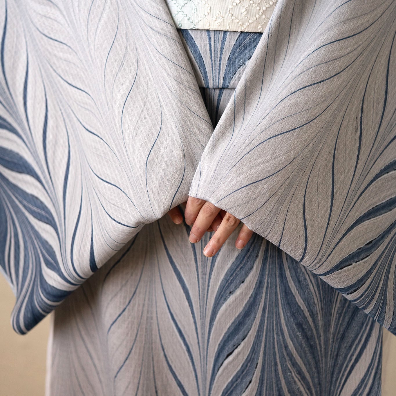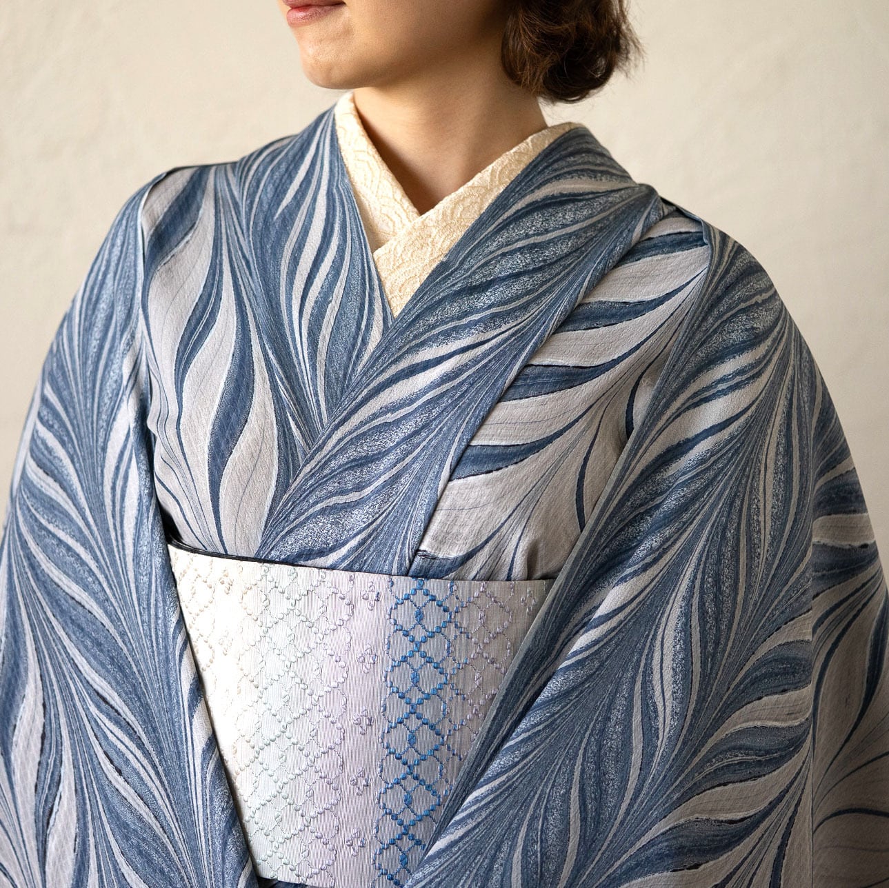 こちらは『墨流し作家:恭平』が染めた洗える着物の反物です。