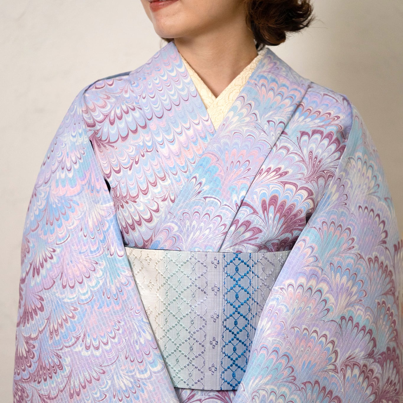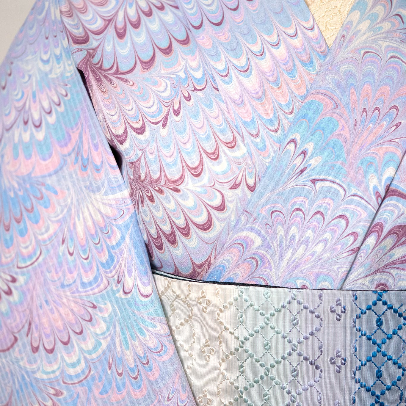 こちらは『墨流し作家:恭平』が染めた洗える着物の反物です。