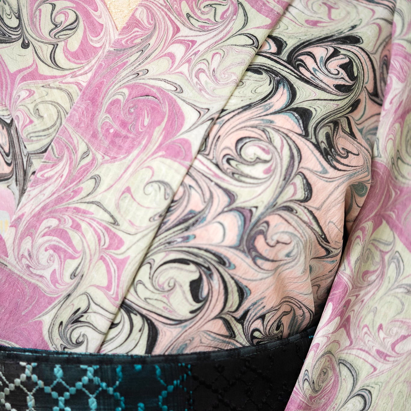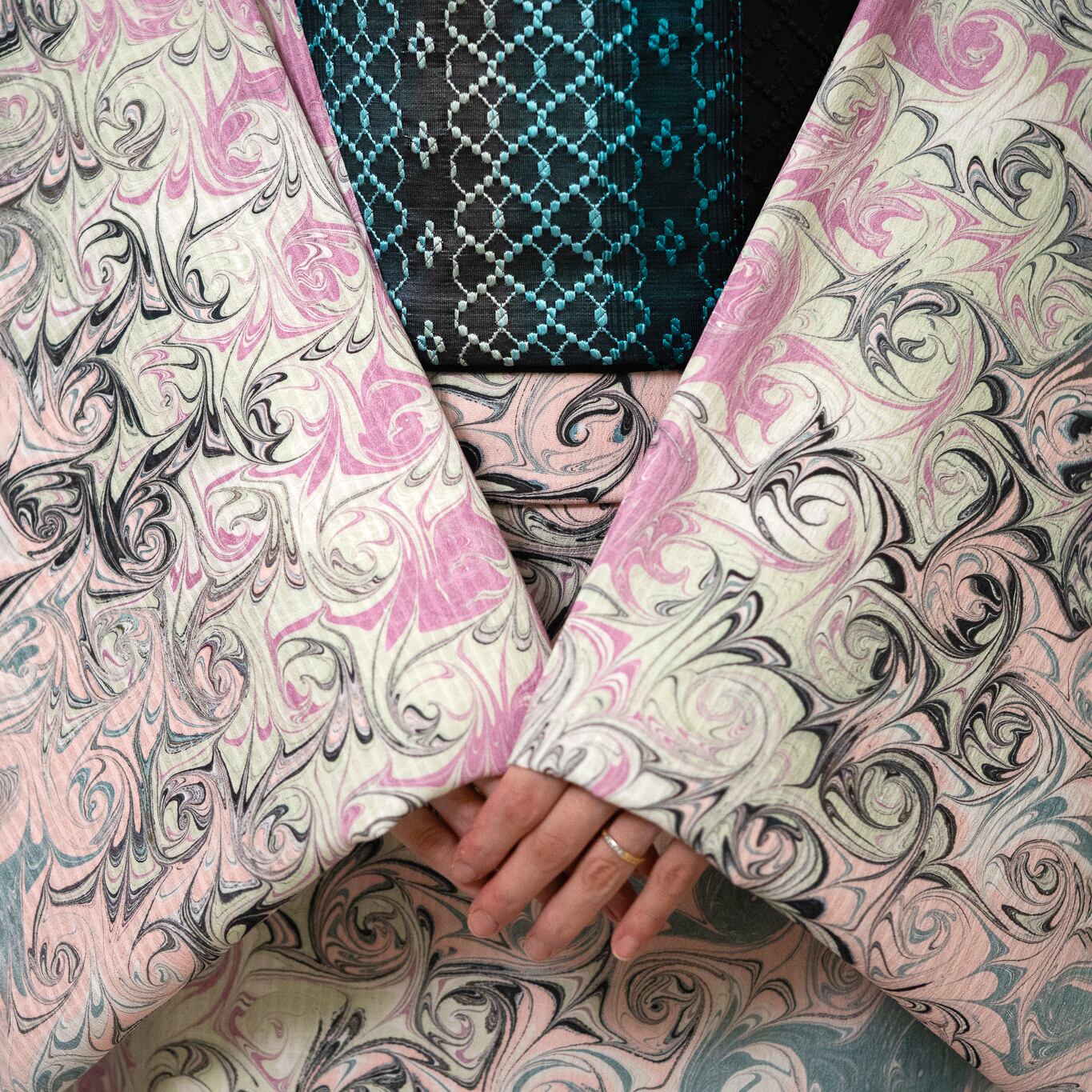 こちらは『墨流し作家:恭平』が染めた洗える着物の反物です。