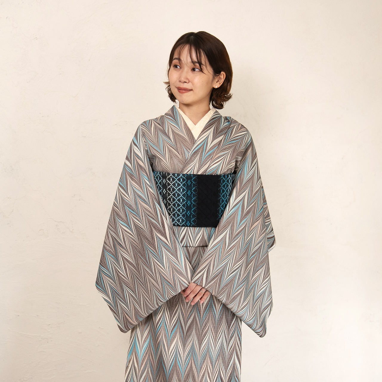 繊細な矢羽柄は、都会的な洗練とリラックス感を兼ね備えたデザインです。