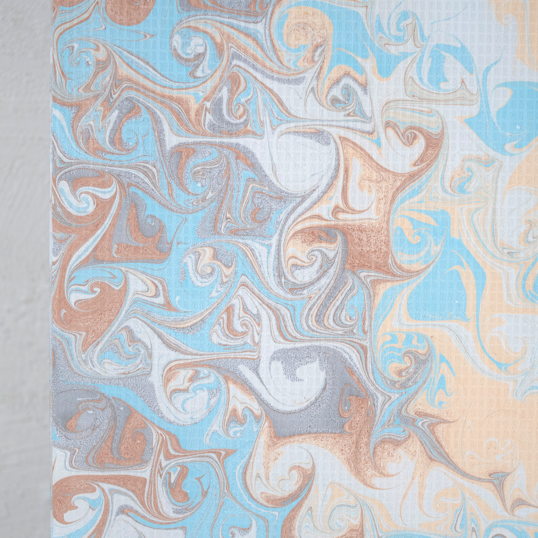 墨流しの技法による色と色の自然な透明感が、奥行きを生み出しており、カジュアルから上品な装いまで、幅広いシーンで活躍します。