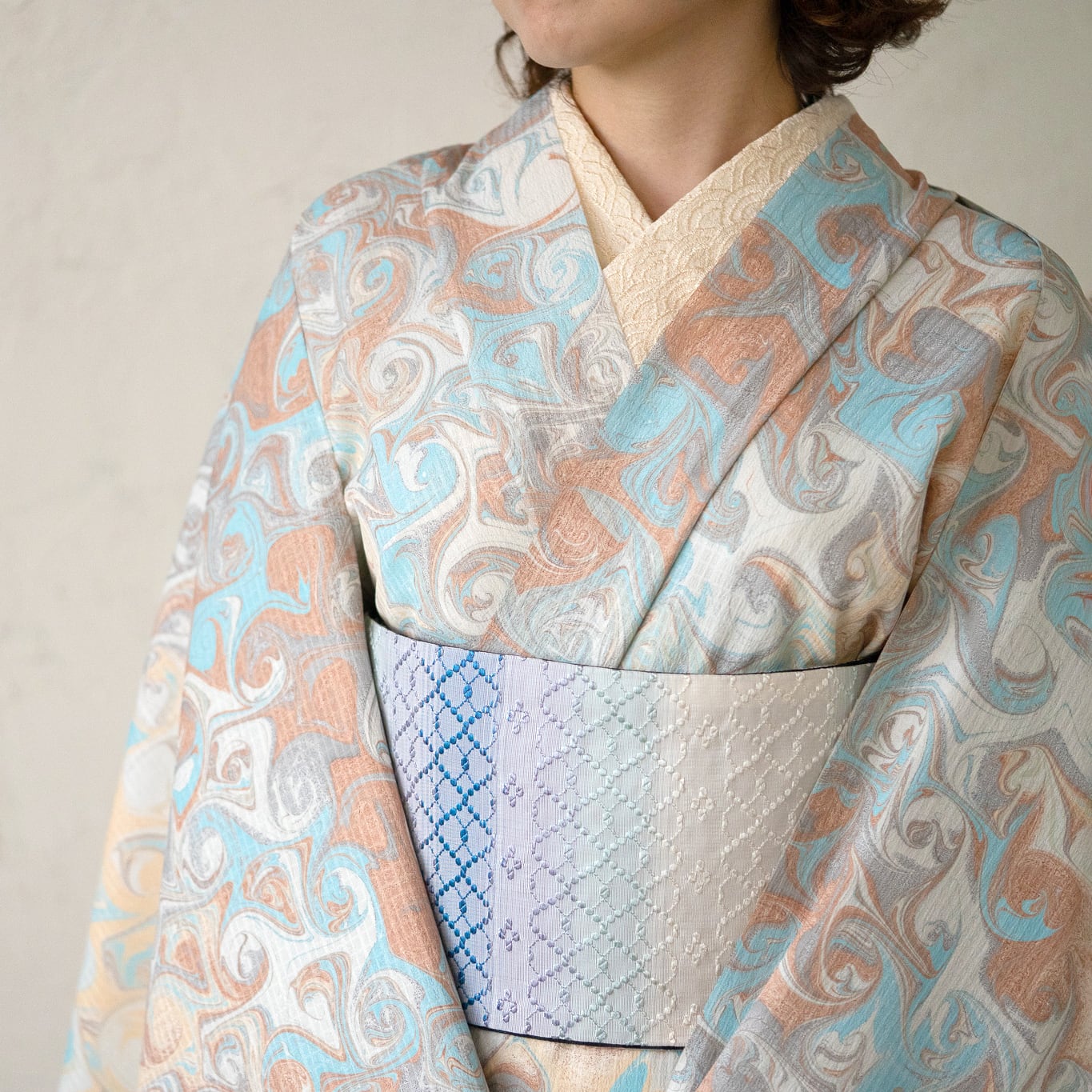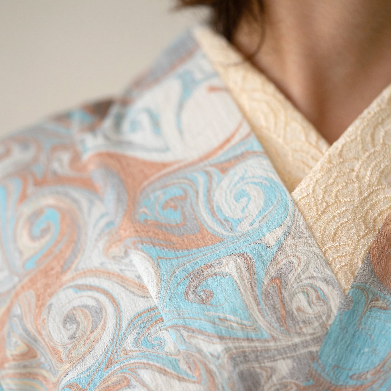 こちらは『墨流し作家:恭平』が染めた洗える着物の反物です。