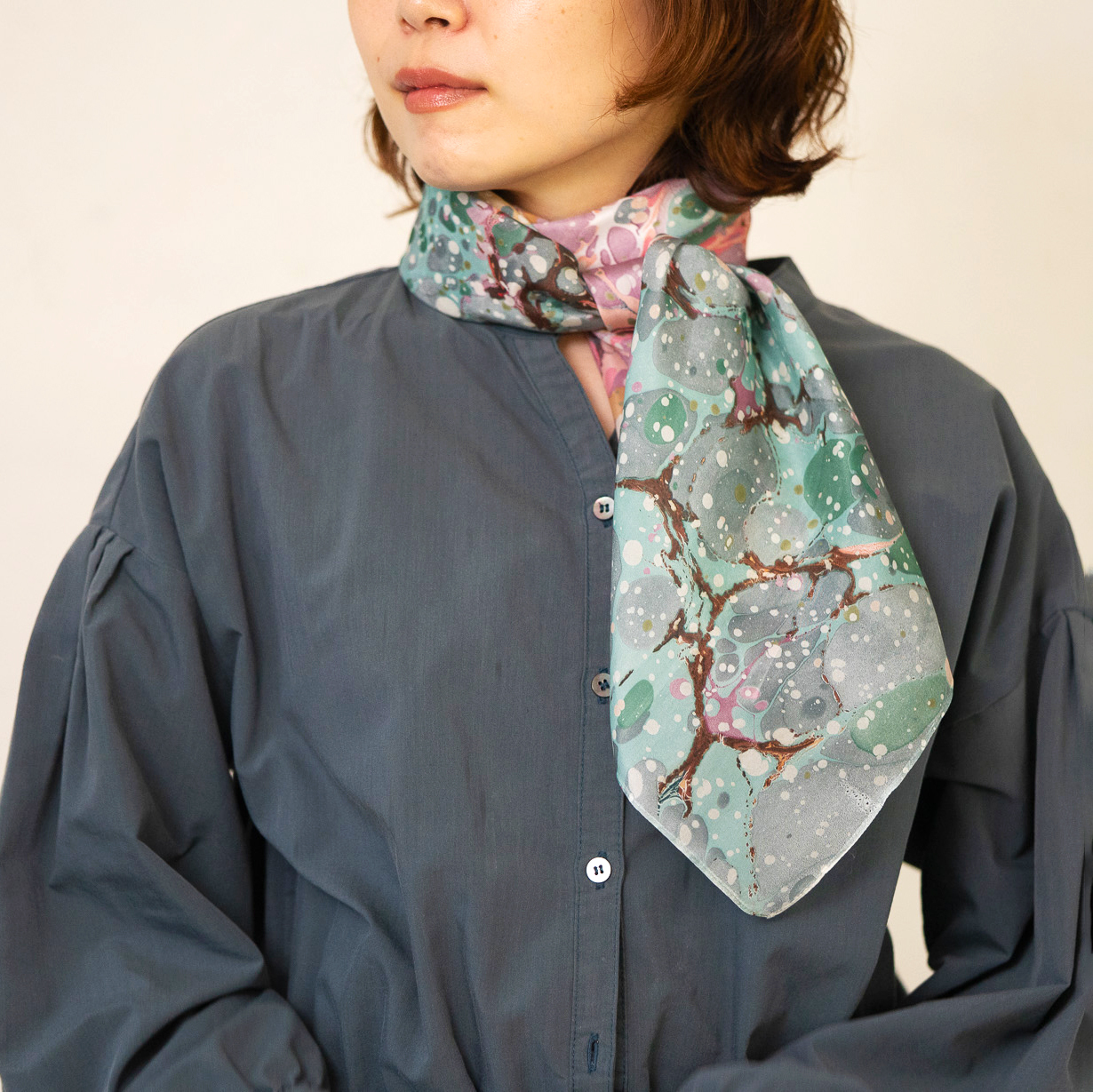 クラシカルなムードが漂う、唯一無二の墨流し柄スカーフです。