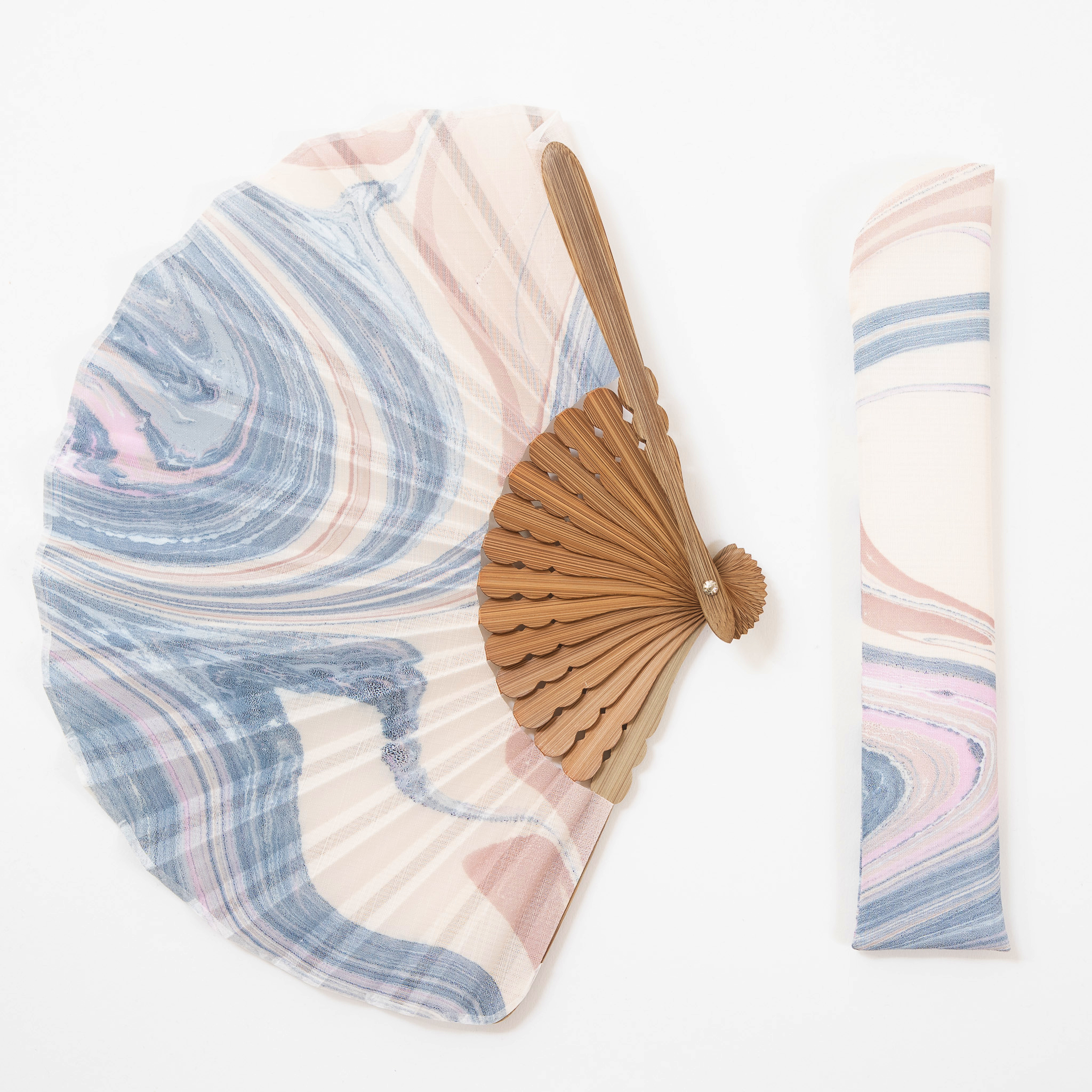 墨流し作家・恭平による手染めの生地を使用した特別な扇子です。