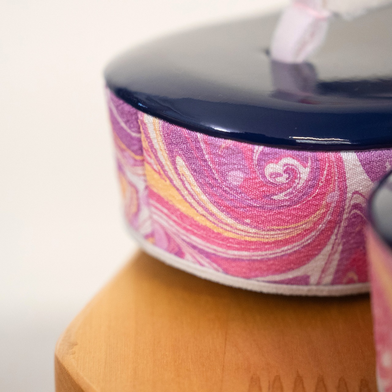 墨流しの生地が全体に立体感と陰影を与え、高級感のある仕上がりとなっています。