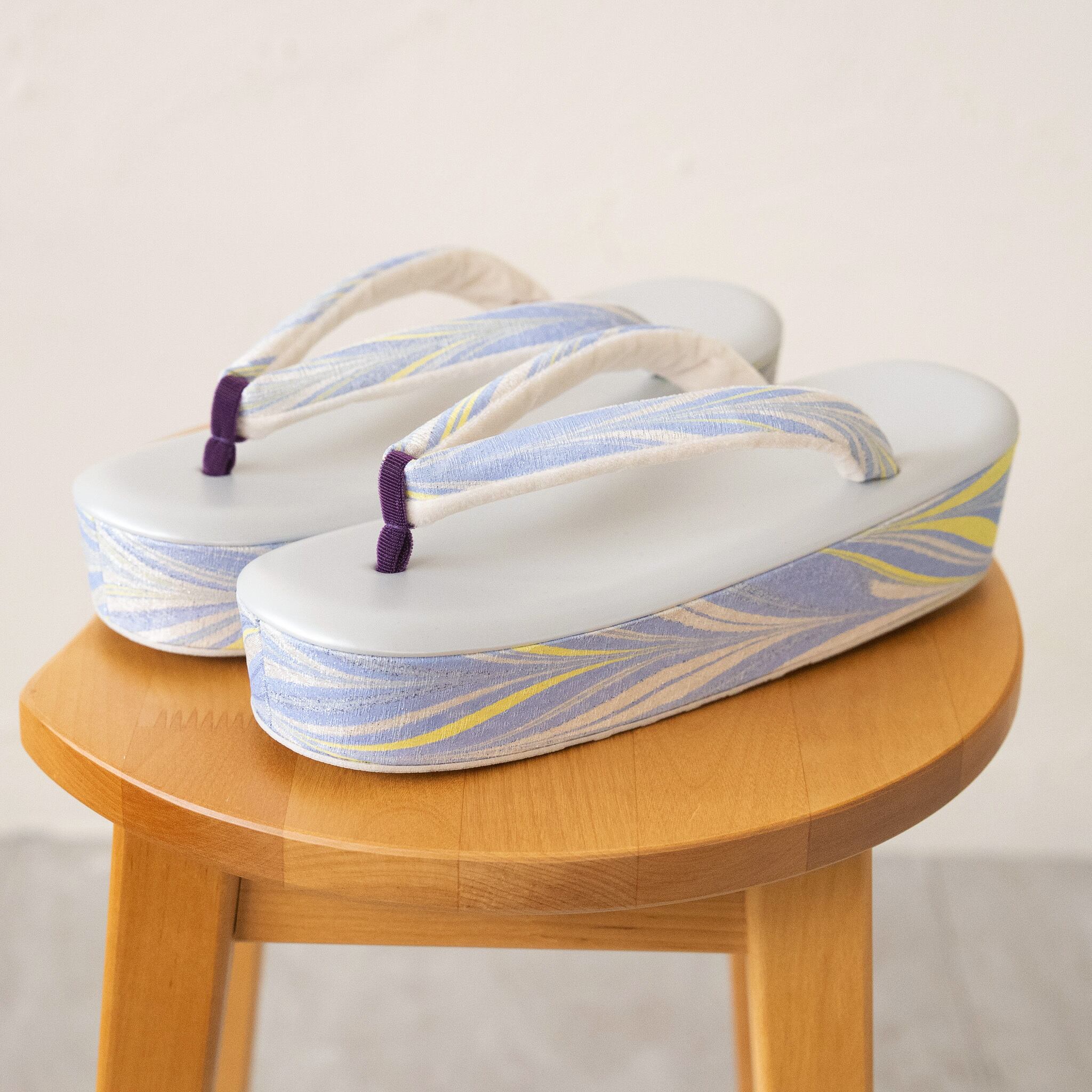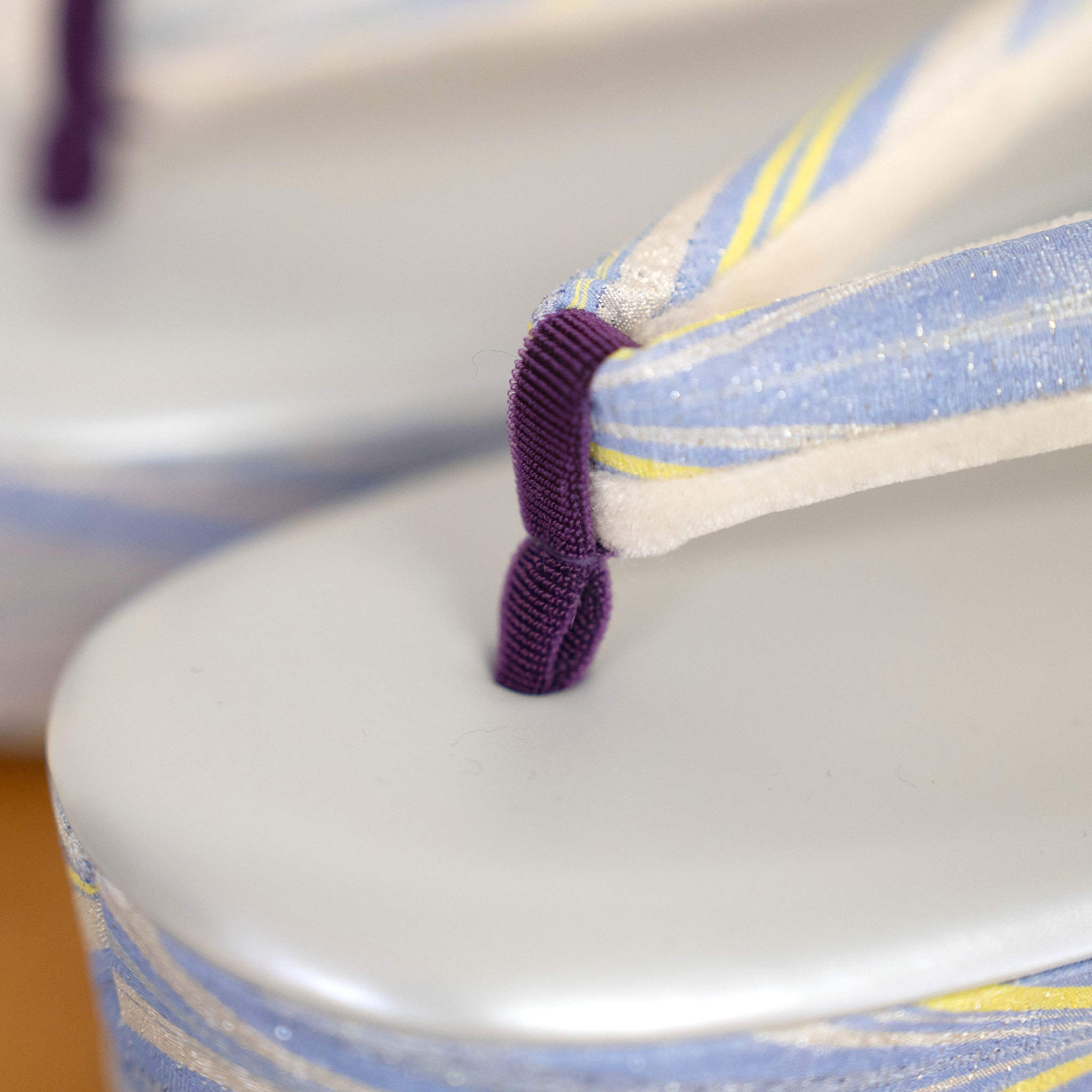 台は浅草の職人、鼻緒は大阪の職人が、それぞれ一点ずつ手仕事で制作。