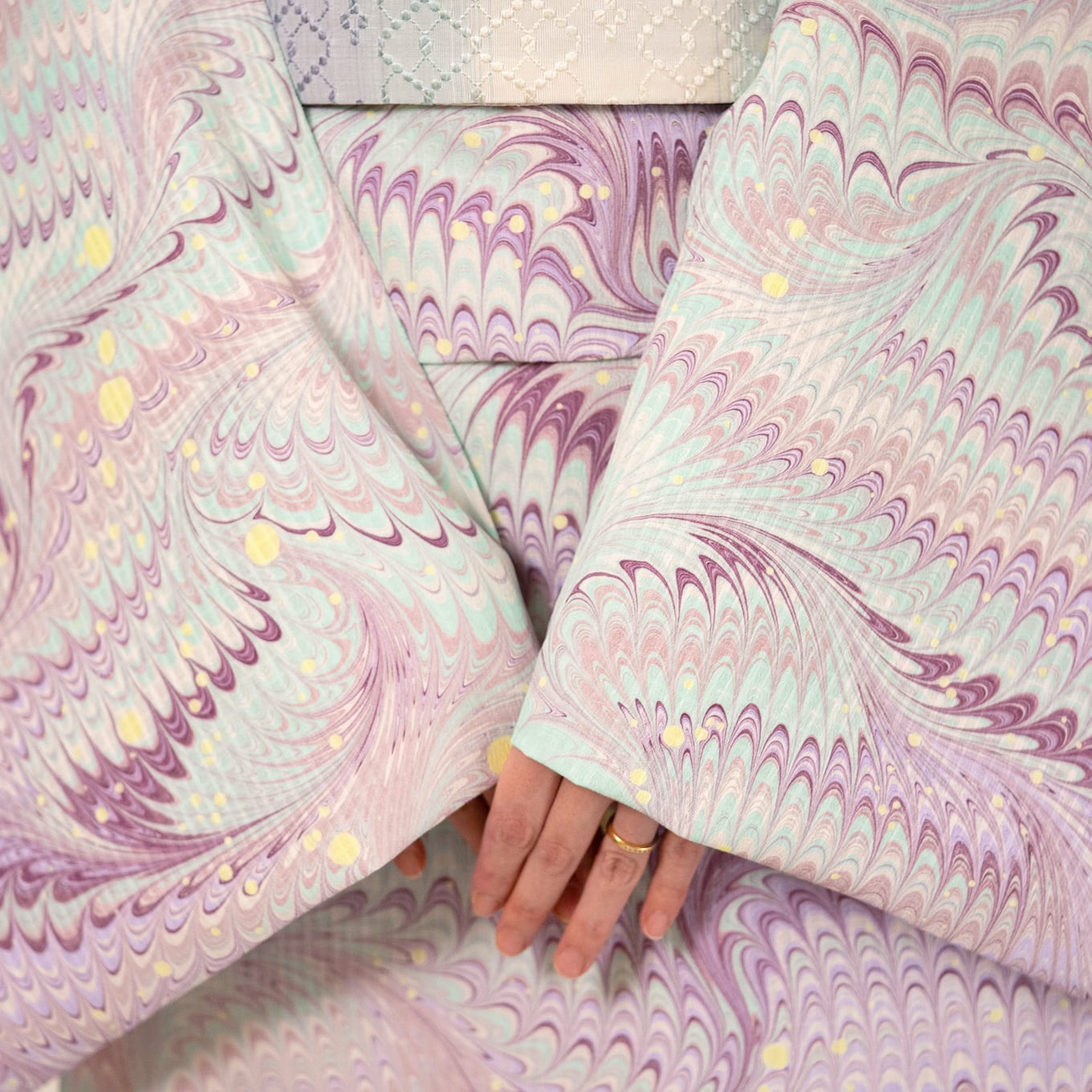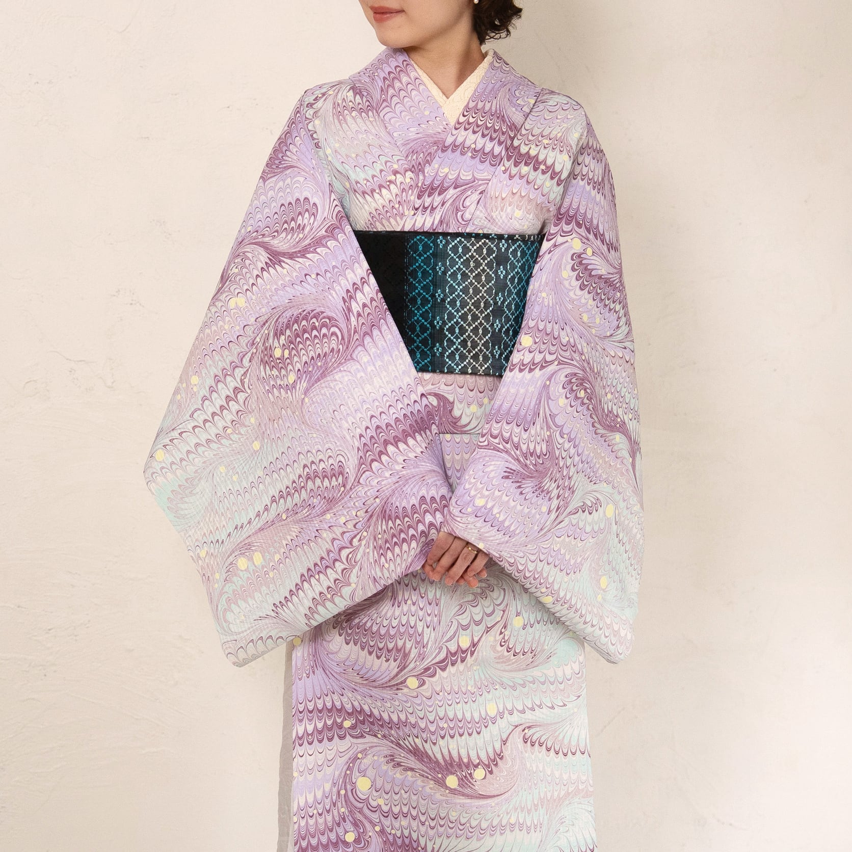 こちらは『墨流し作家:恭平』が染めた洗える着物の反物です。