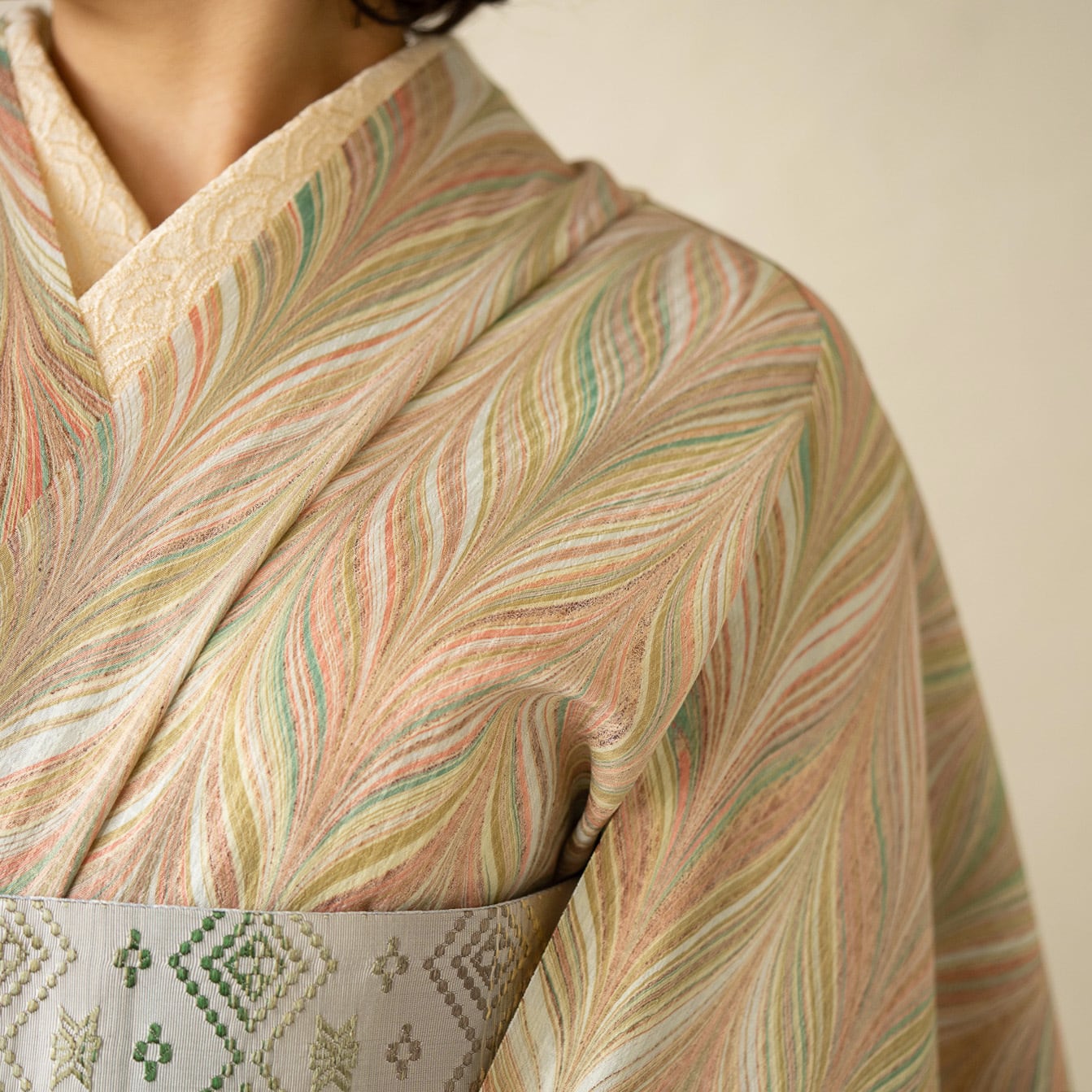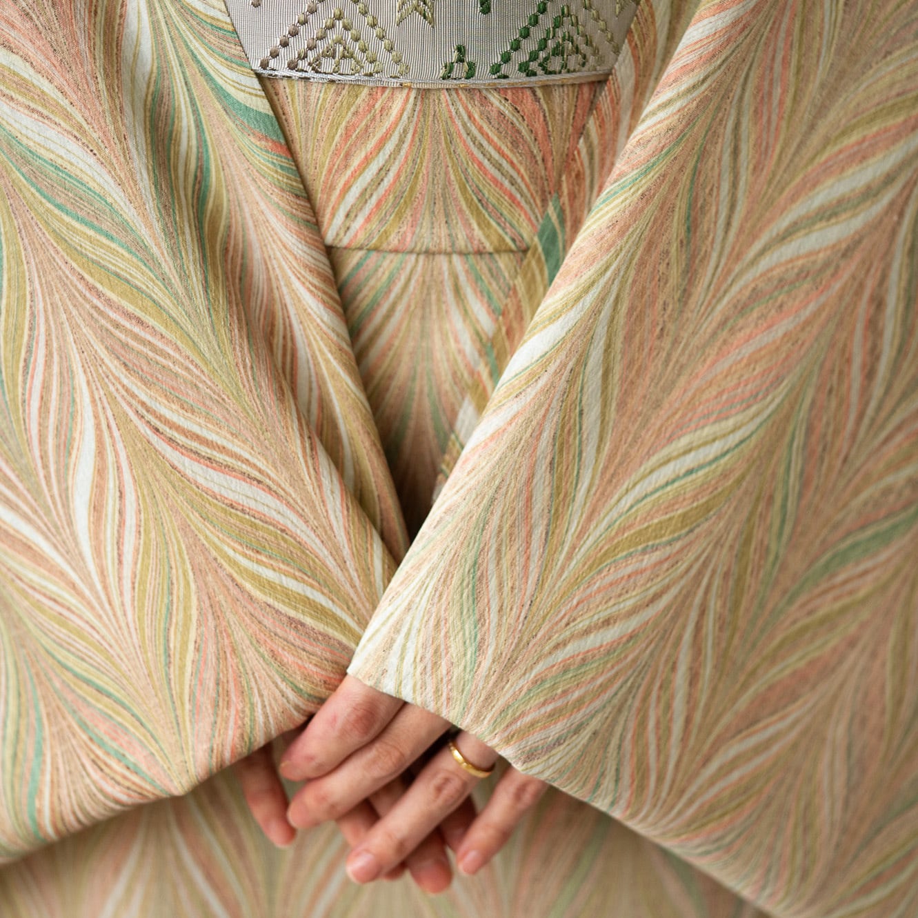 こちらは『墨流し作家:恭平』が染めた洗える着物の反物です。