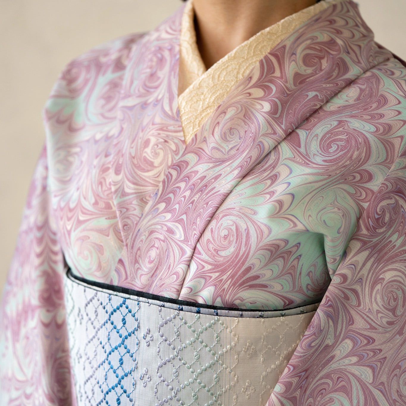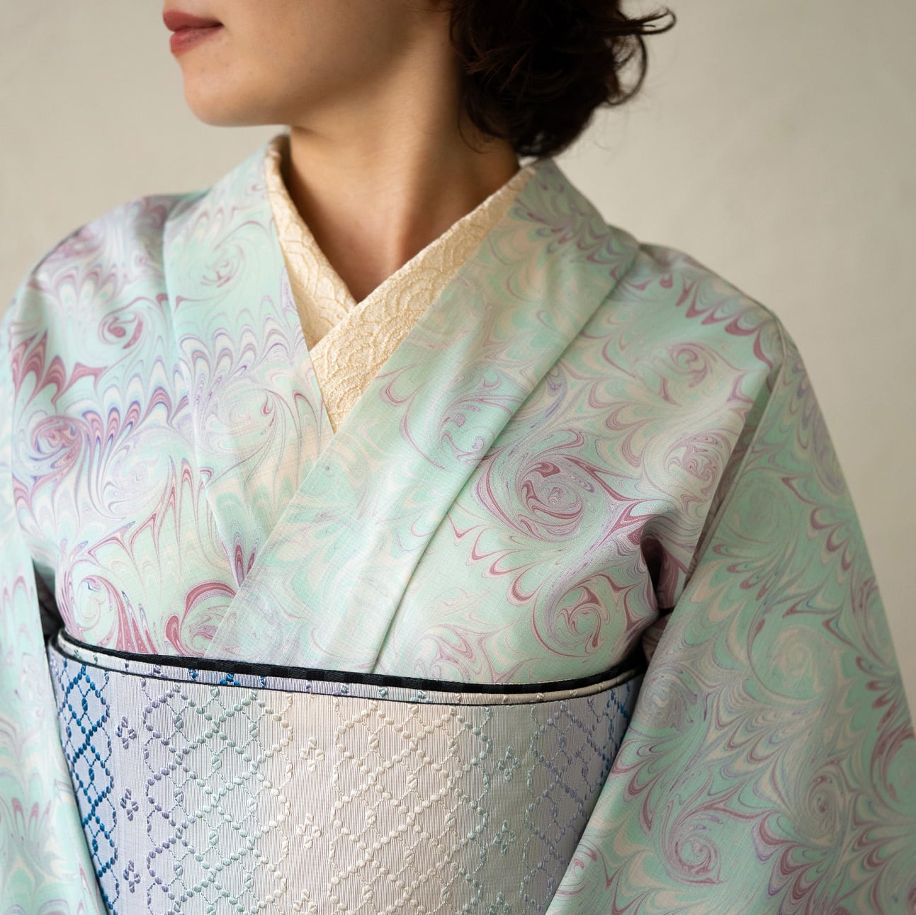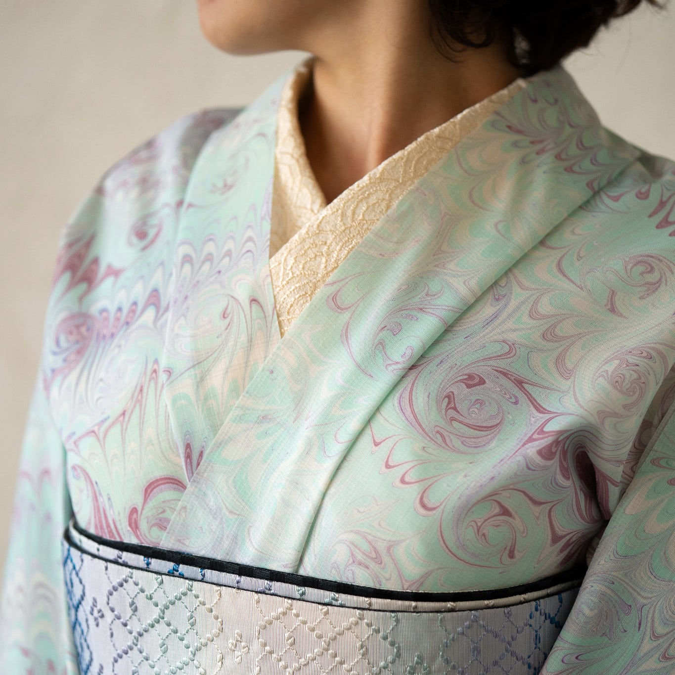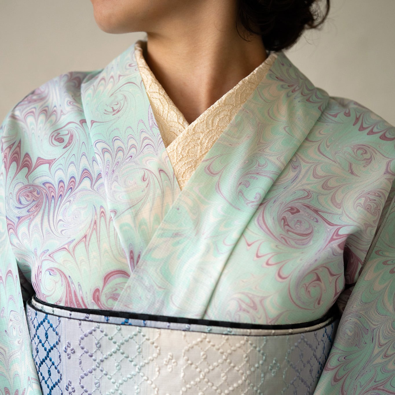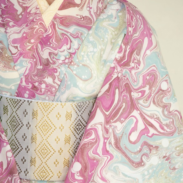 ・【恭平墨流し】は繊細で美しい柄の品質を保つため、一反を3回に分け時間をかけて染めます。反物でご納品する場合3分割にカットされて納品致します。(仕立て上問題はございません)ご理解ご協力のほどお願い致します。(今回の反物は作品によっては、カットされていないものを含みます)