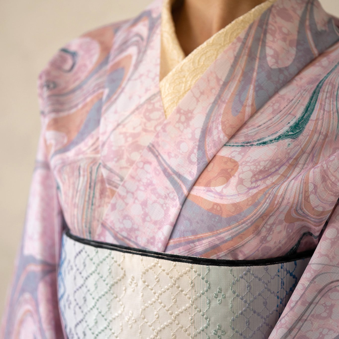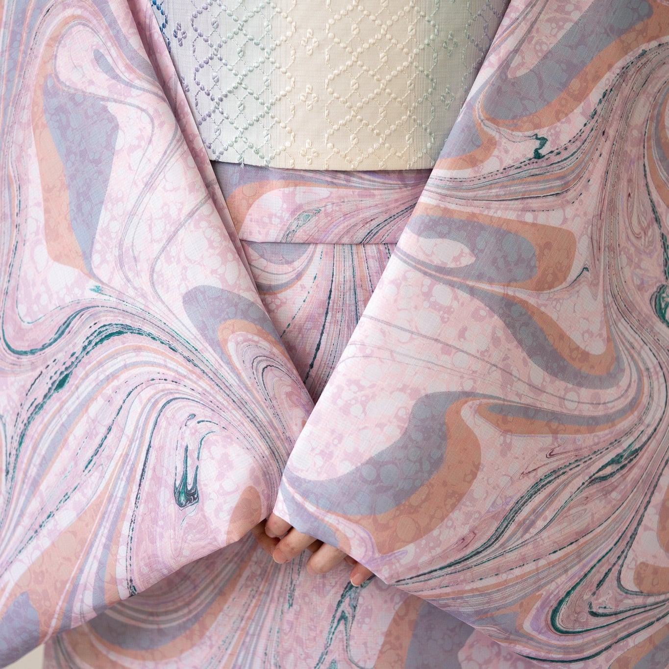 ・【恭平墨流し】は繊細で美しい柄の品質を保つため、一反を3回に分け時間をかけて染めます。反物でご納品する場合3分割にカットされて納品致します。(仕立て上問題はございません)ご理解ご協力のほどお願い致します。(今回の反物は作品によっては、カットされていないものを含みます)