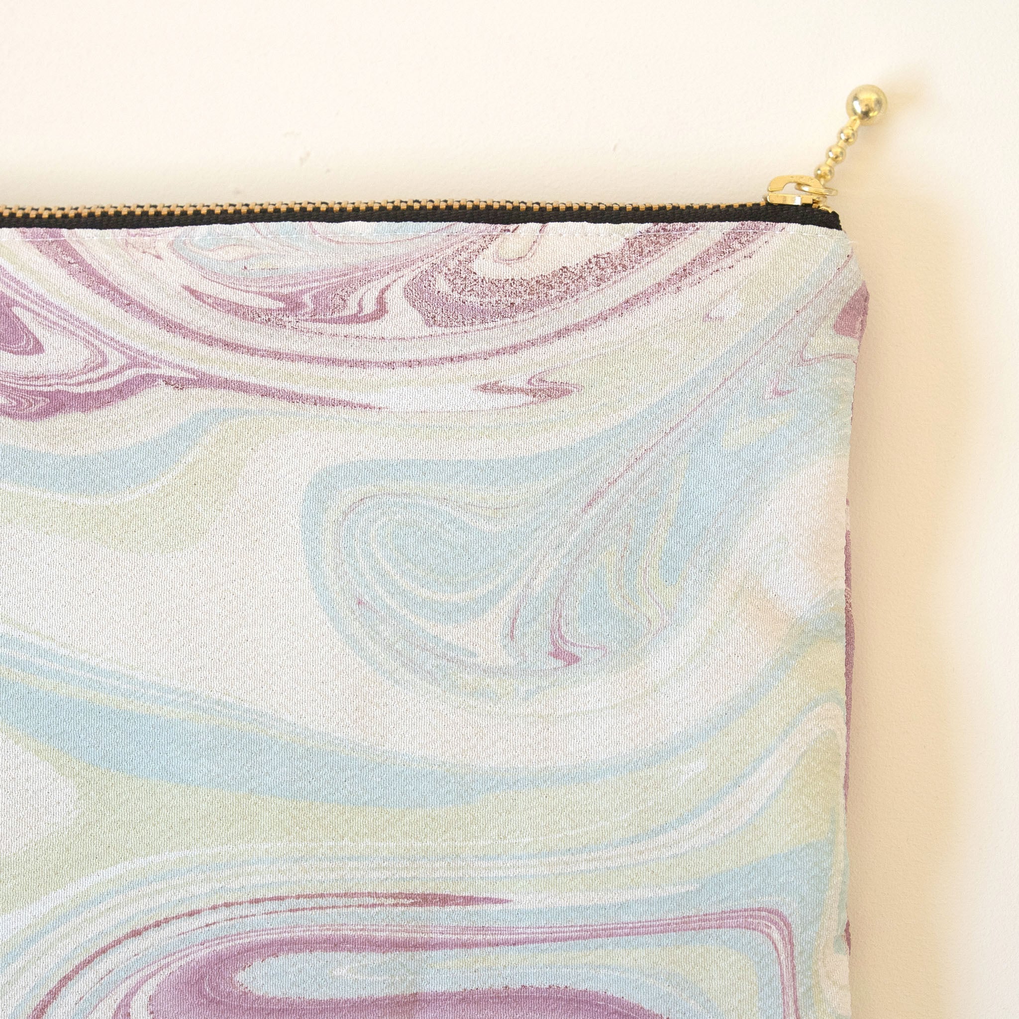水面のゆらぎをそのまま閉じ込めるように仕立てた特別なポーチです。