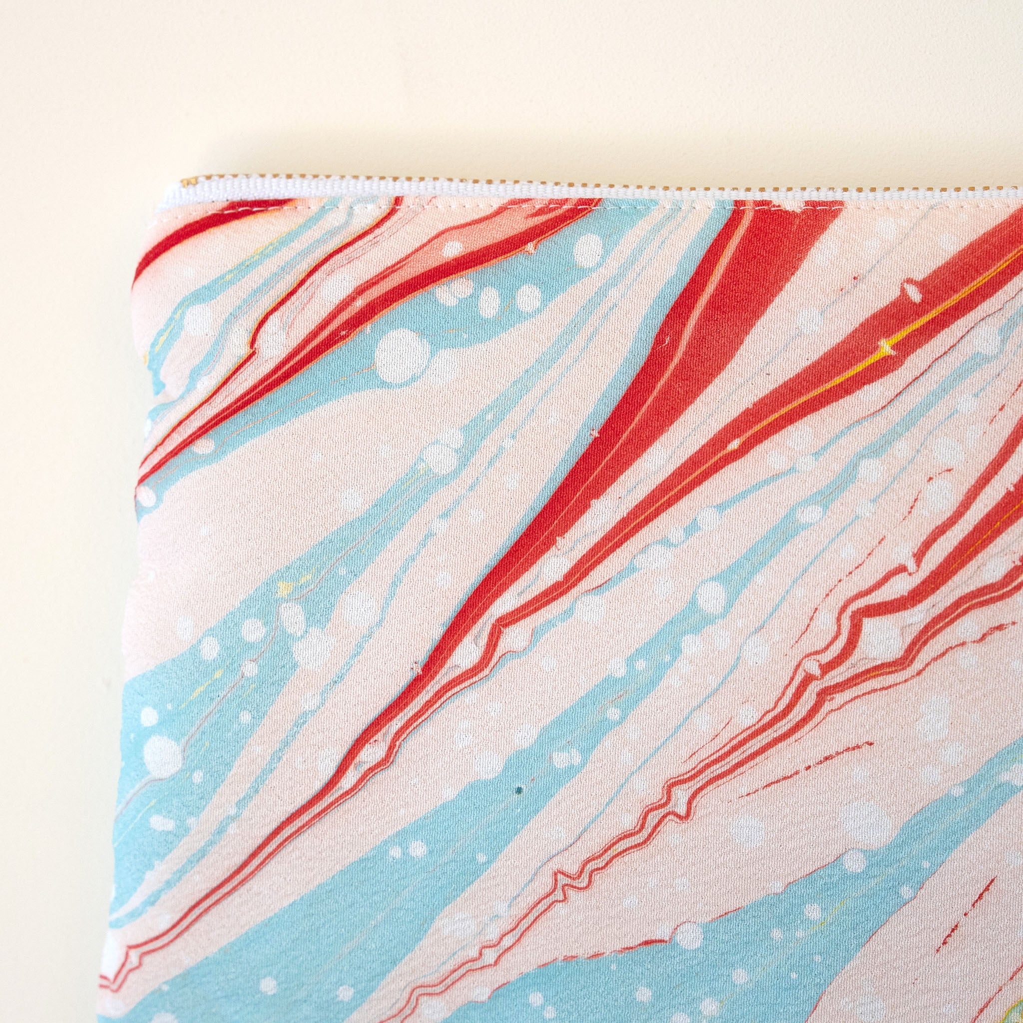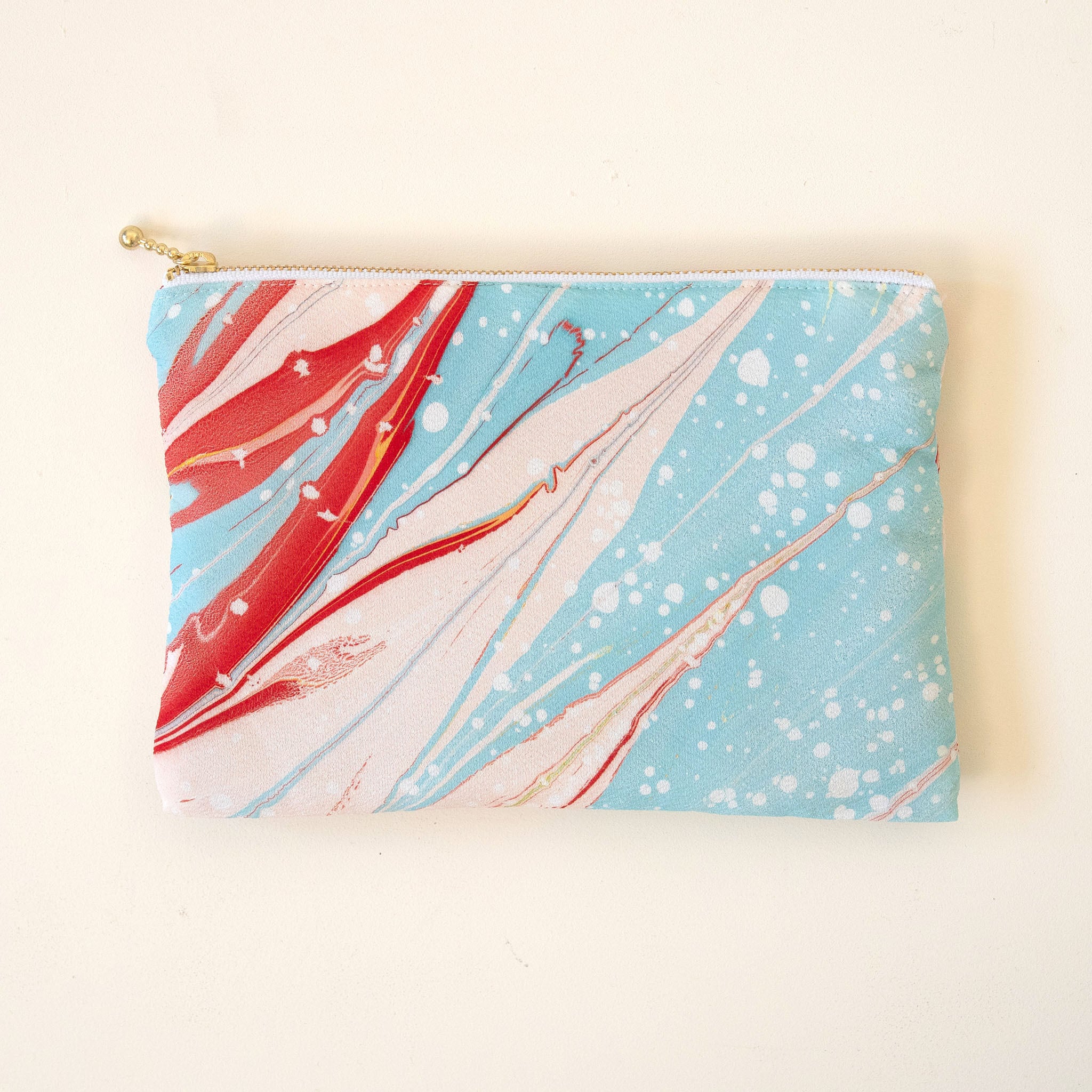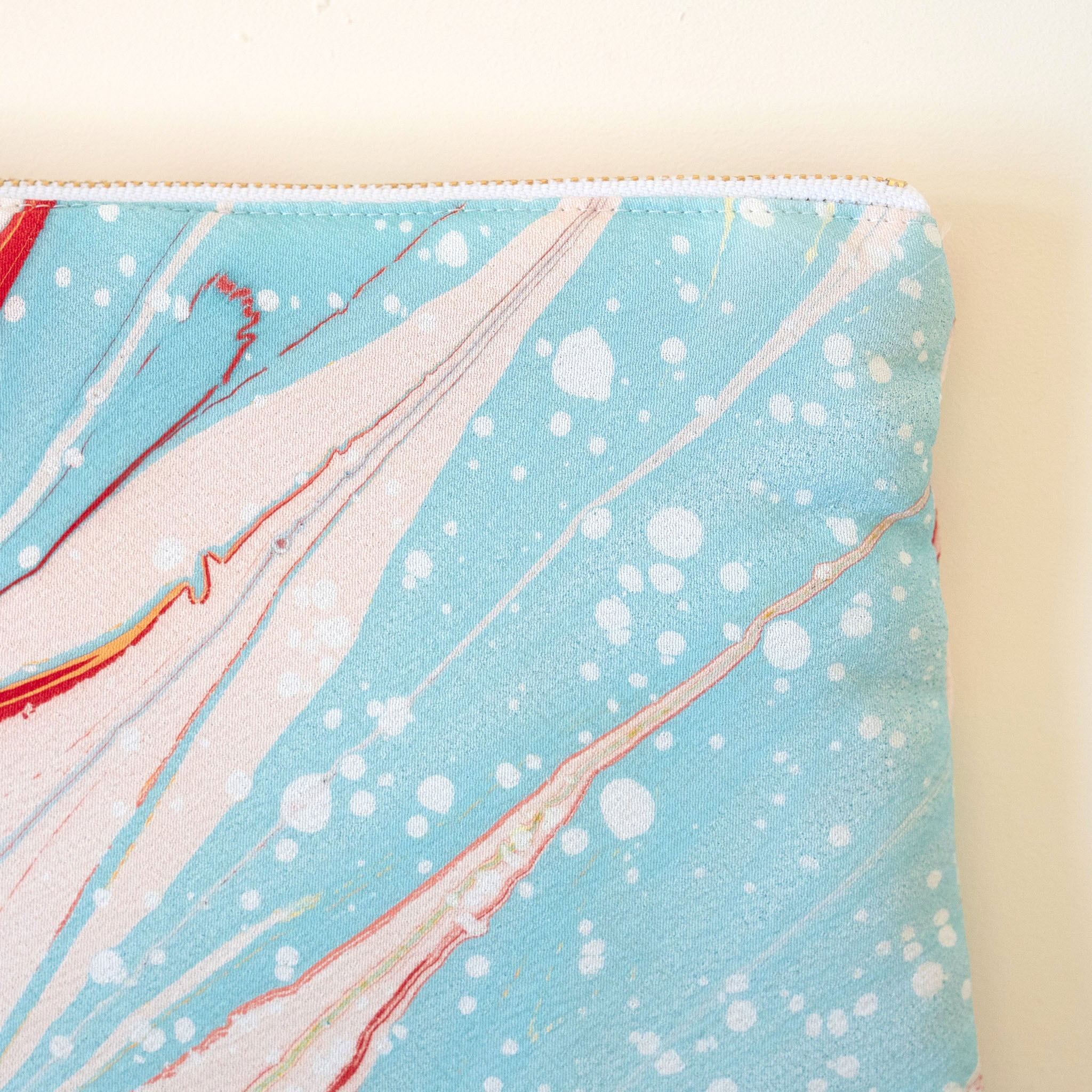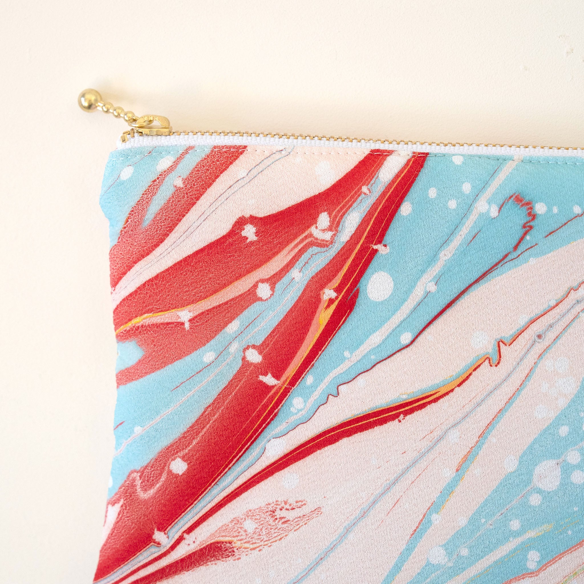 水面のゆらぎをそのまま閉じ込めるように仕立てた特別なポーチです。