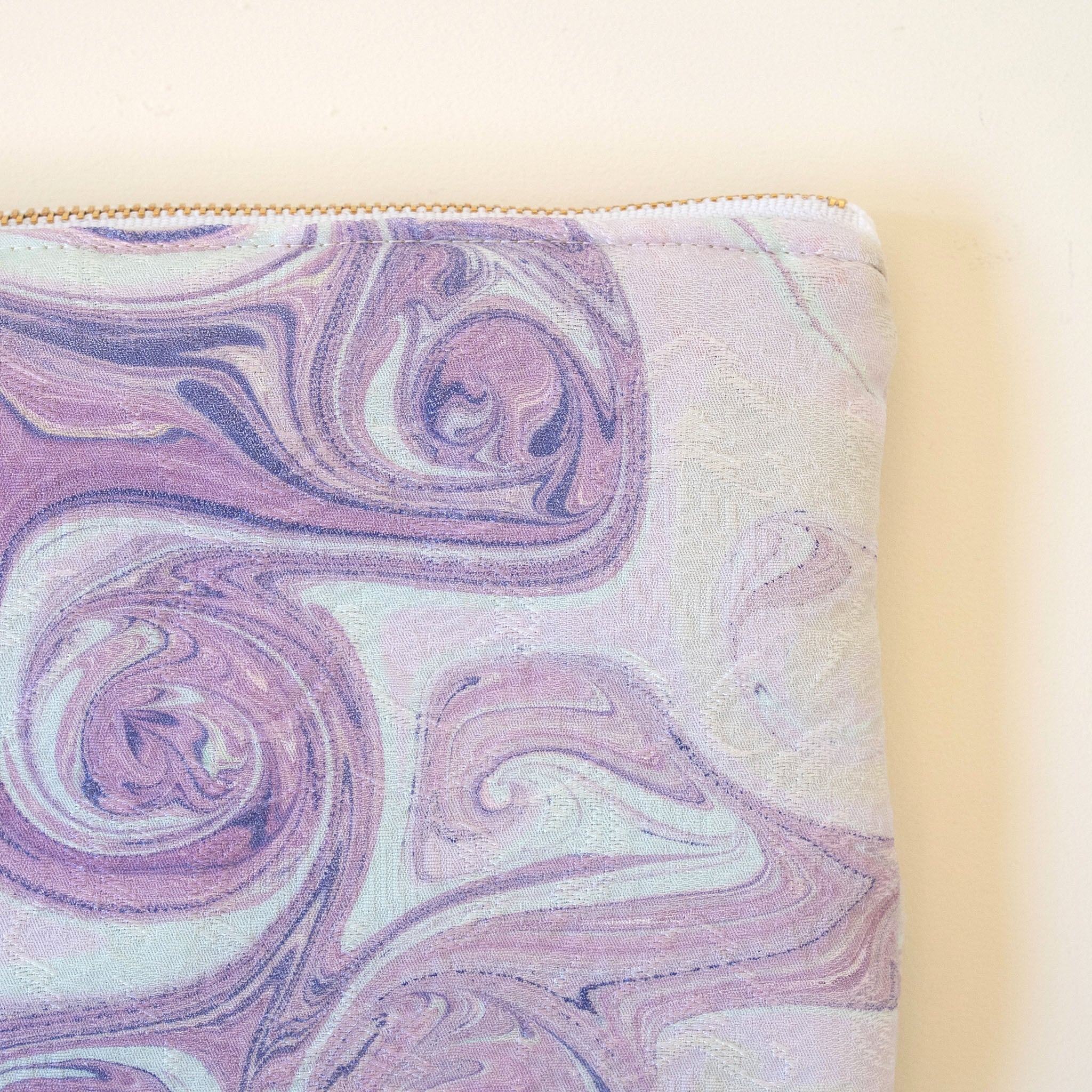 水面のゆらぎをそのまま閉じ込めるように仕立てた特別なポーチです。