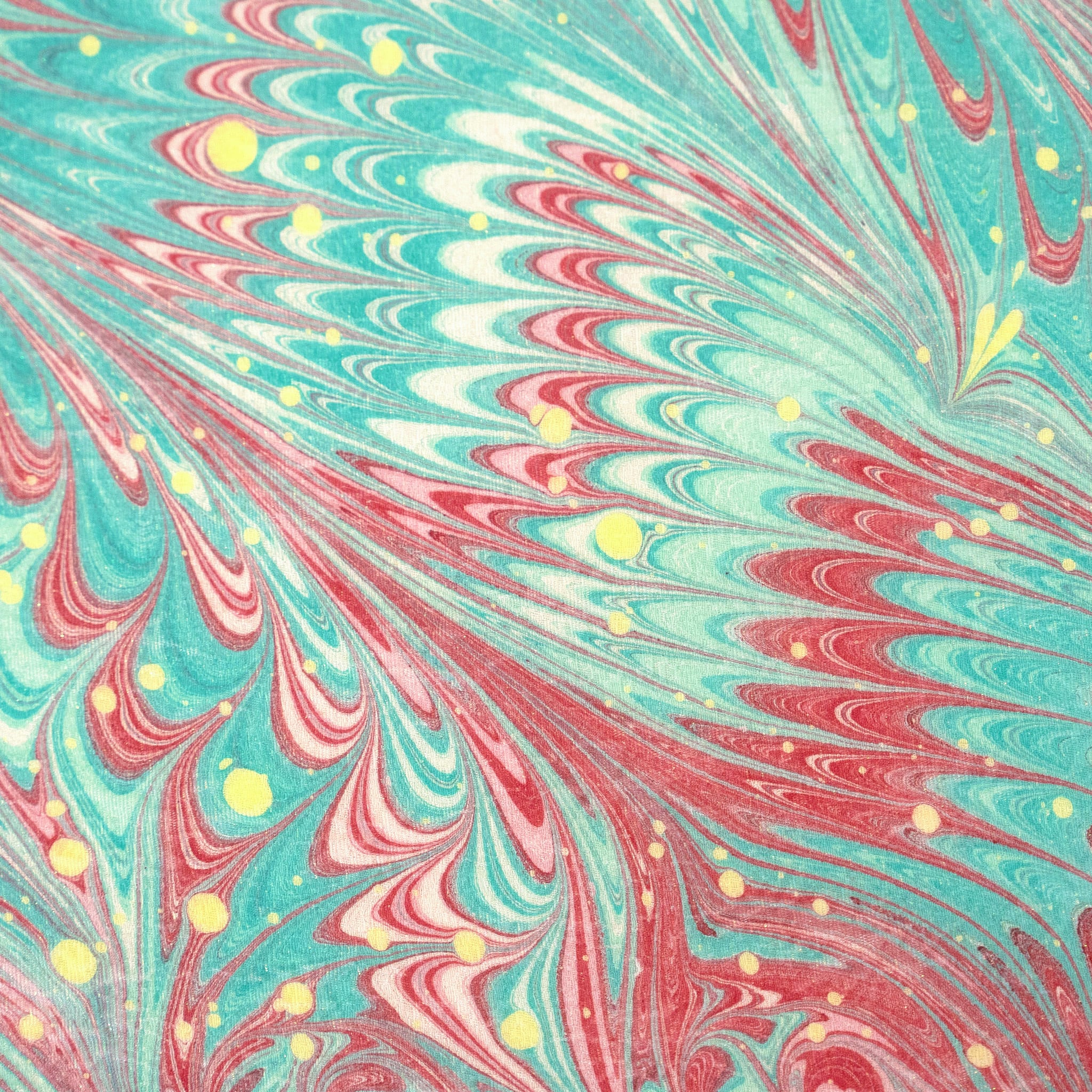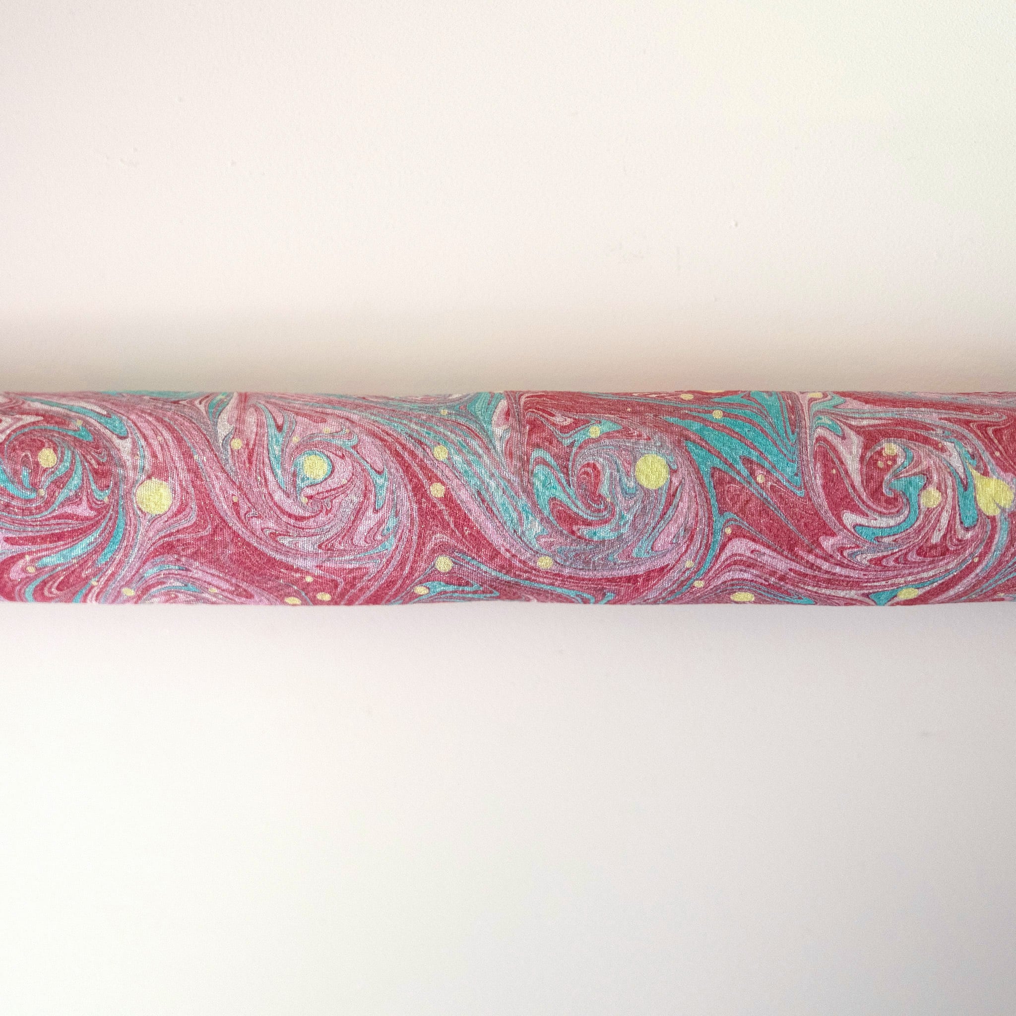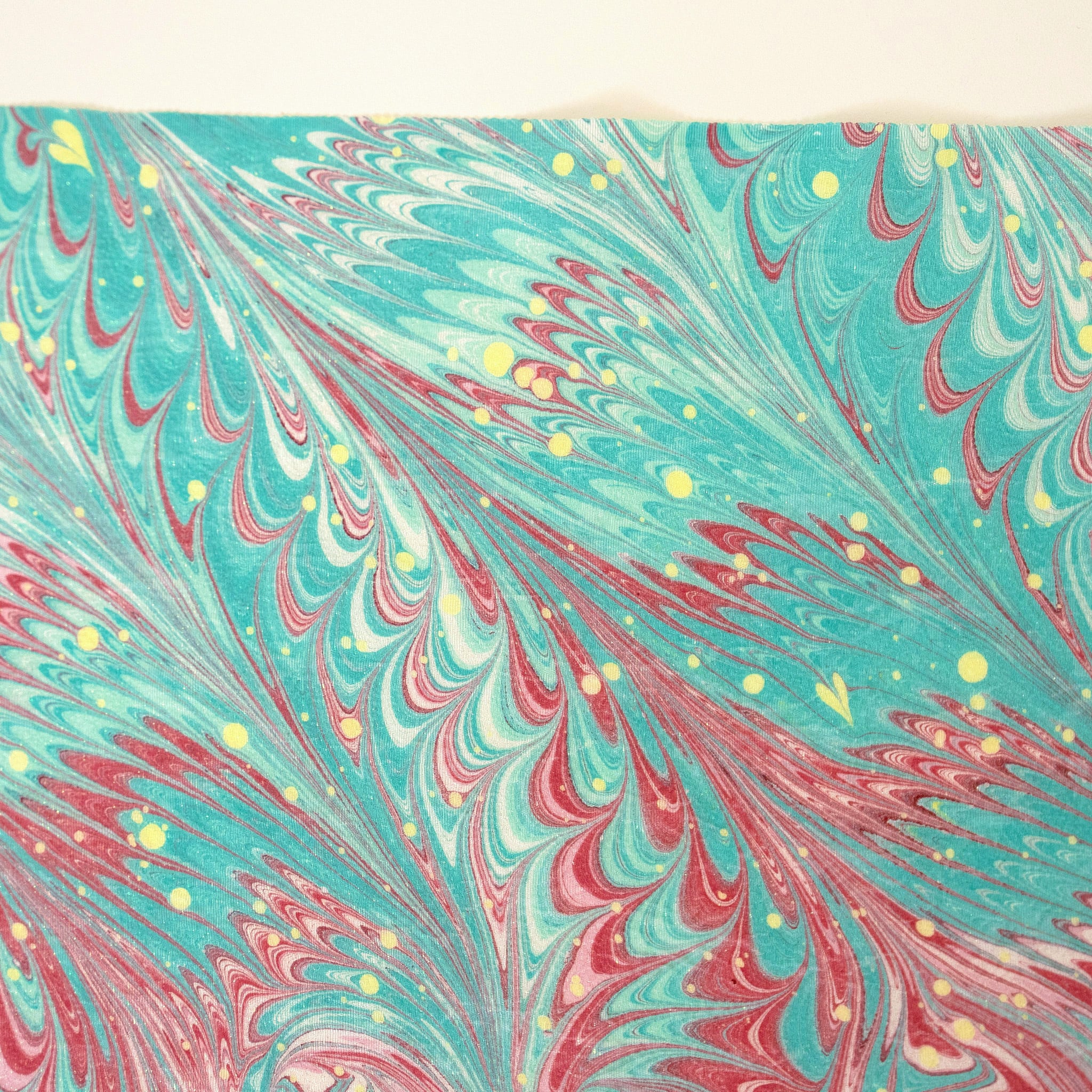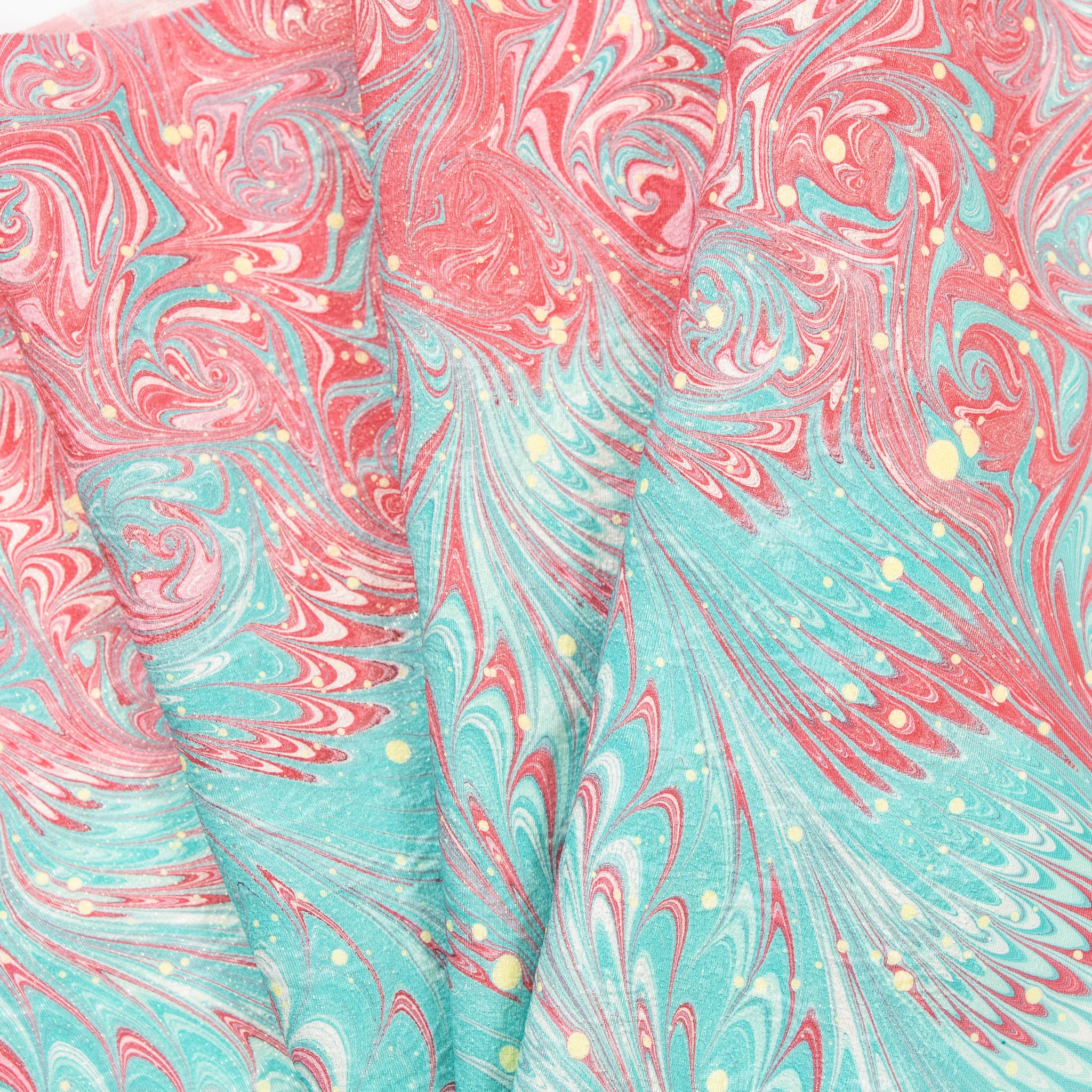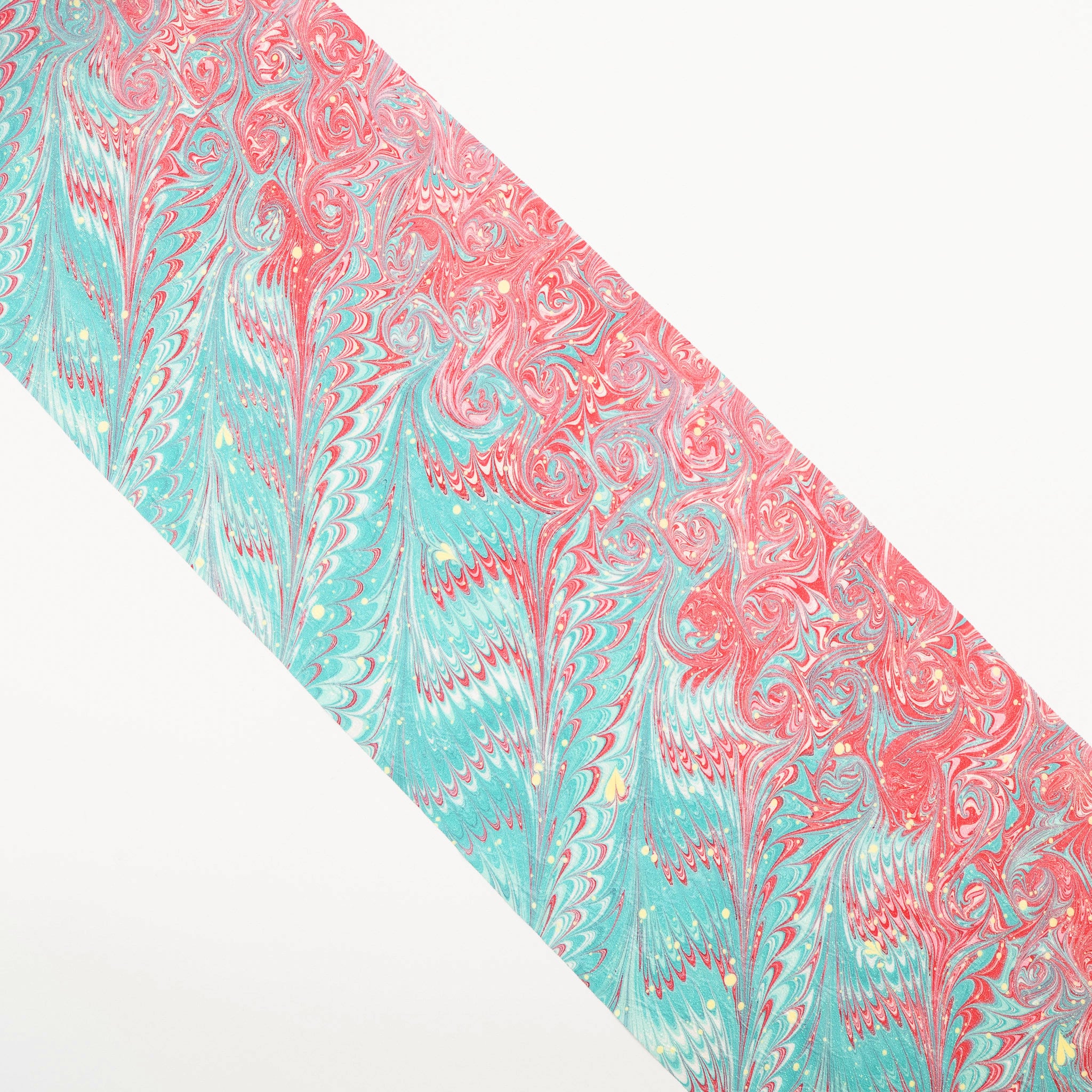 ・本作品は、手染めのため同じデザインでも、ドットの出方やハートの位置や個数などが一点ごとにわずかに異なります。水面の揺らぎをそのまま写し取る墨流しならではの自然な個体差であり、