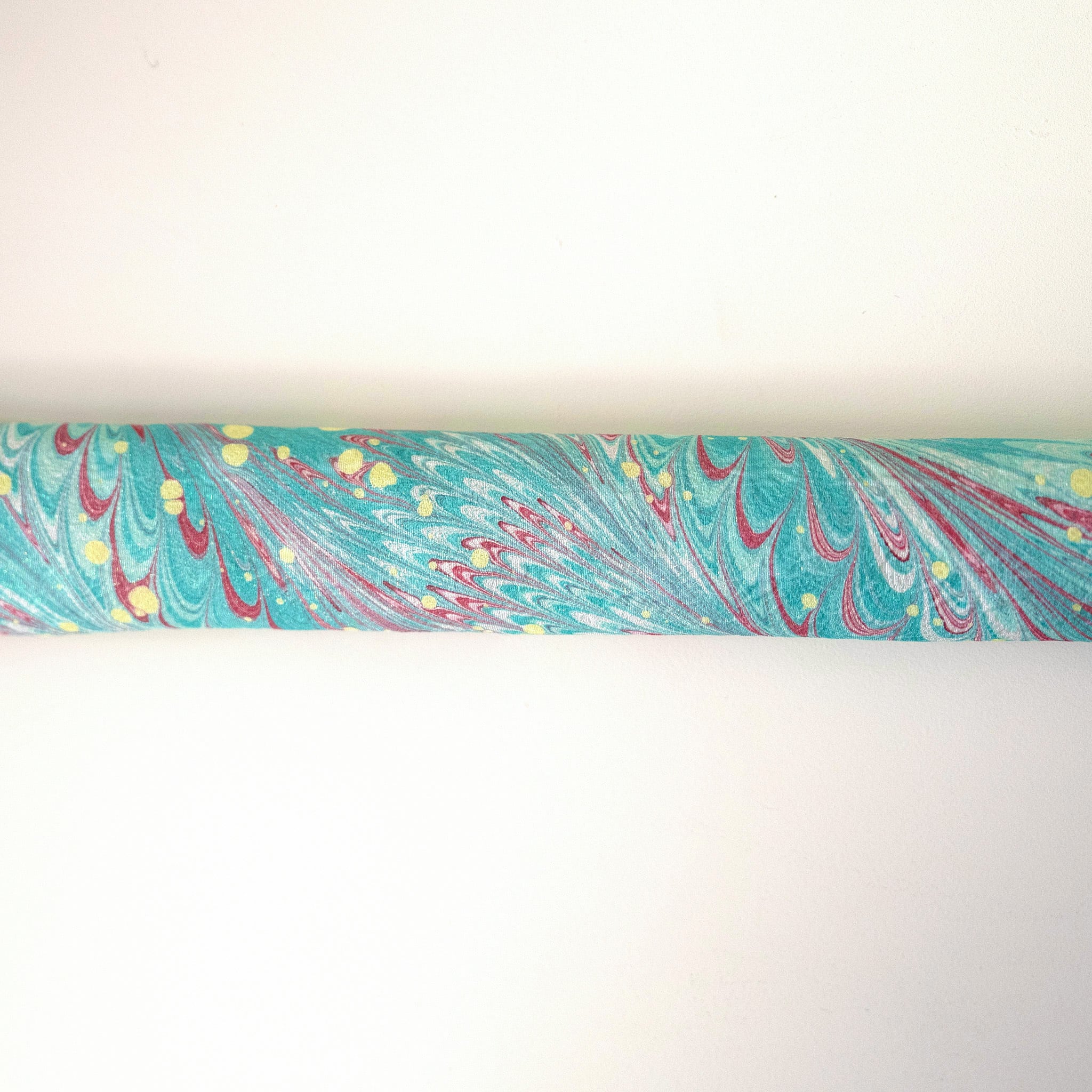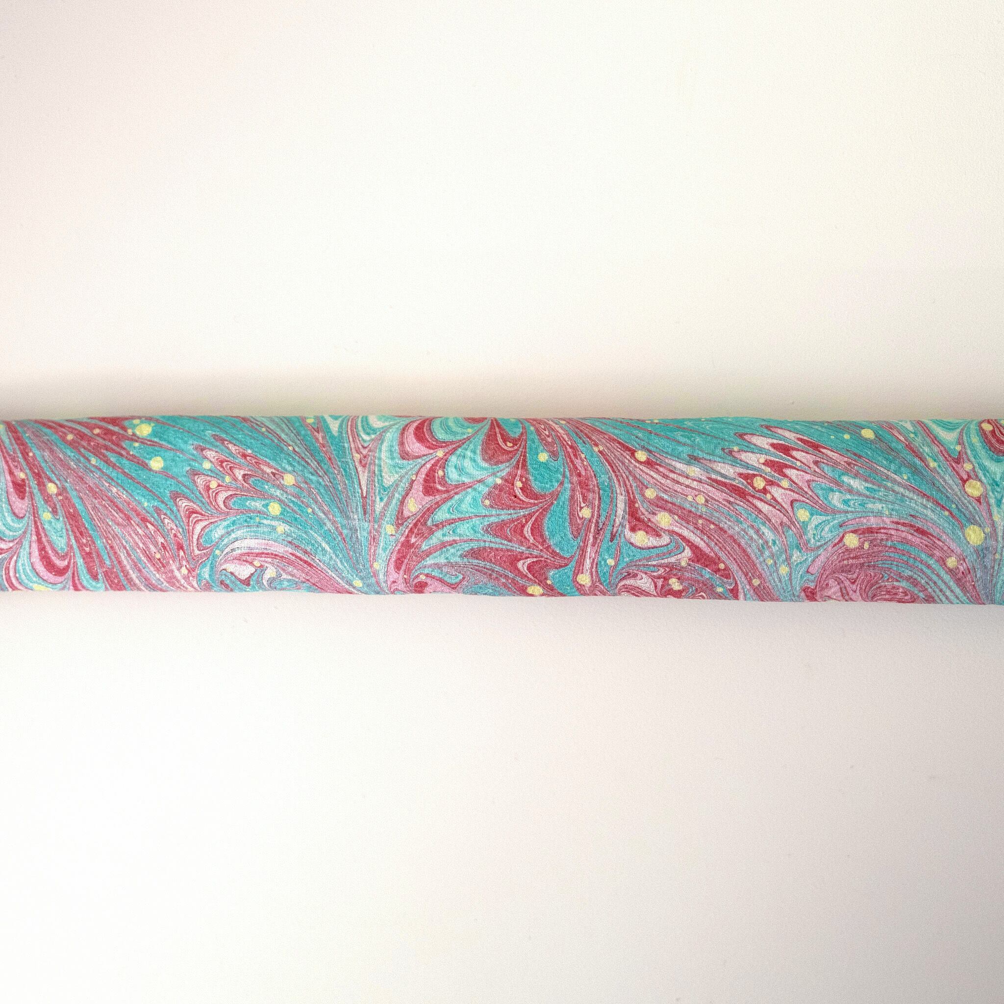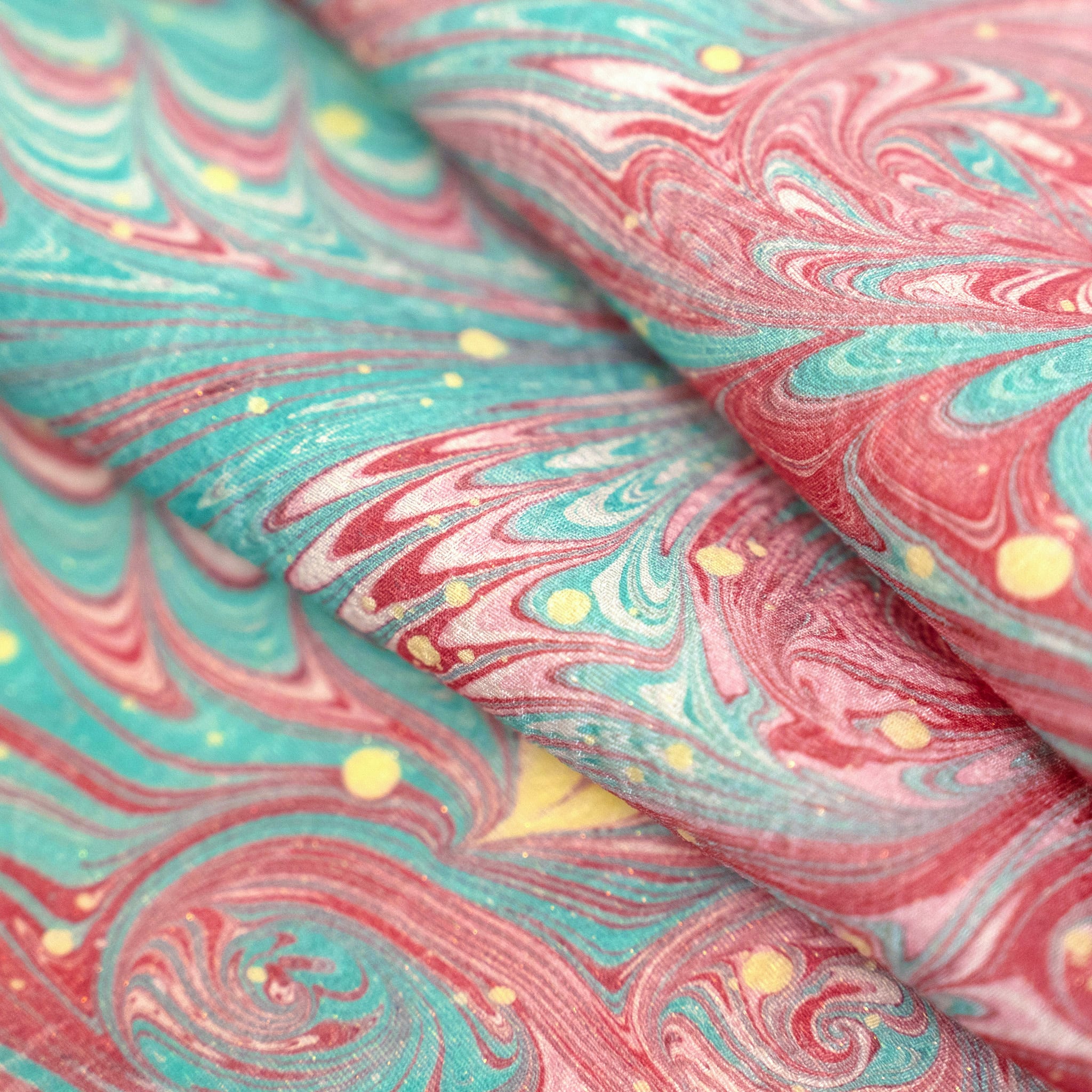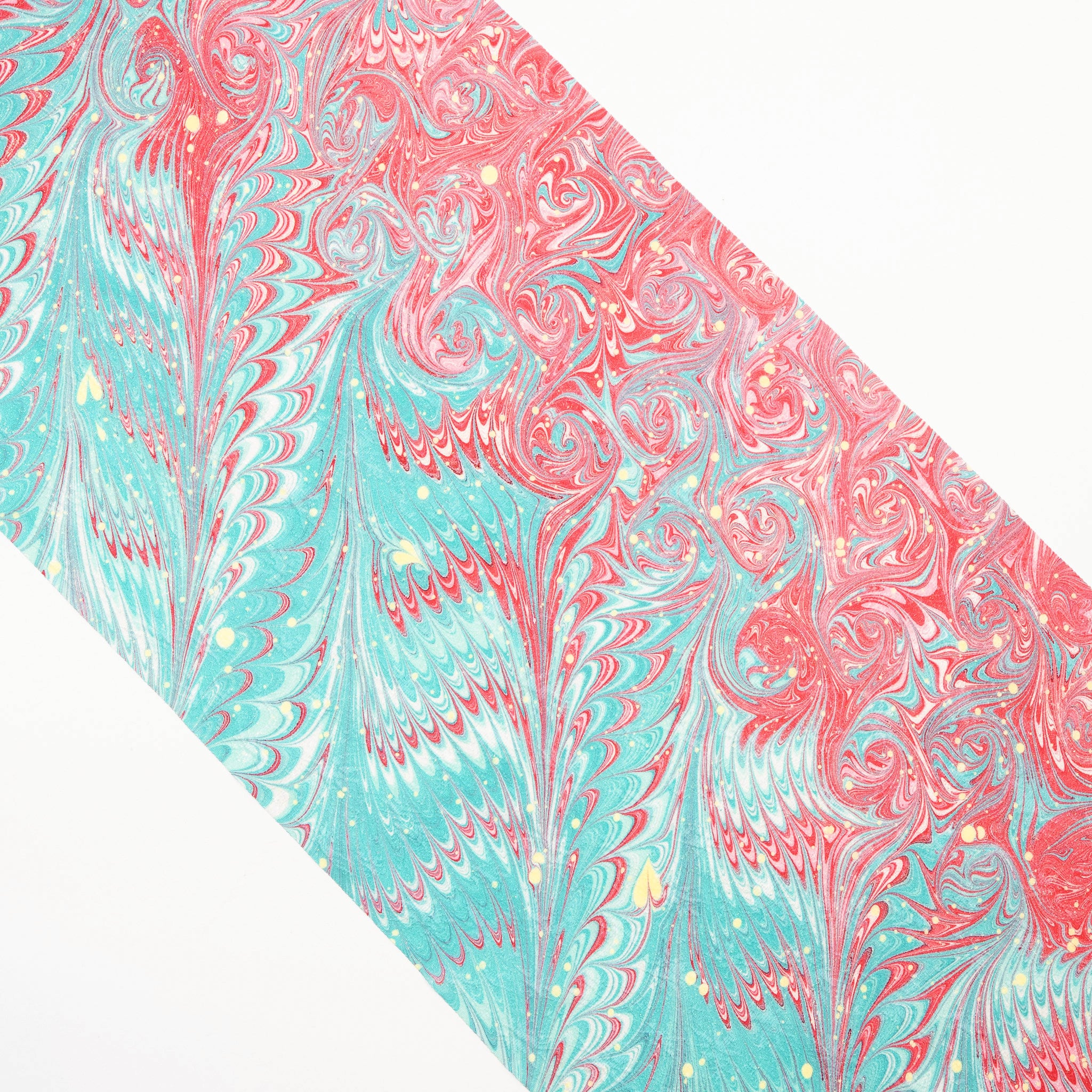 ・本作品は、手染めのため同じデザインでも、ドットの出方やハートの位置や個数などが一点ごとにわずかに異なります。水面の揺らぎをそのまま写し取る墨流しならではの自然な個体差であり、