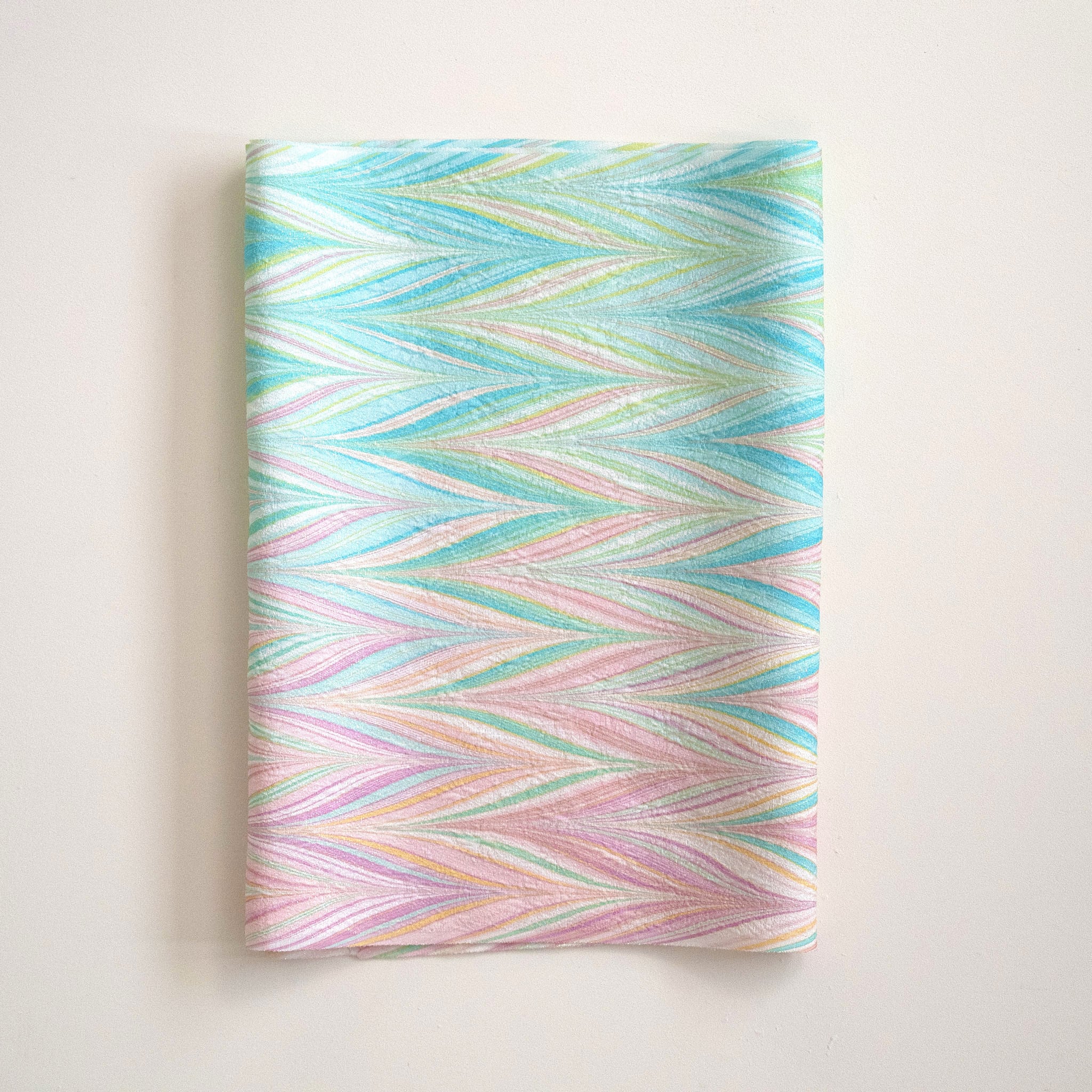 ・本作品は、手染めのため同じデザインでも、ドットの出方やハートの位置や個数などが一点ごとにわずかに異なります。水面の揺らぎをそのまま写し取る墨流しならではの自然な個体差であり、