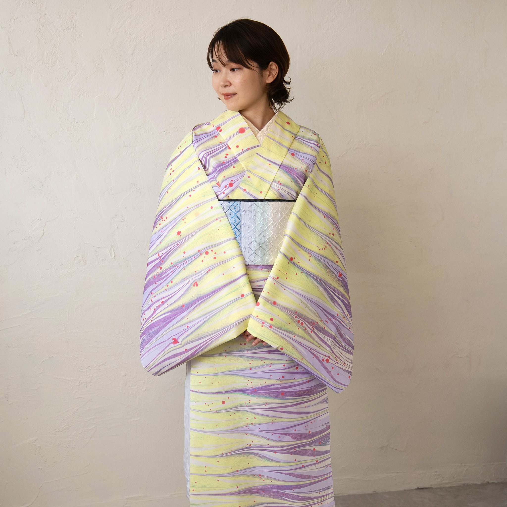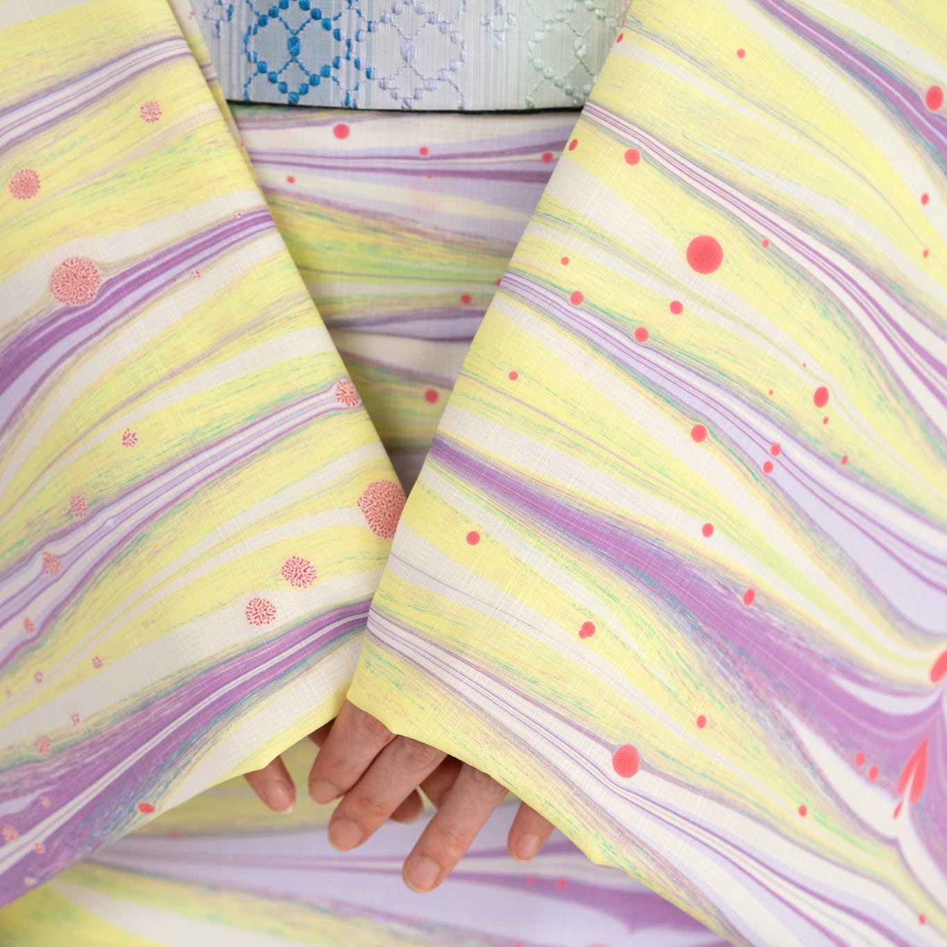 ・【恭平墨流し】は繊細で美しい柄の品質を保つため、一反を3回に分け時間をかけて染めます。反物でご納品する場合3分割にカットされて納品致します。(仕立て上問題はございません)ご理解ご協力のほどお願い致します。(今回の反物は作品によっては、カットされていないものを含みます)