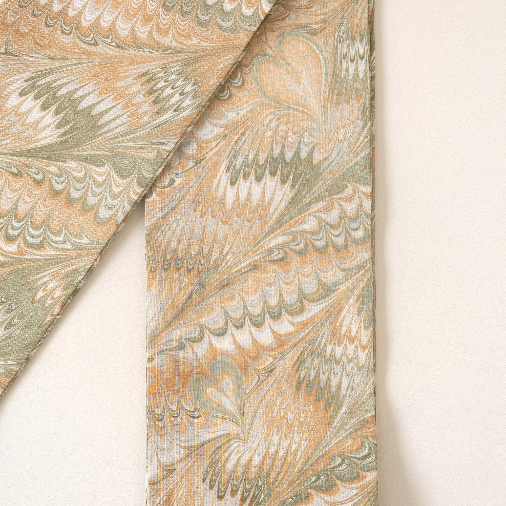 ピーコック崩しの流れを基調に、ゆるやかな揺らぎとリズムを残しながら、布全体に静かな動きを与えています。