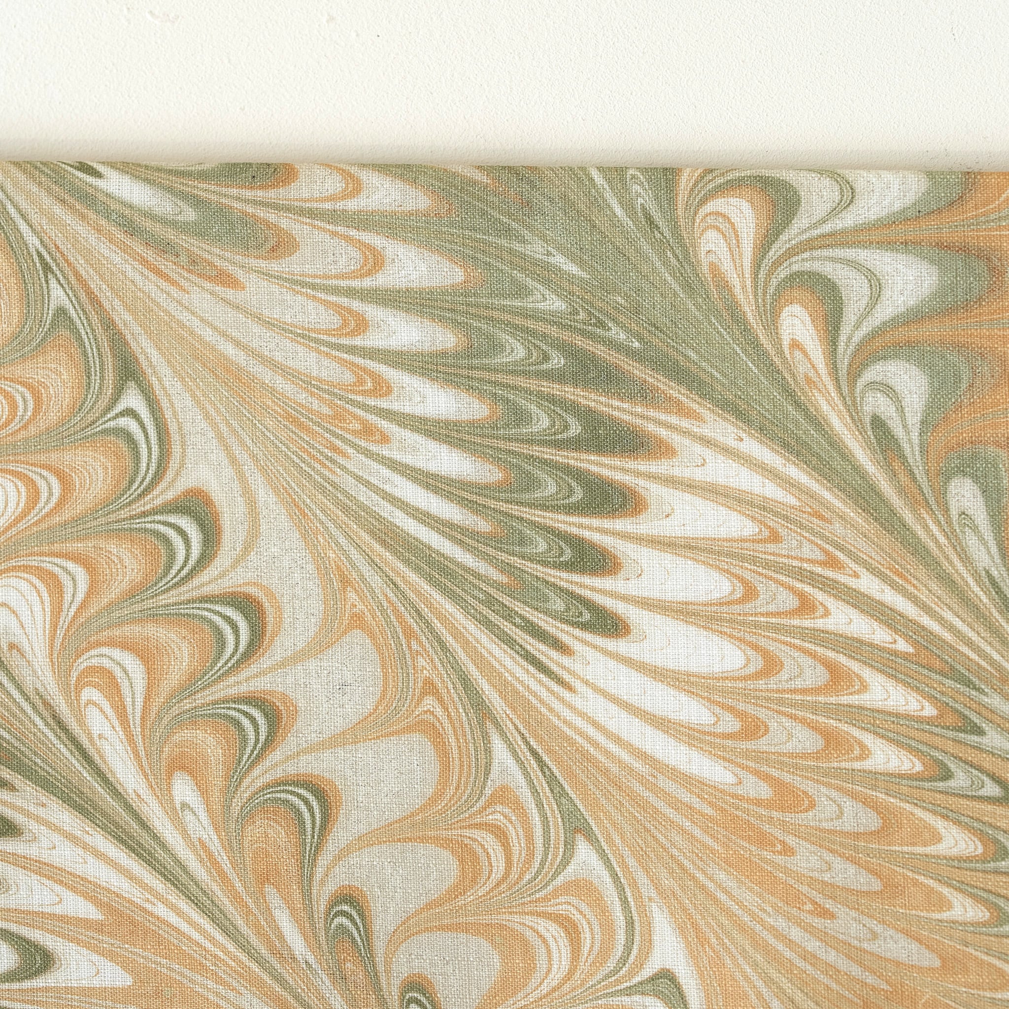 黄金色とやわらかなモスグリーンを重ねた色調は、