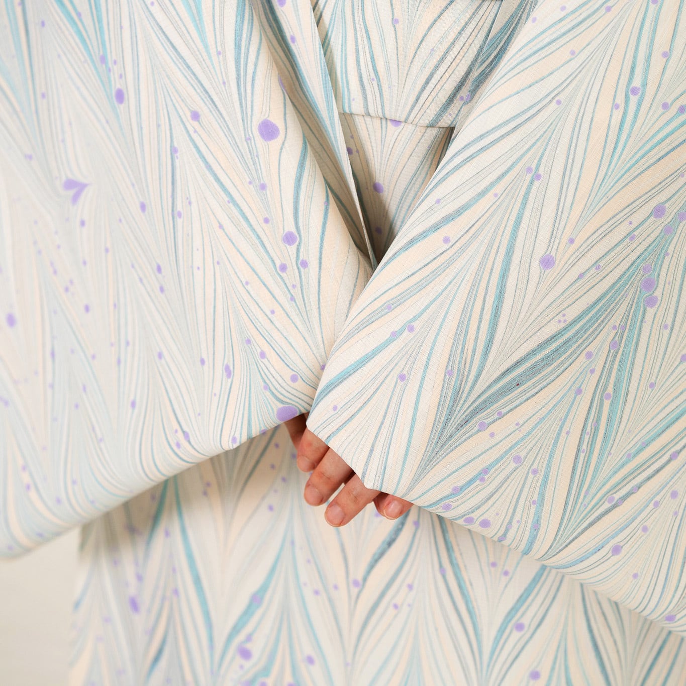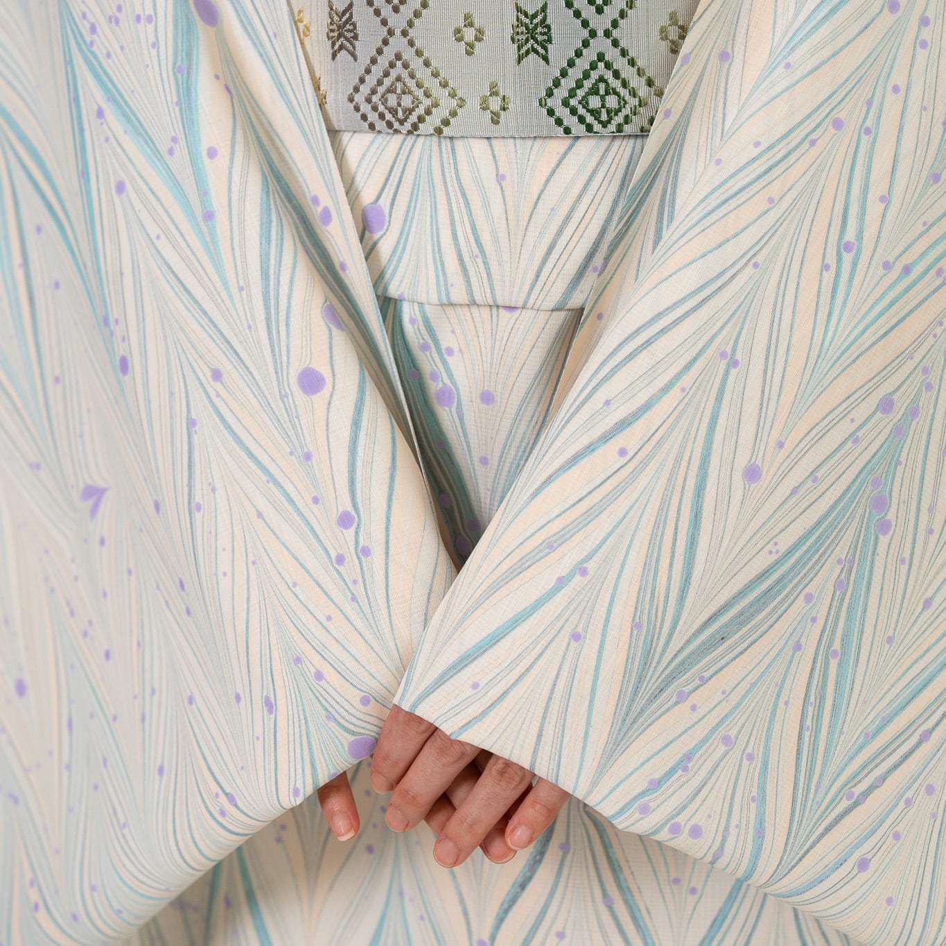 ・【恭平墨流し】は繊細で美しい柄の品質を保つため、一反を3回に分け時間をかけて染めます。反物でご納品する場合3分割にカットされて納品致します。(仕立て上問題はございません)ご理解ご協力のほどお願い致します。(今回の反物は作品によっては、カットされていないものを含みます)