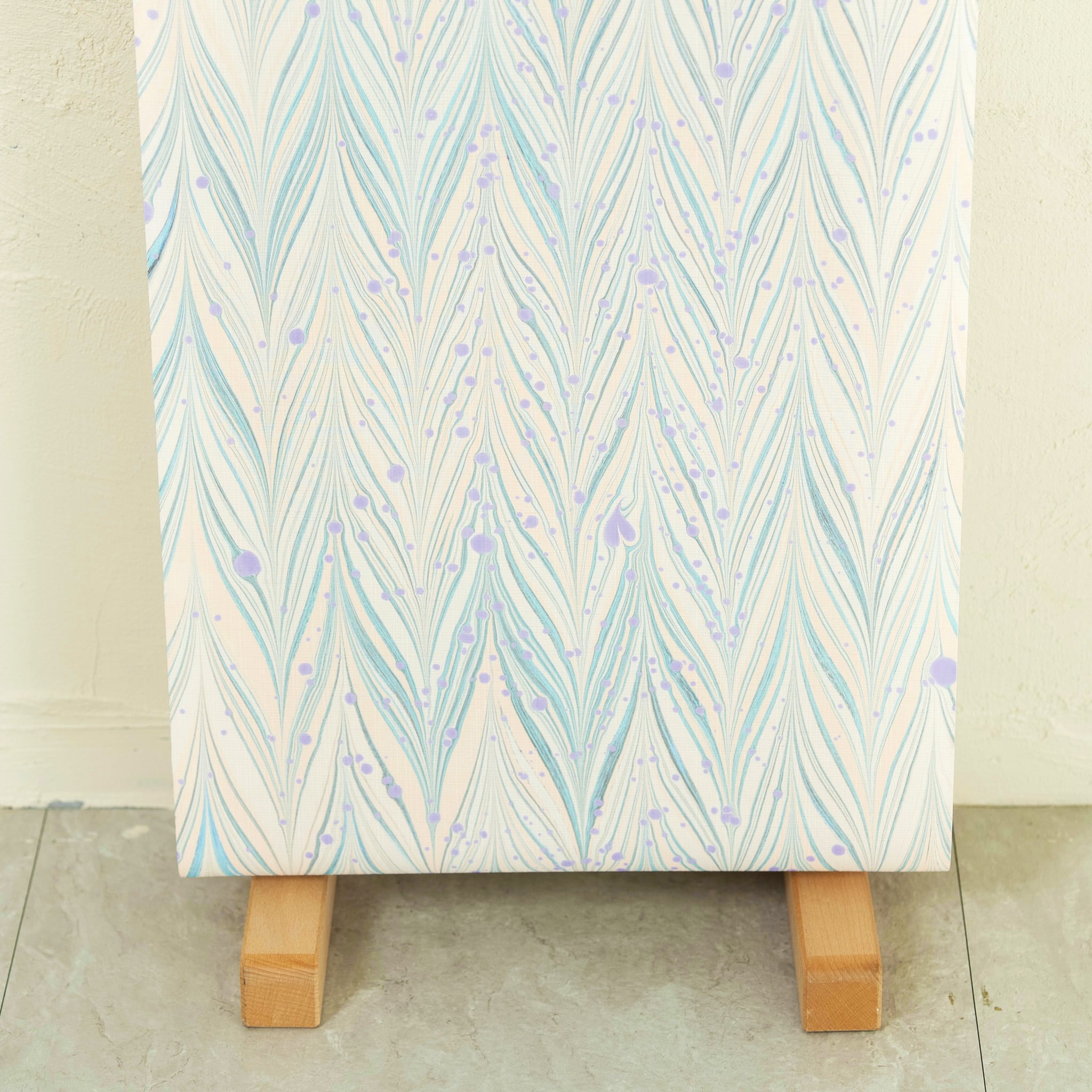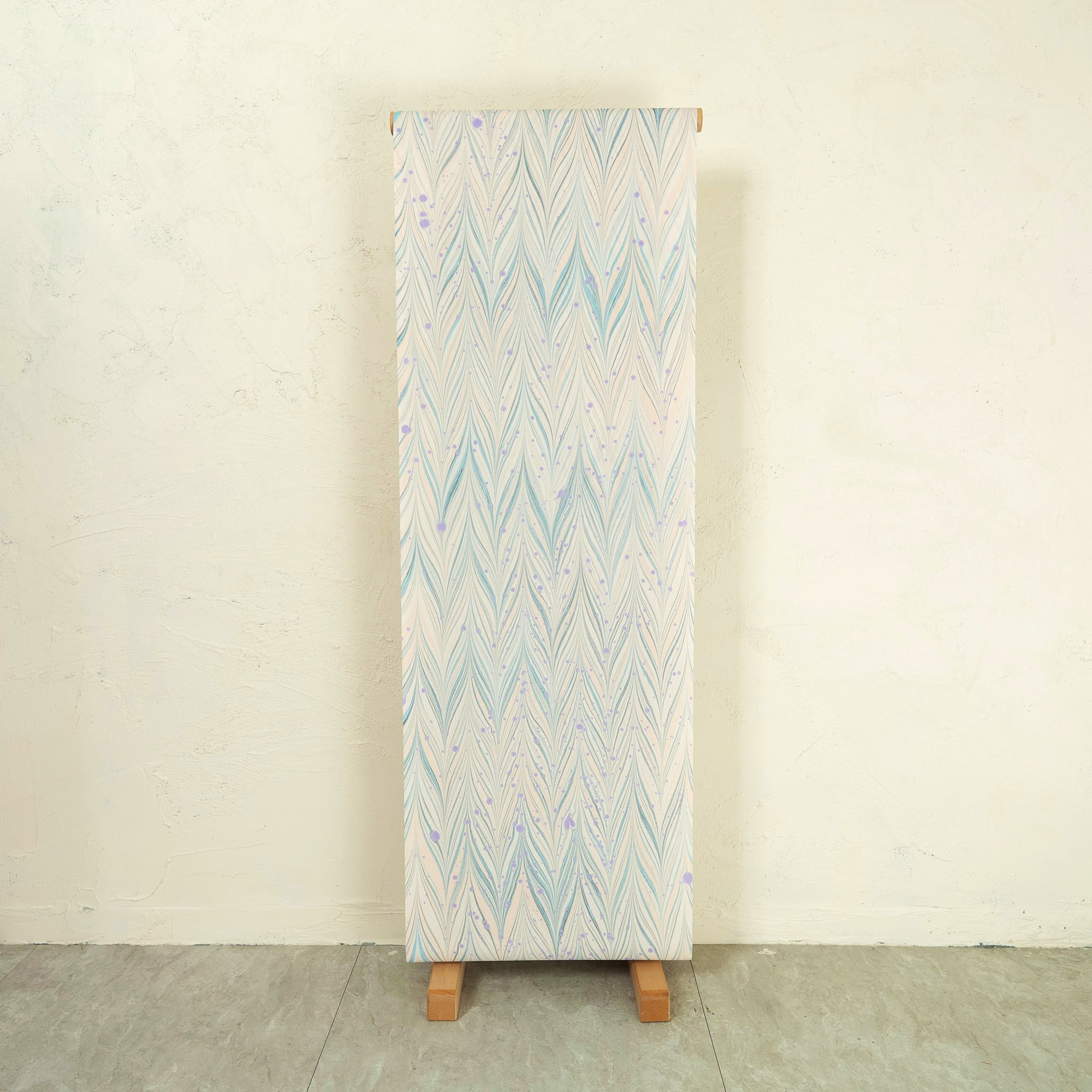 ミルキーなベージュをベースに、凛とした矢羽柄を描いた墨流し作品。