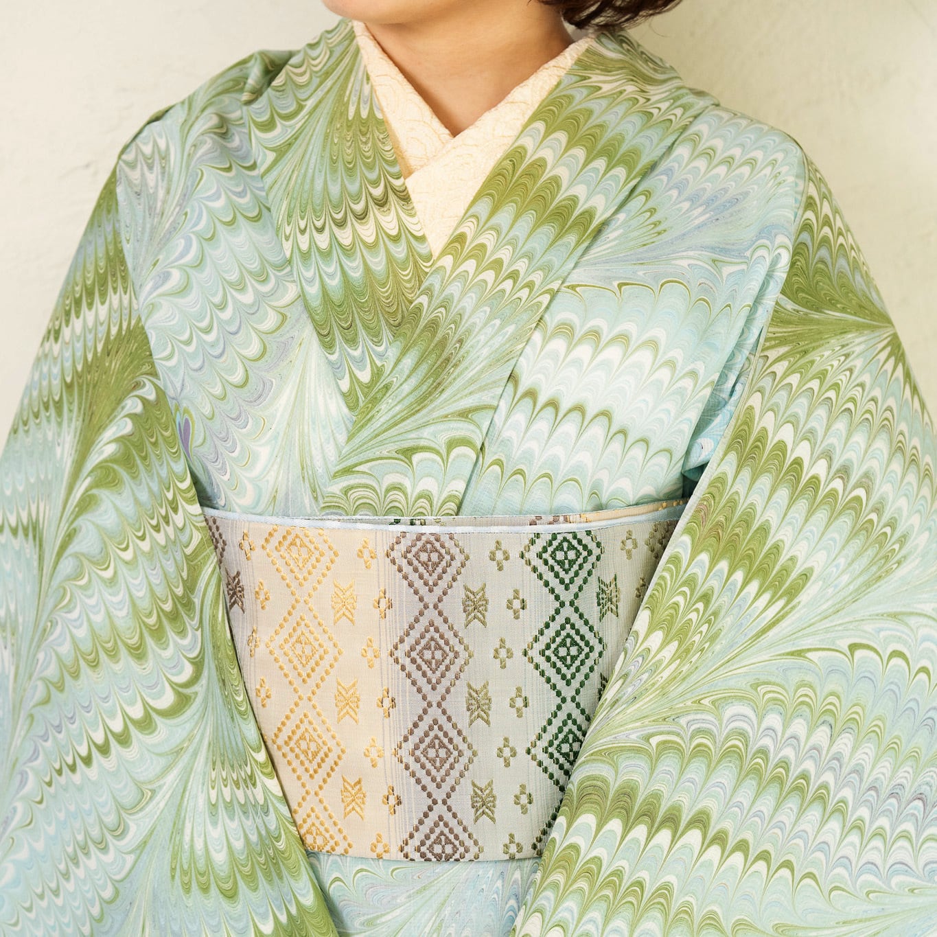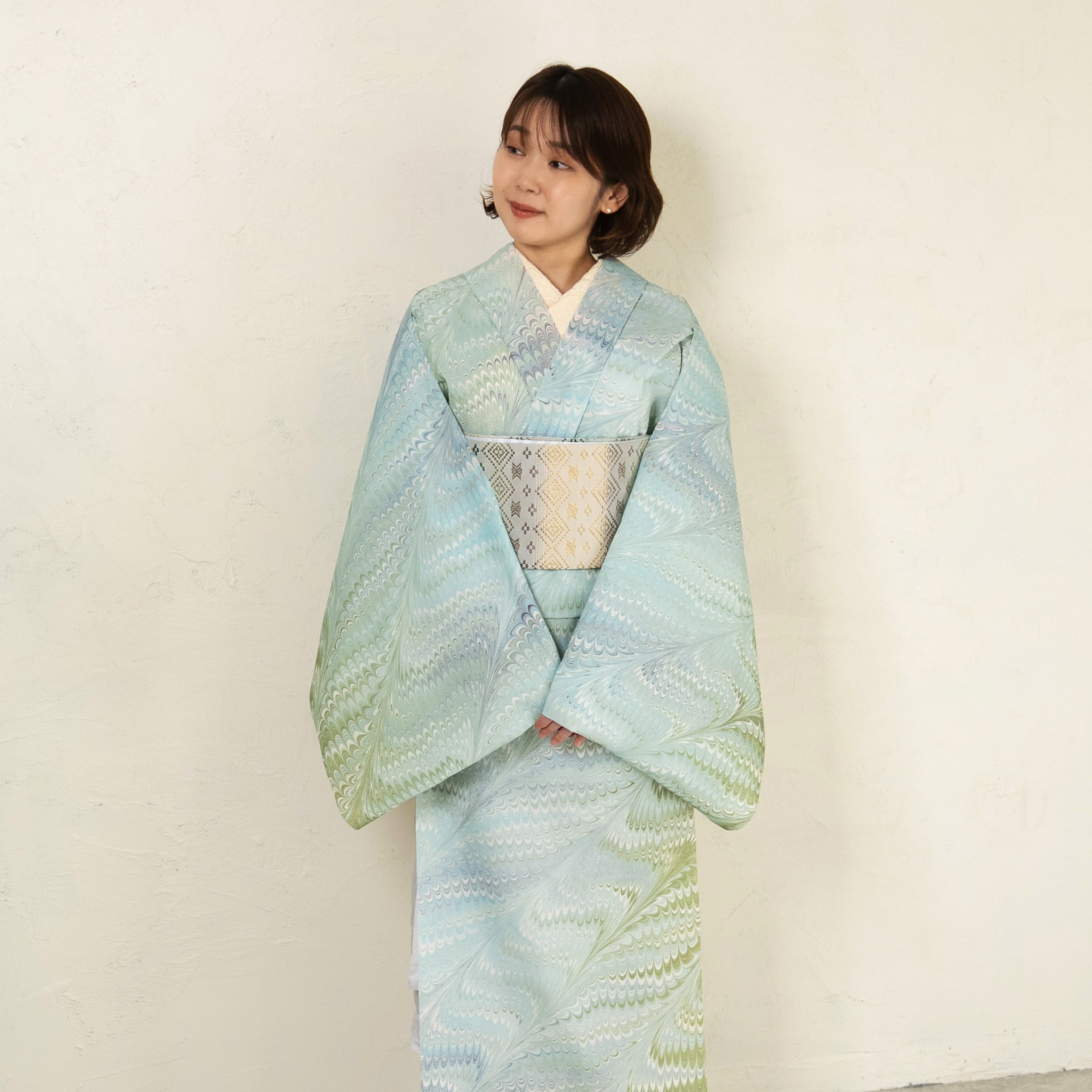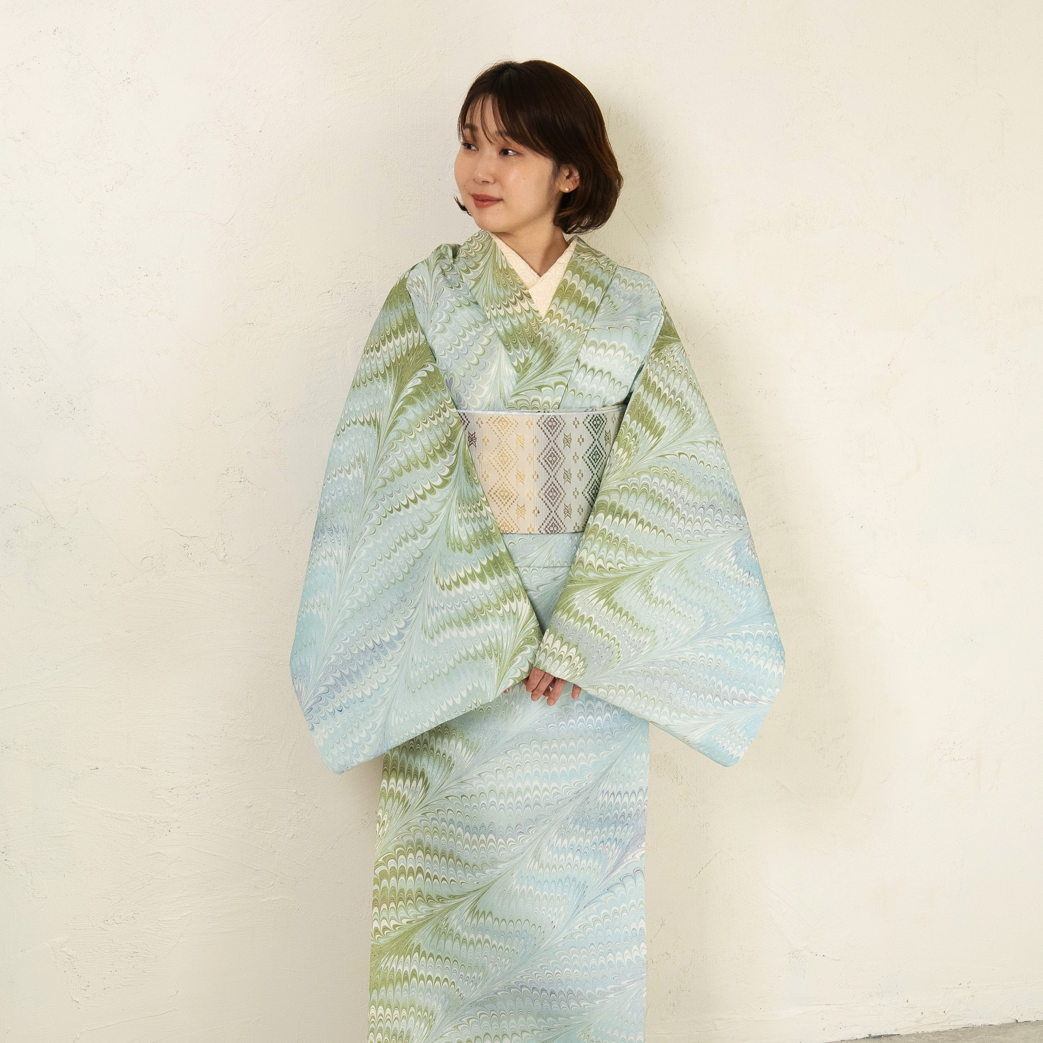 澄んだ竹の葉を思わせるグリーンを軸に、わずかに揺らぐニュアンスカラーを重ねた配色は、竹林を抜ける風のような穏やかな空気感を表現しています。