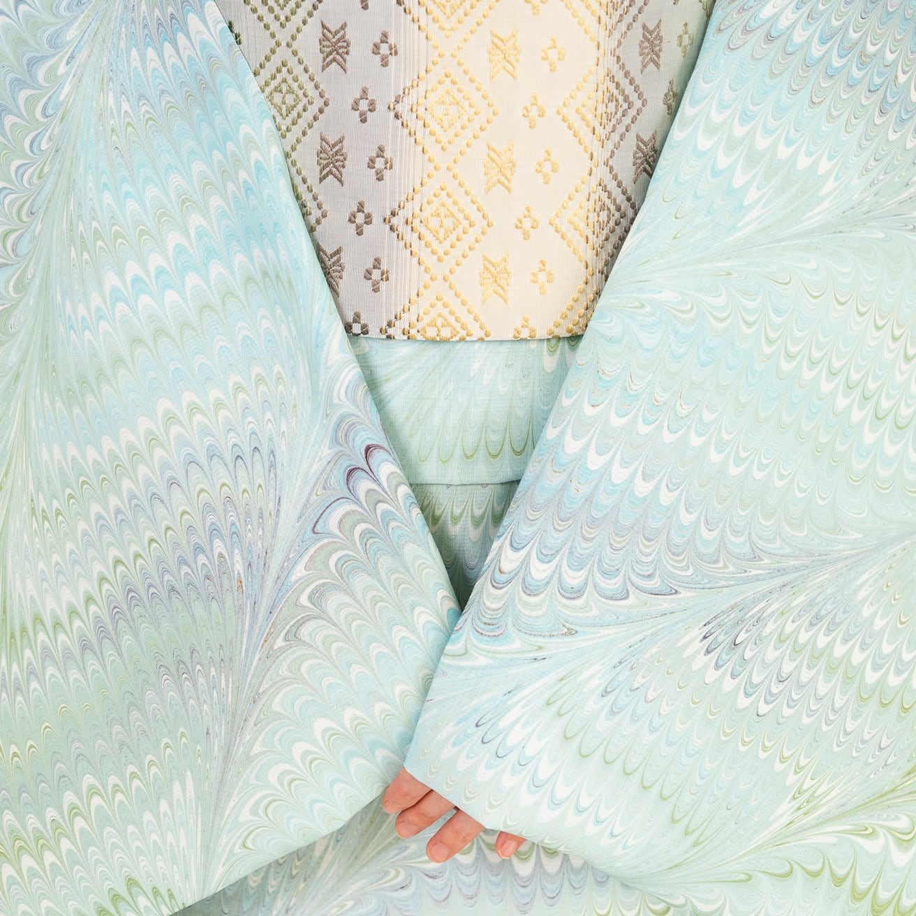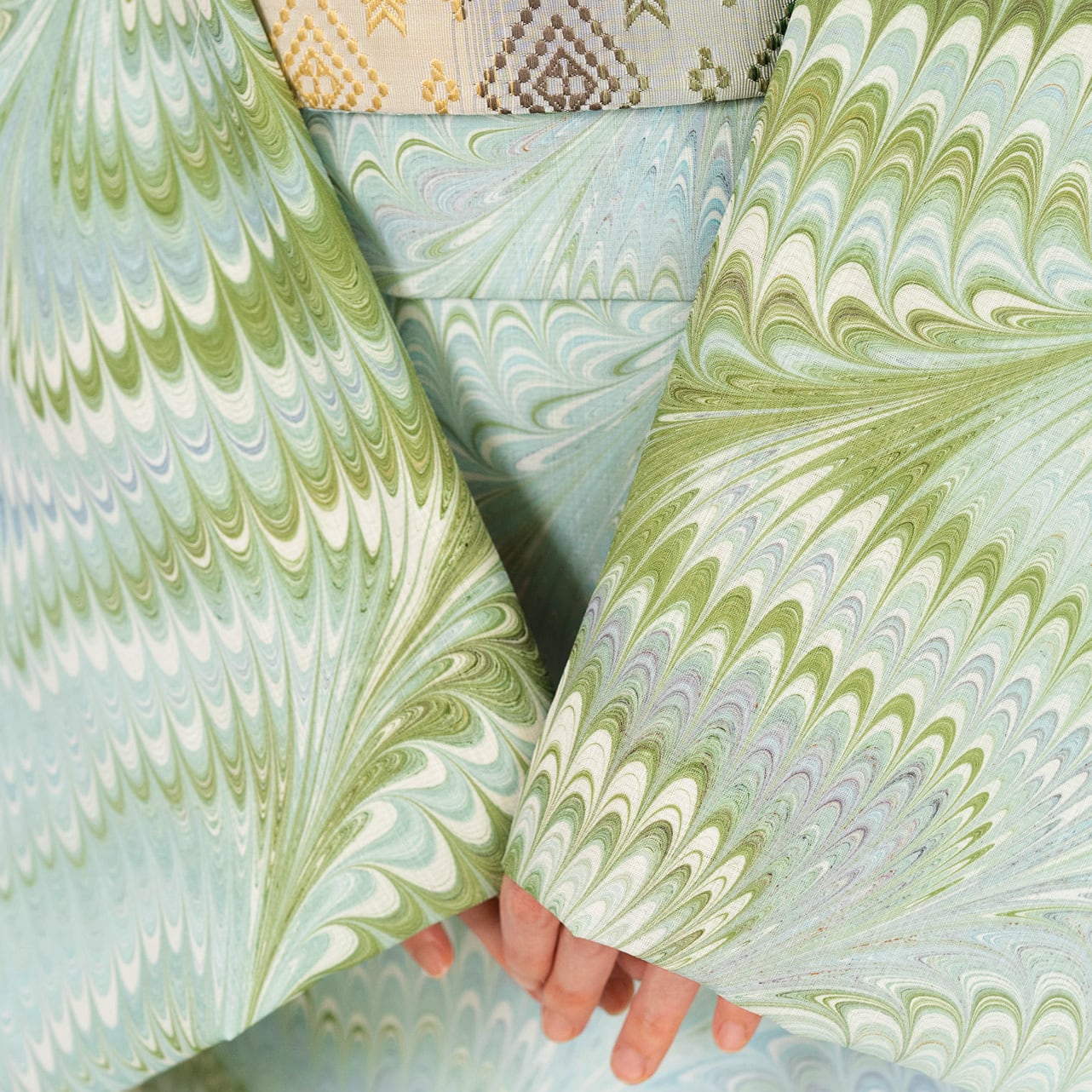 細部まできめ細かく描かれた模様は、墨流し特有の偶然性と制御のバランスによって生まれたもの。近くで見るほどに表情の豊かさを感じていただけます。