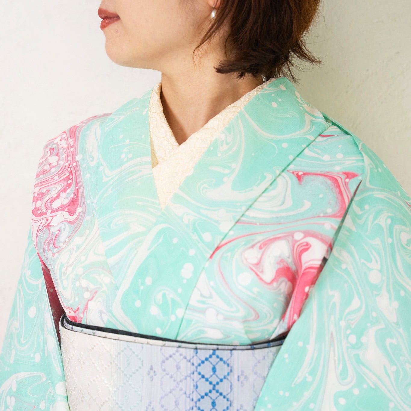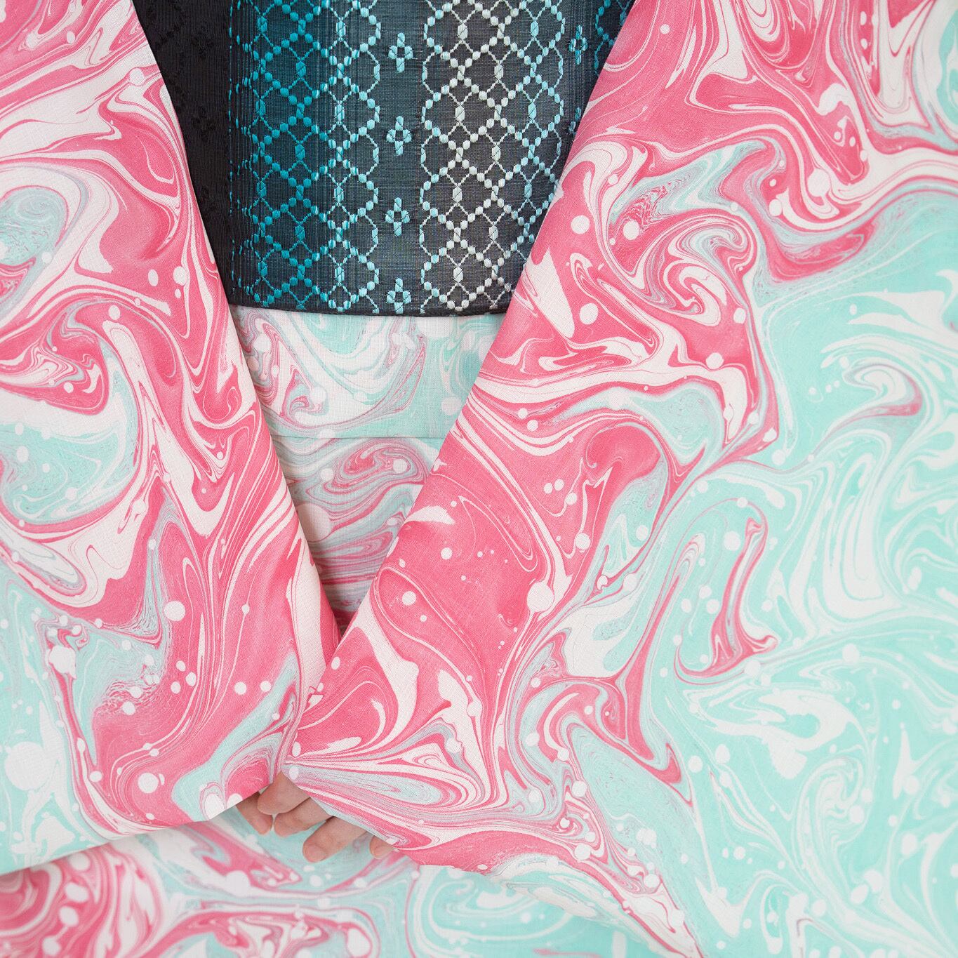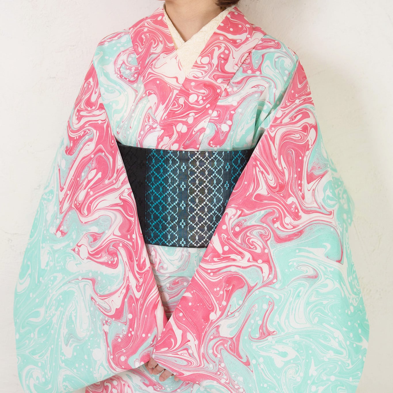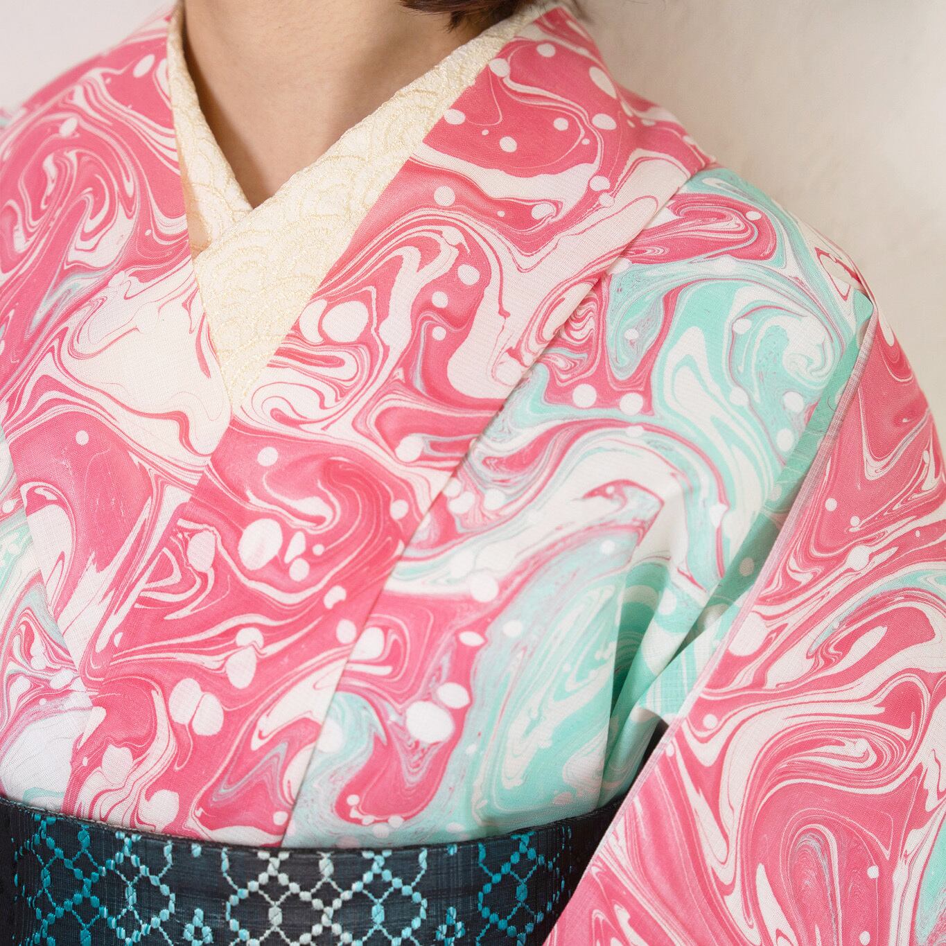 「strawberry syrup」マーブル柄〜セオアルファ 浴衣・夏着物・単衣