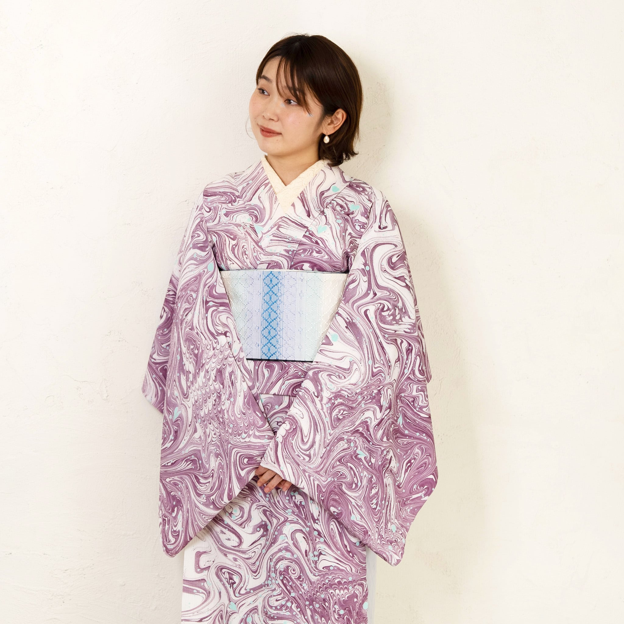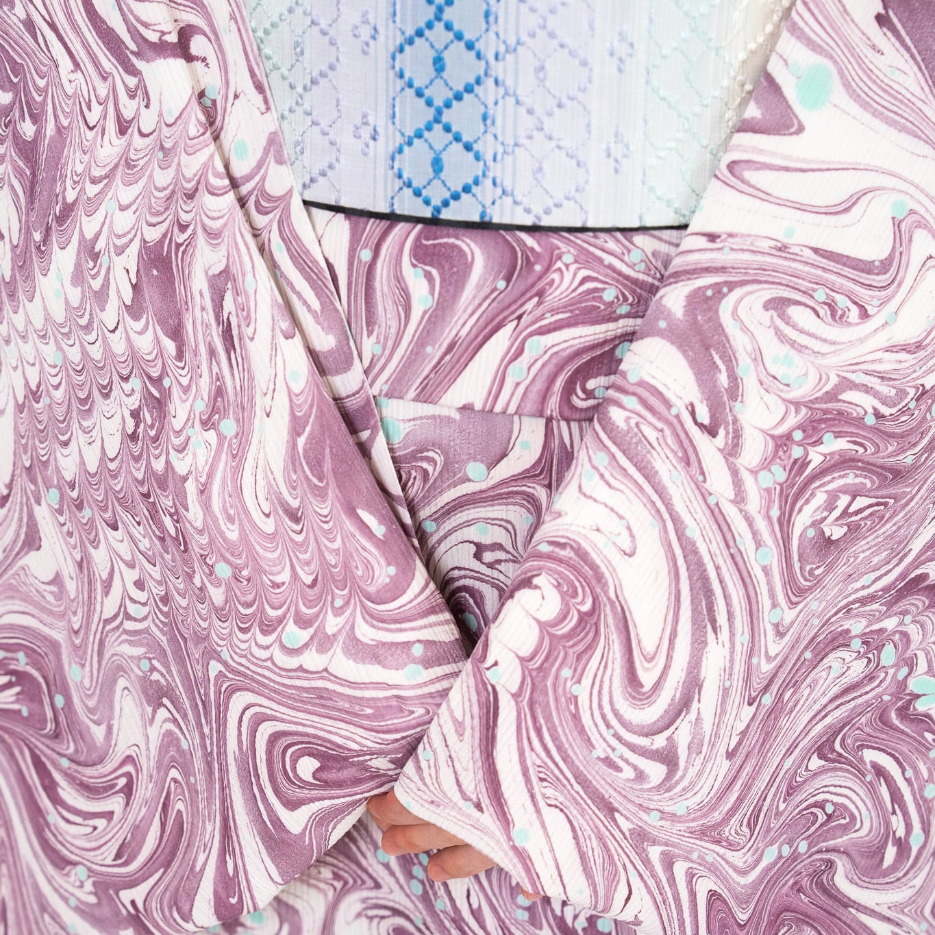 「葡萄色×ミントグリーンドット」アクセントマーブル柄❤︎〜セオアルファ楊柳〜浴衣・夏着物・単衣