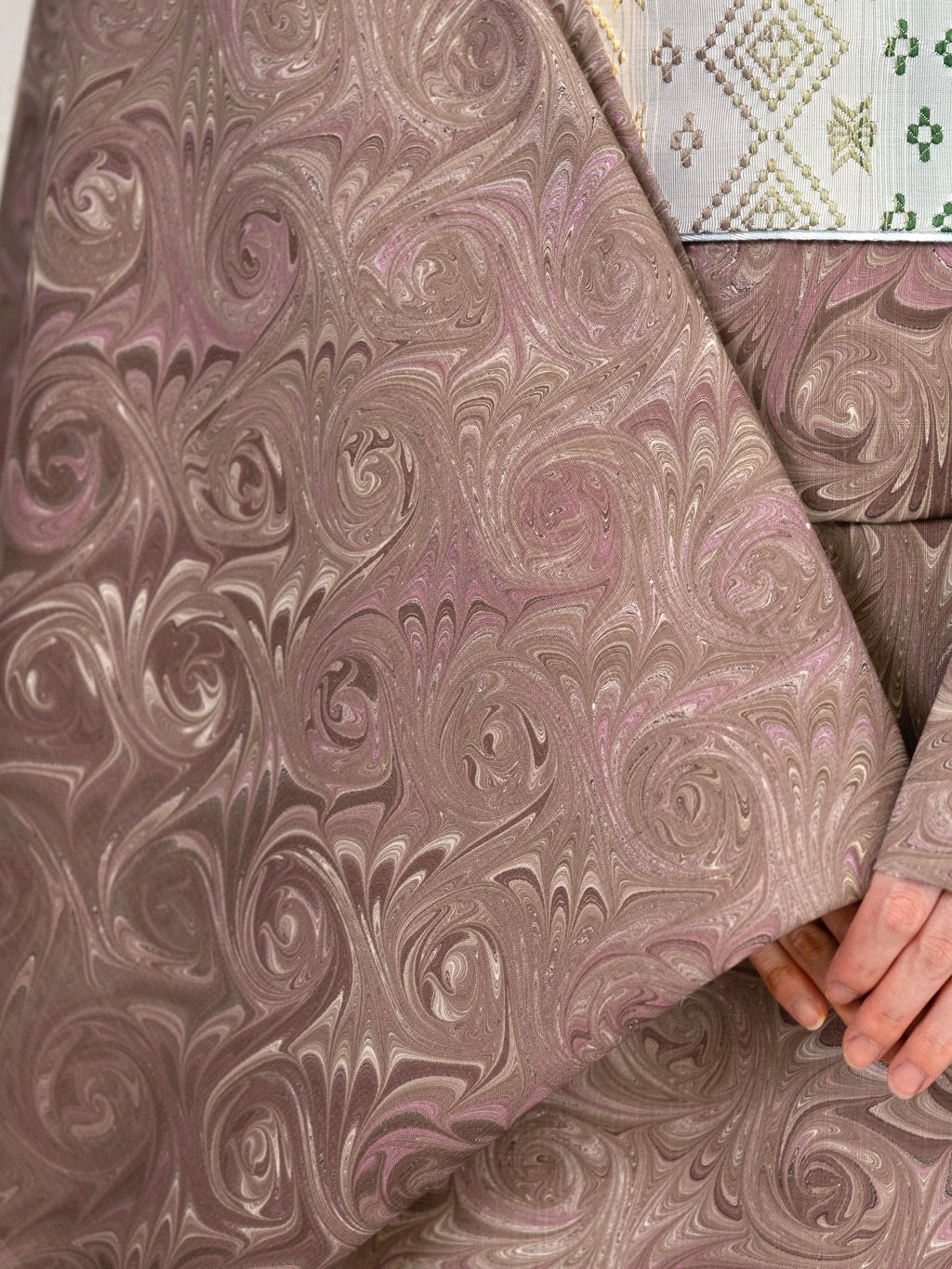 墨流し特有の偶然性と作家の繊細なコントロールが重なり、見るほどに奥行きのある表情をお楽しみいただけます。
