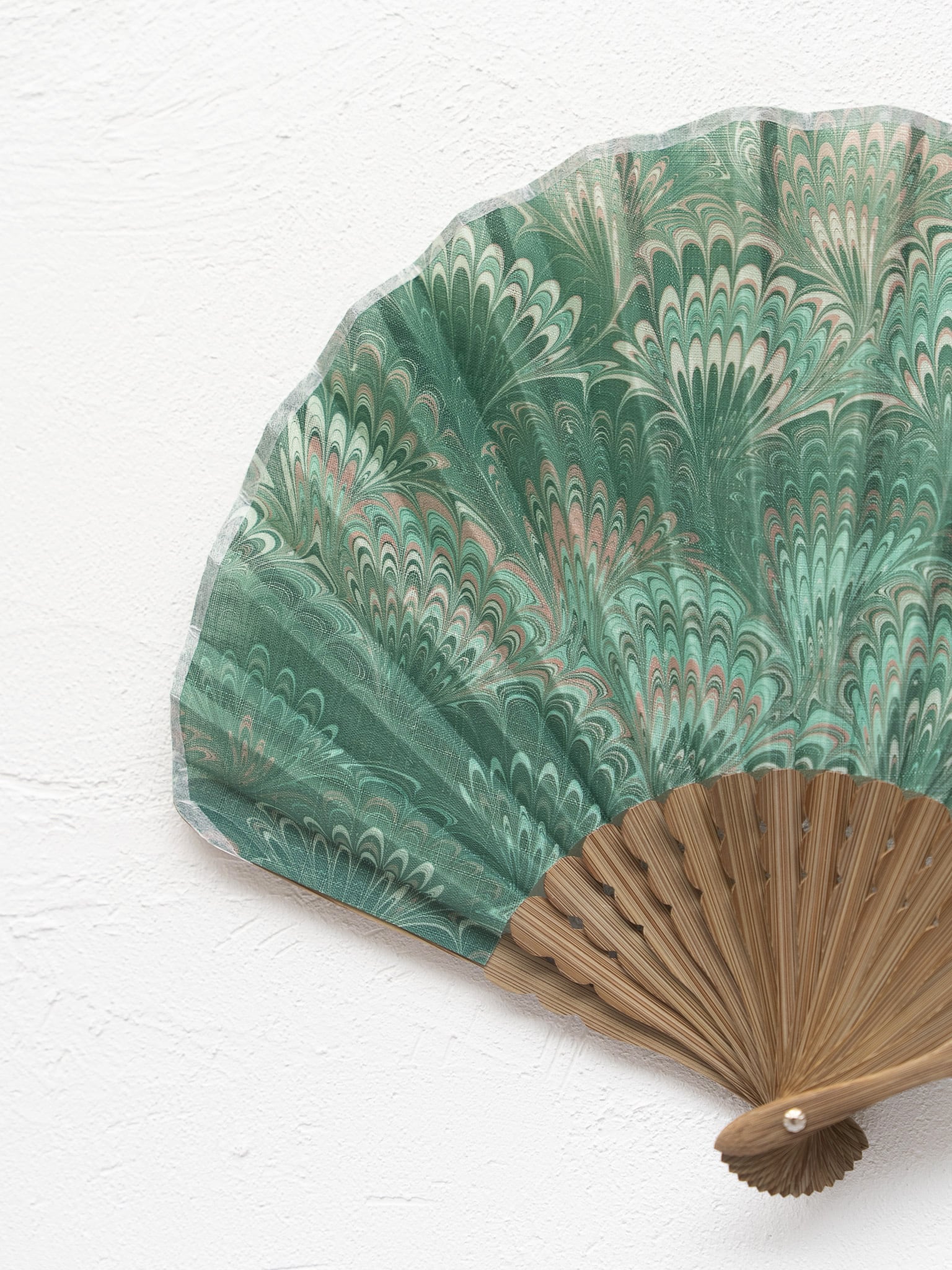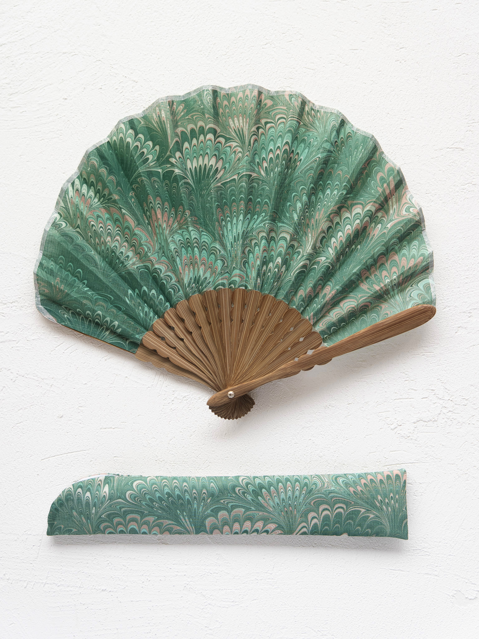 墨流し作家・恭平による手染めの生地を使用した特別な扇子です。