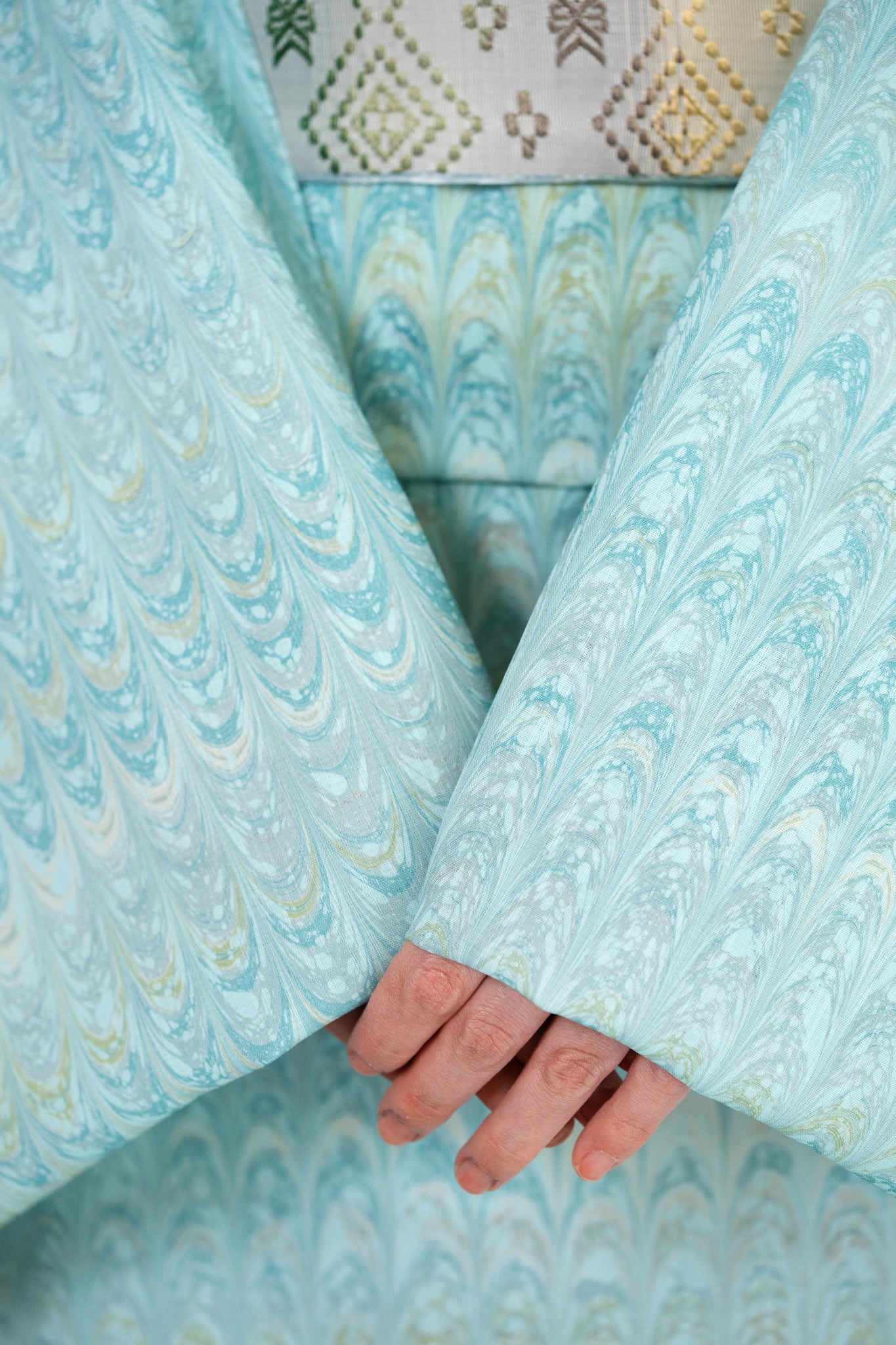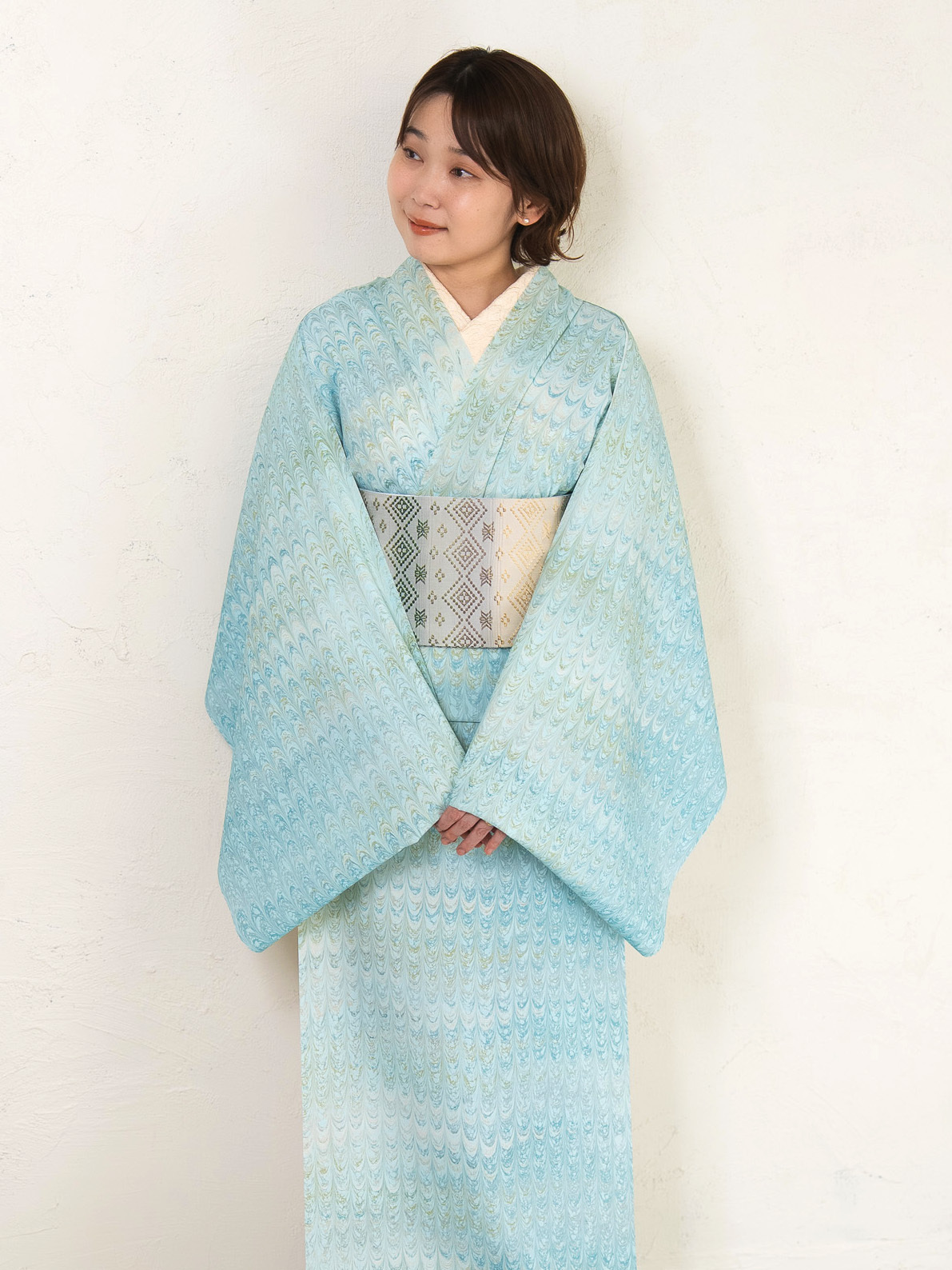 反物幅で染め分けているため、お仕立てによって表情の違いをお楽しみいただけます。
