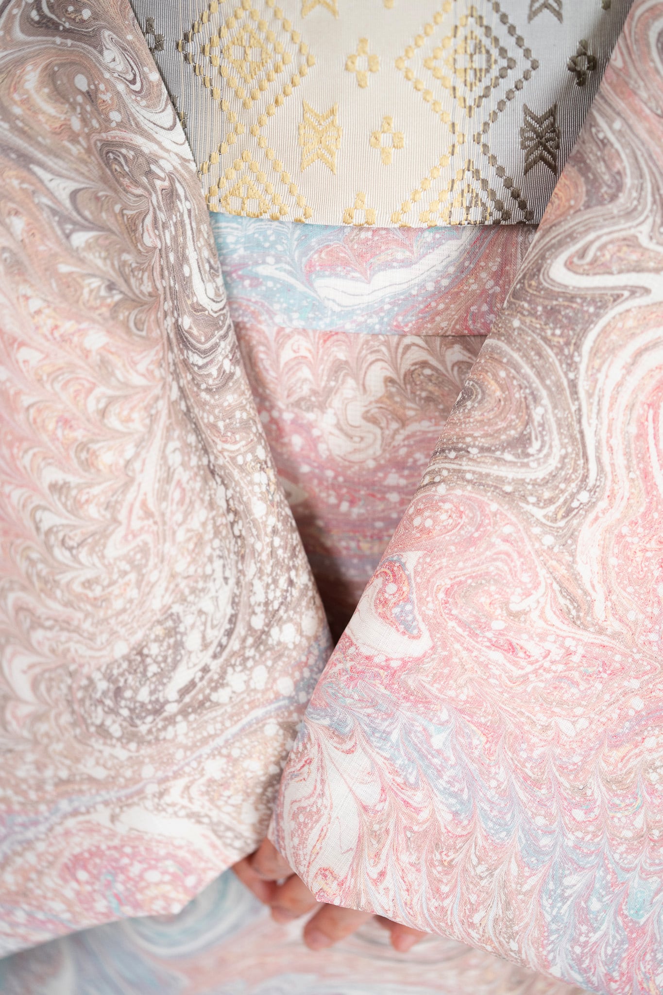 「夢の池」❤︎本墨流し柄〜セオアルファ 浴衣・夏着物・単衣