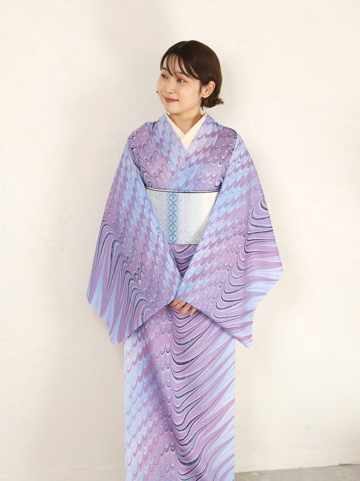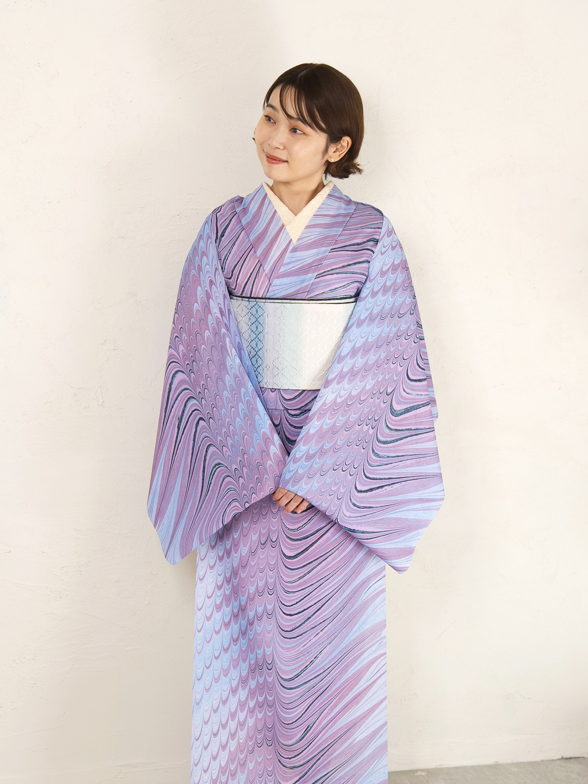 シャープなゆらぎ柄を配置すると、すっきりとモダンで印象的な装いに仕上がります。