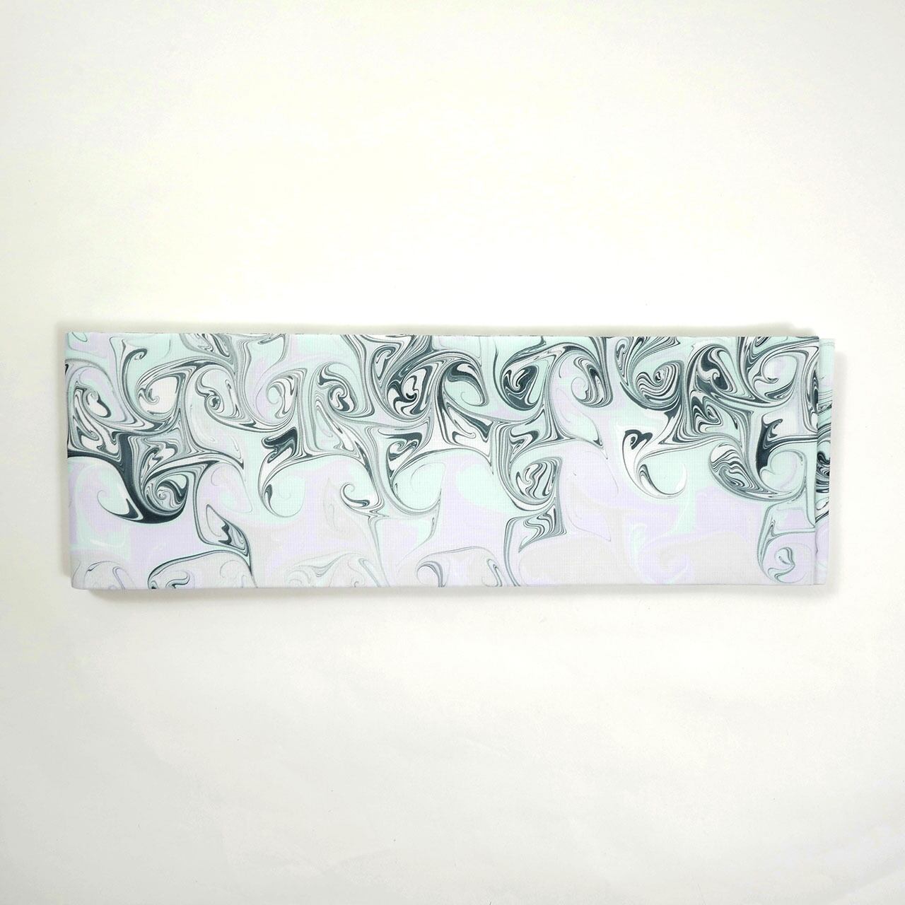 煙がほどけていくように、細く細く繊細に描いた柄が、優雅さと洗練さを演出しています。墨流しの悠々としたラインは、コーディネートを引き締め、さらに美しさを際立たせます。