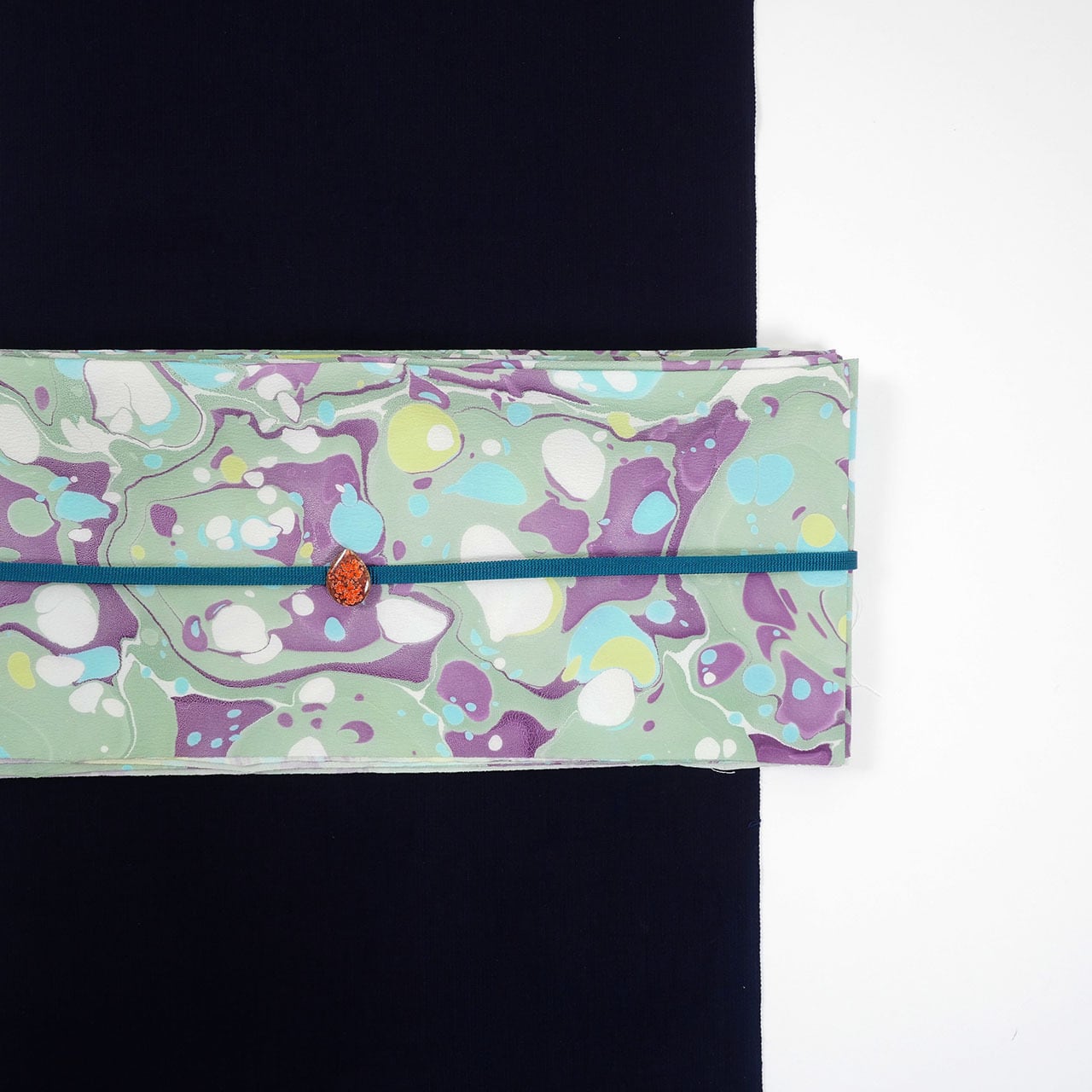 suminagashi リバーシブル半巾帯 [裏葉色×パープル ドット×マーブル]