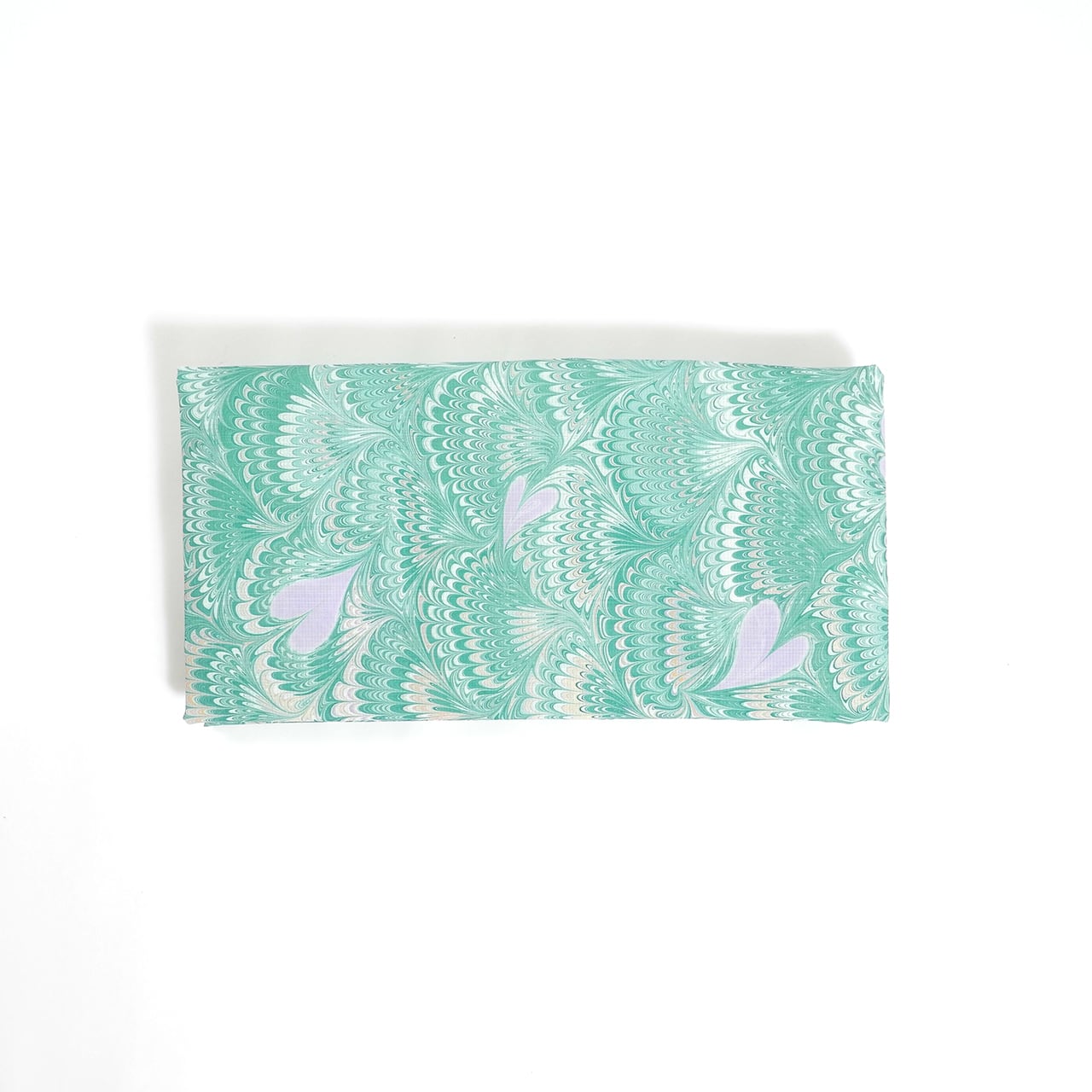 ■はなびらのような優しいラベンダーカラーのハートがきれいなグリーンをバックに舞ってる柄とお花畑のような面をおたのしみいただけます。