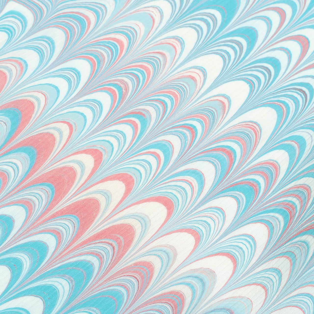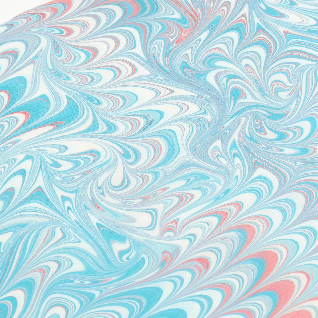 鮮やかなブルーに赤のピーコック柄とマーブル柄のデザイン。