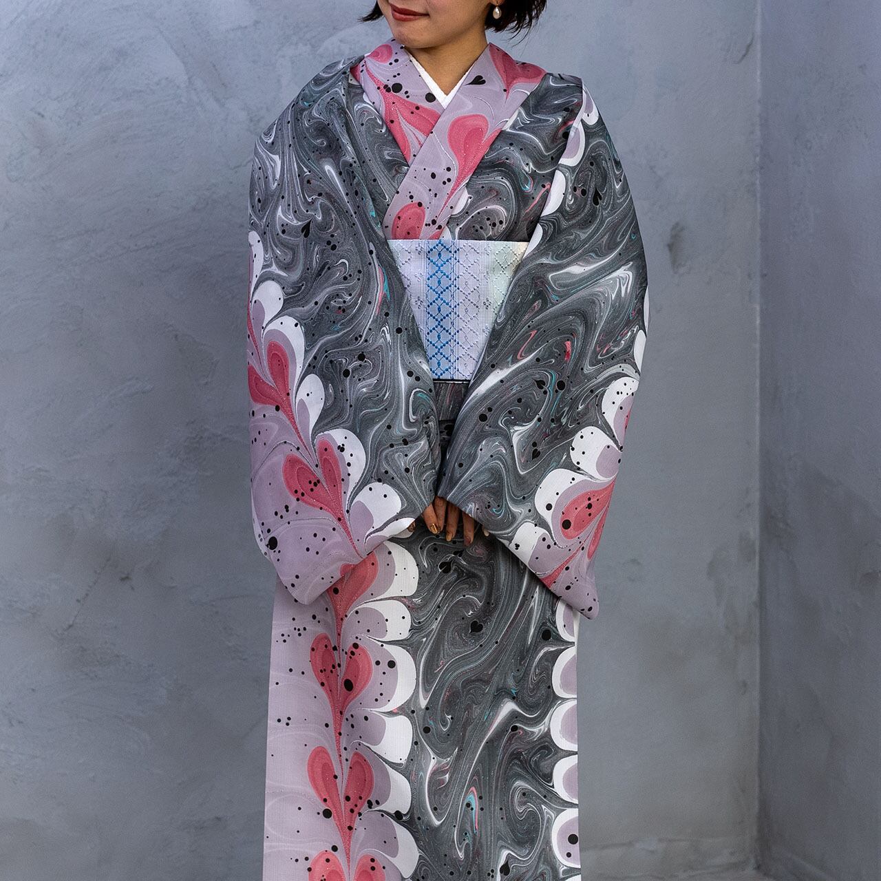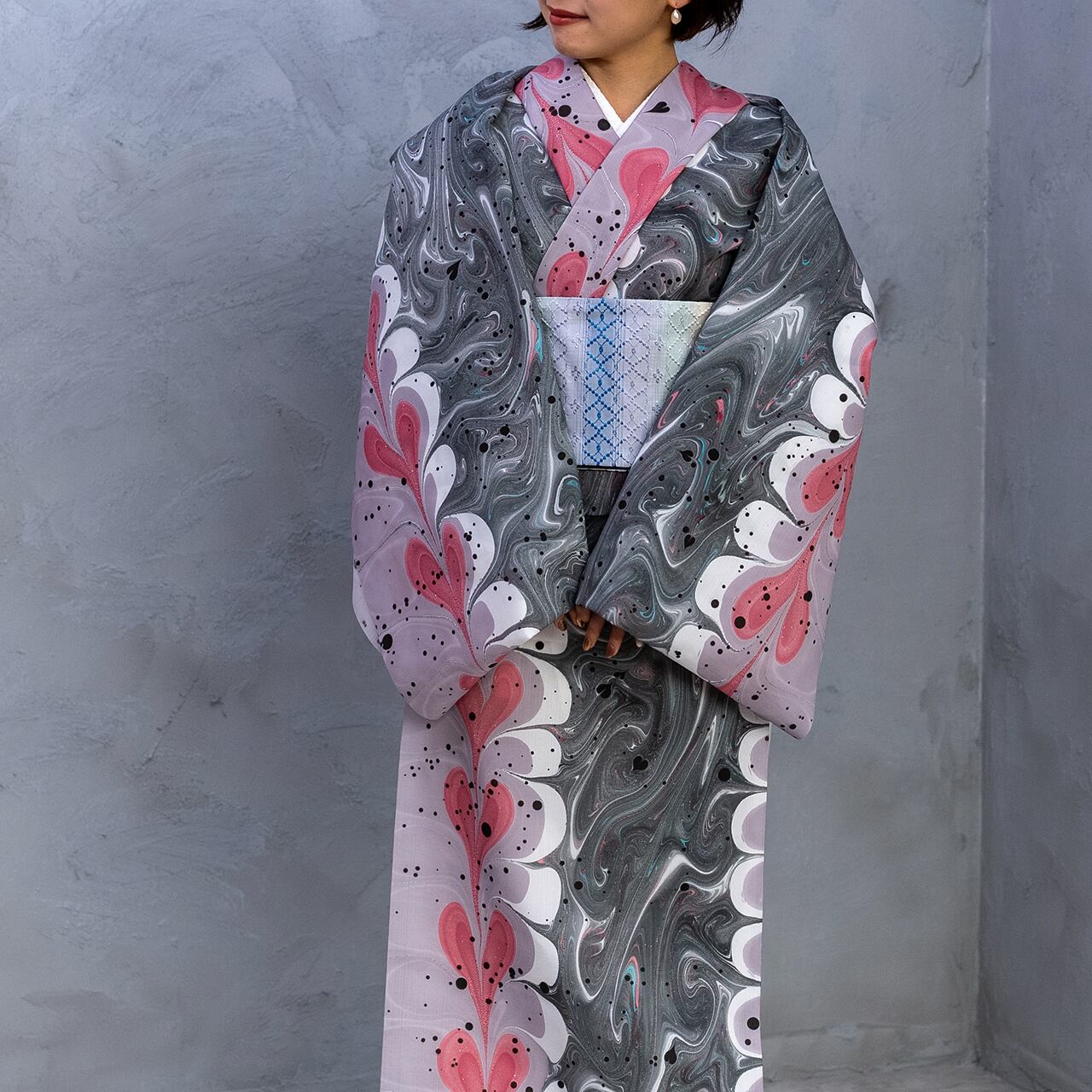 ・【恭平墨流し】は繊細で美しい柄の品質を保つため、一反を3回に分け時間をかけて染めます。反物でご納品する場合3分割にカットされて納品致します。(仕立て上問題はございません)ご理解ご協力のほどお願い致します。(今回の反物は作品によっては、カットされていないものを含みます)