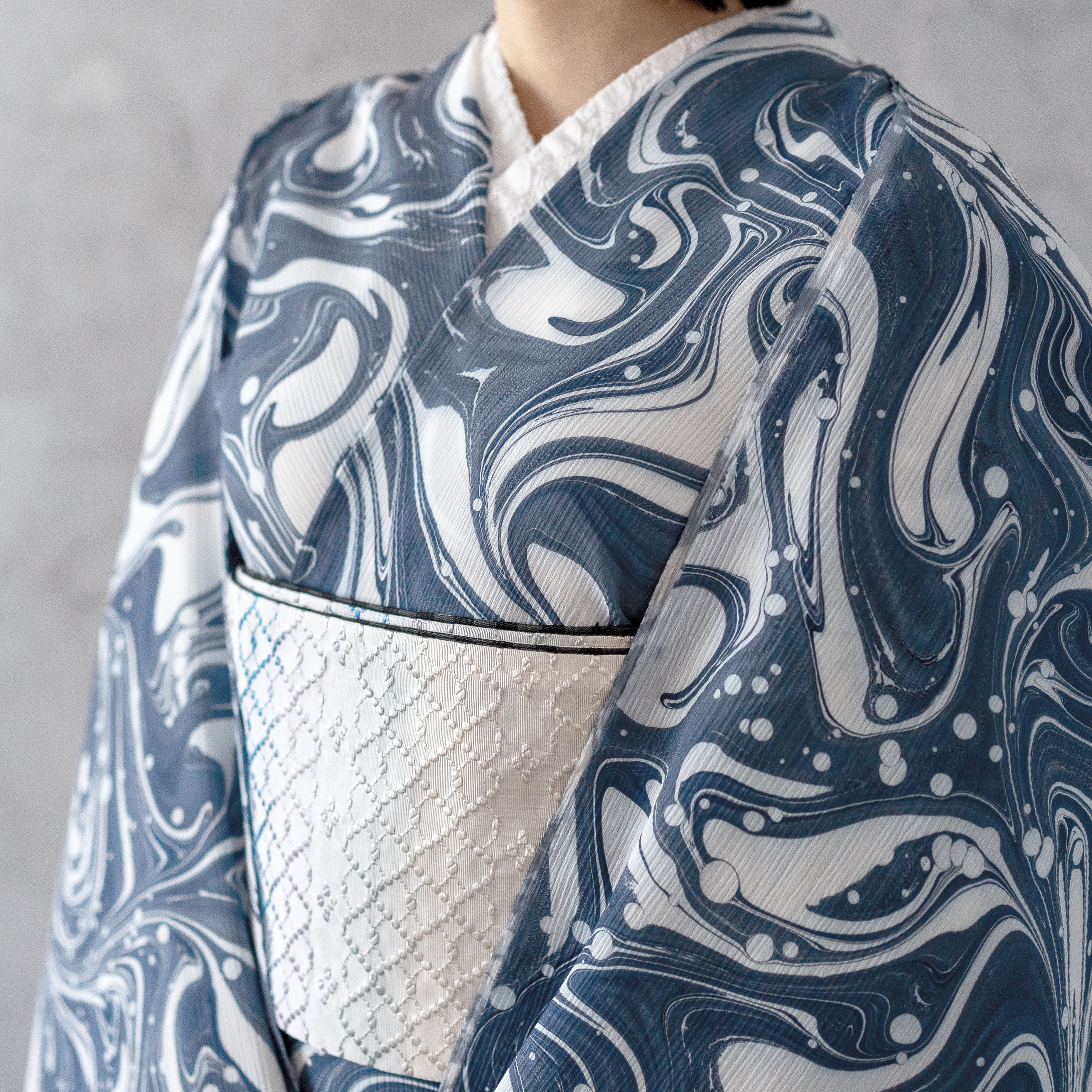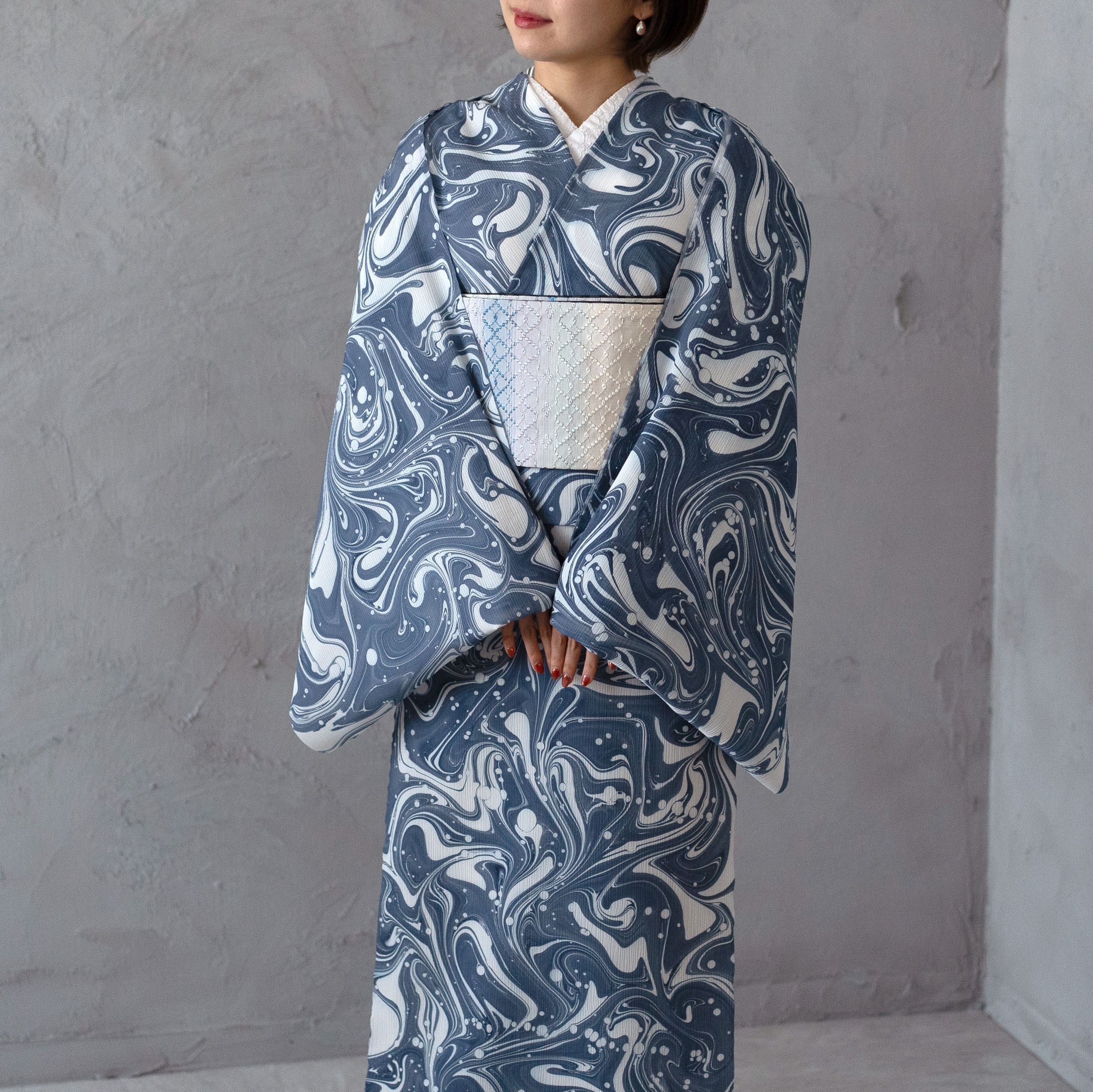 ・【恭平墨流し】は繊細で美しい柄の品質を保つため、一反を3回に分け時間をかけて染めます。反物でご納品する場合3分割にカットされて納品致します。(仕立て上問題はございません)ご理解ご協力のほどお願い致します。(今回の反物は作品によっては、カットされていないものを含みます)