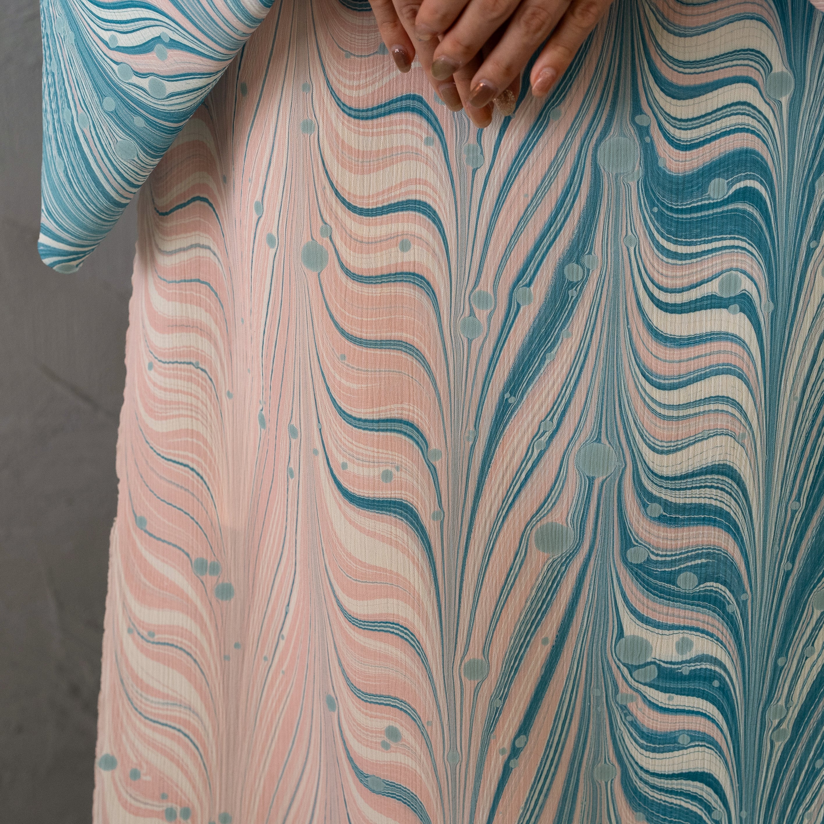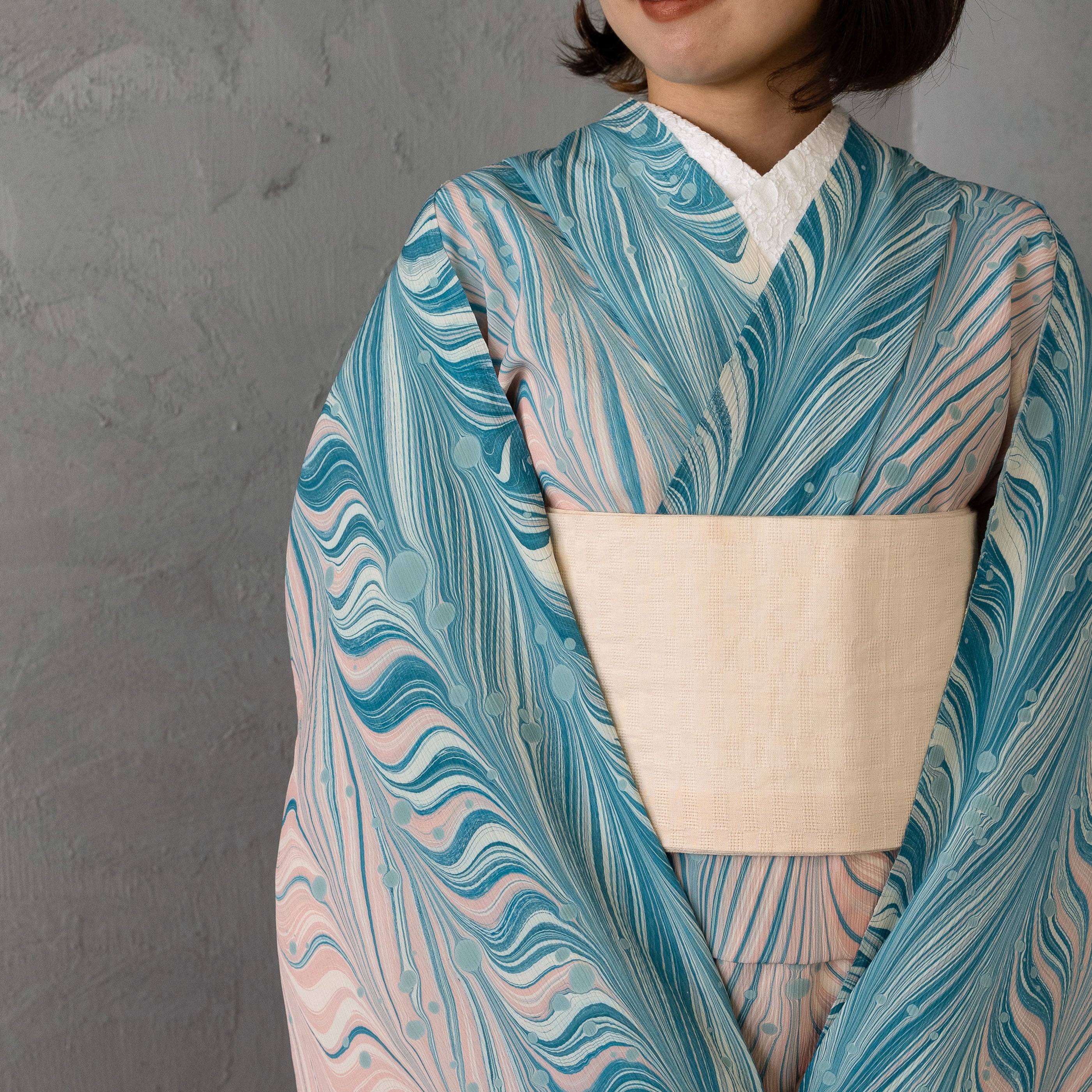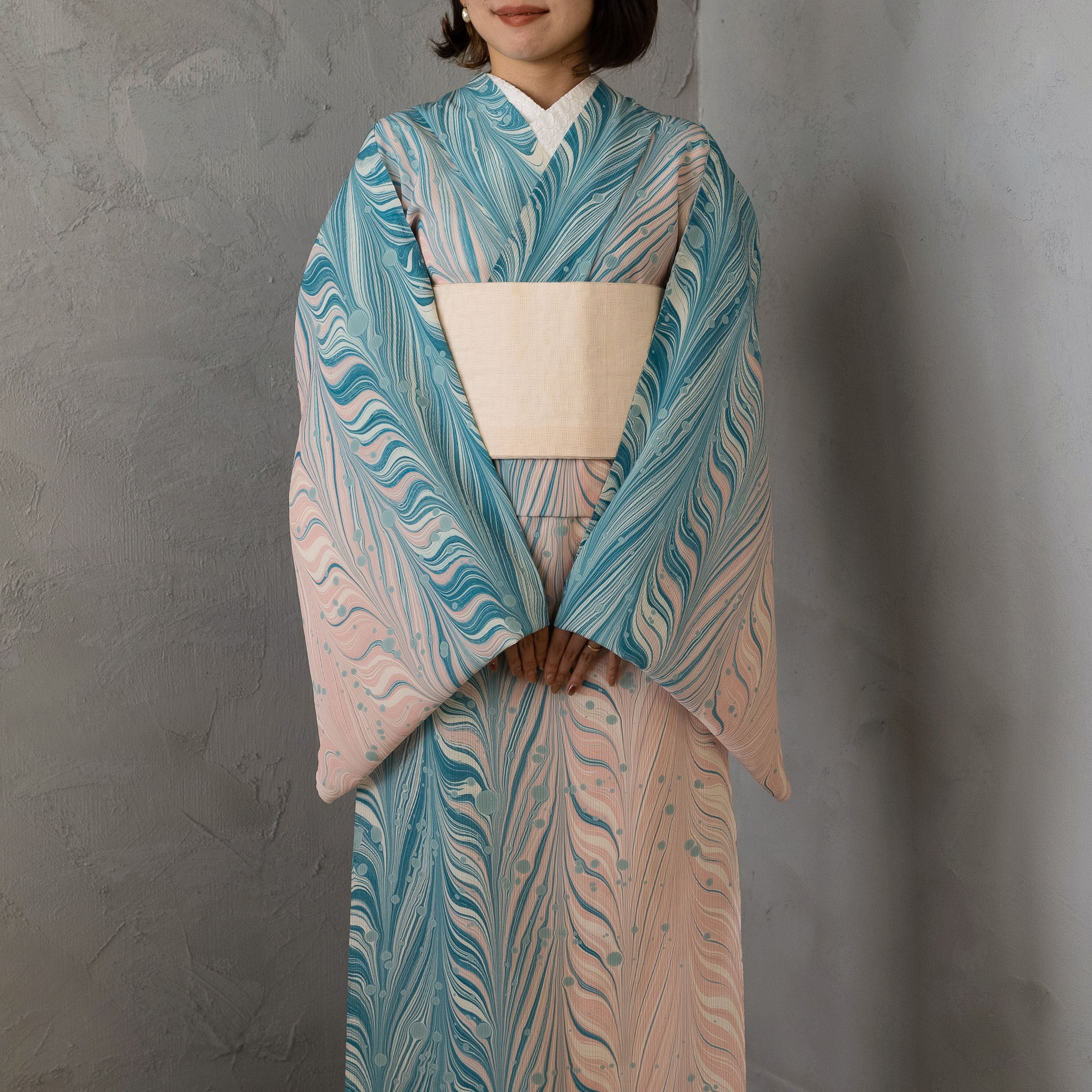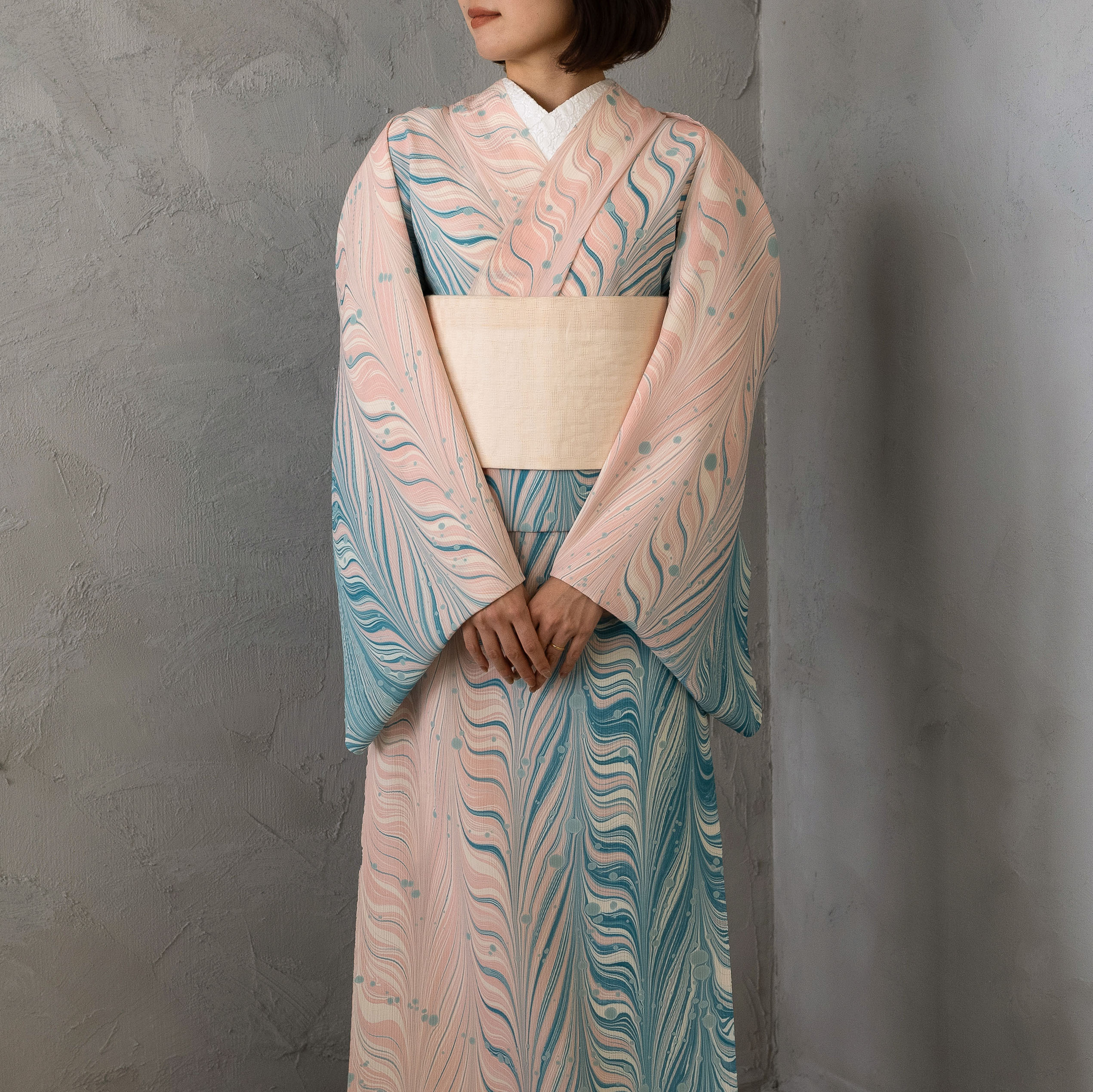 ・【恭平墨流し】は繊細で美しい柄の品質を保つため、一反を3回に分け時間をかけて染めます。反物でご納品する場合3分割にカットされて納品致します。(仕立て上問題はございません)ご理解ご協力のほどお願い致します。(今回の反物は作品によっては、カットされていないものを含みます)