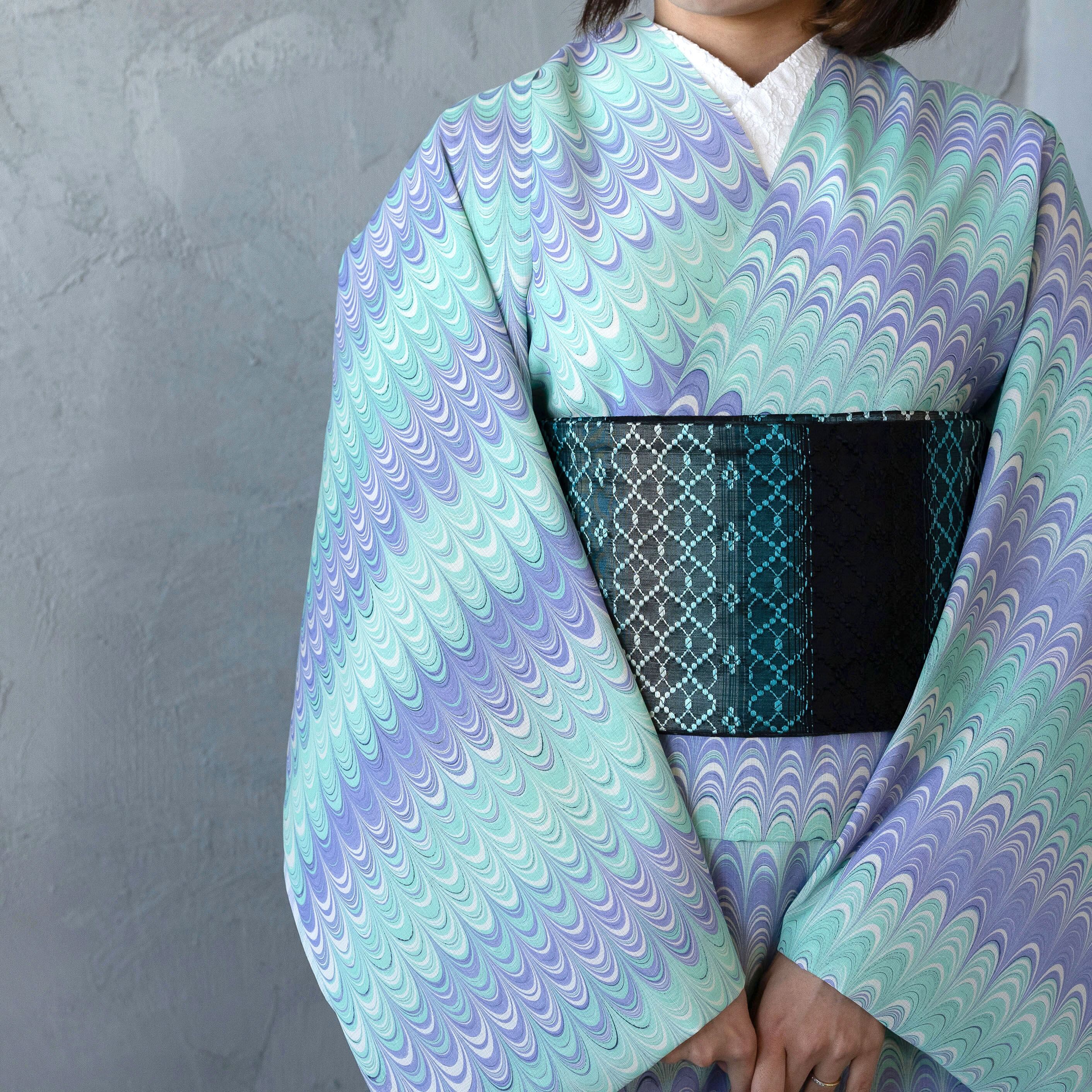 ・【恭平墨流し】は繊細で美しい柄の品質を保つため、一反を3回に分け時間をかけて染めます。反物でご納品する場合3分割にカットされて納品致します。(仕立て上問題はございません)ご理解ご協力のほどお願い致します。(今回の反物は作品によっては、カットされていないものを含みます)