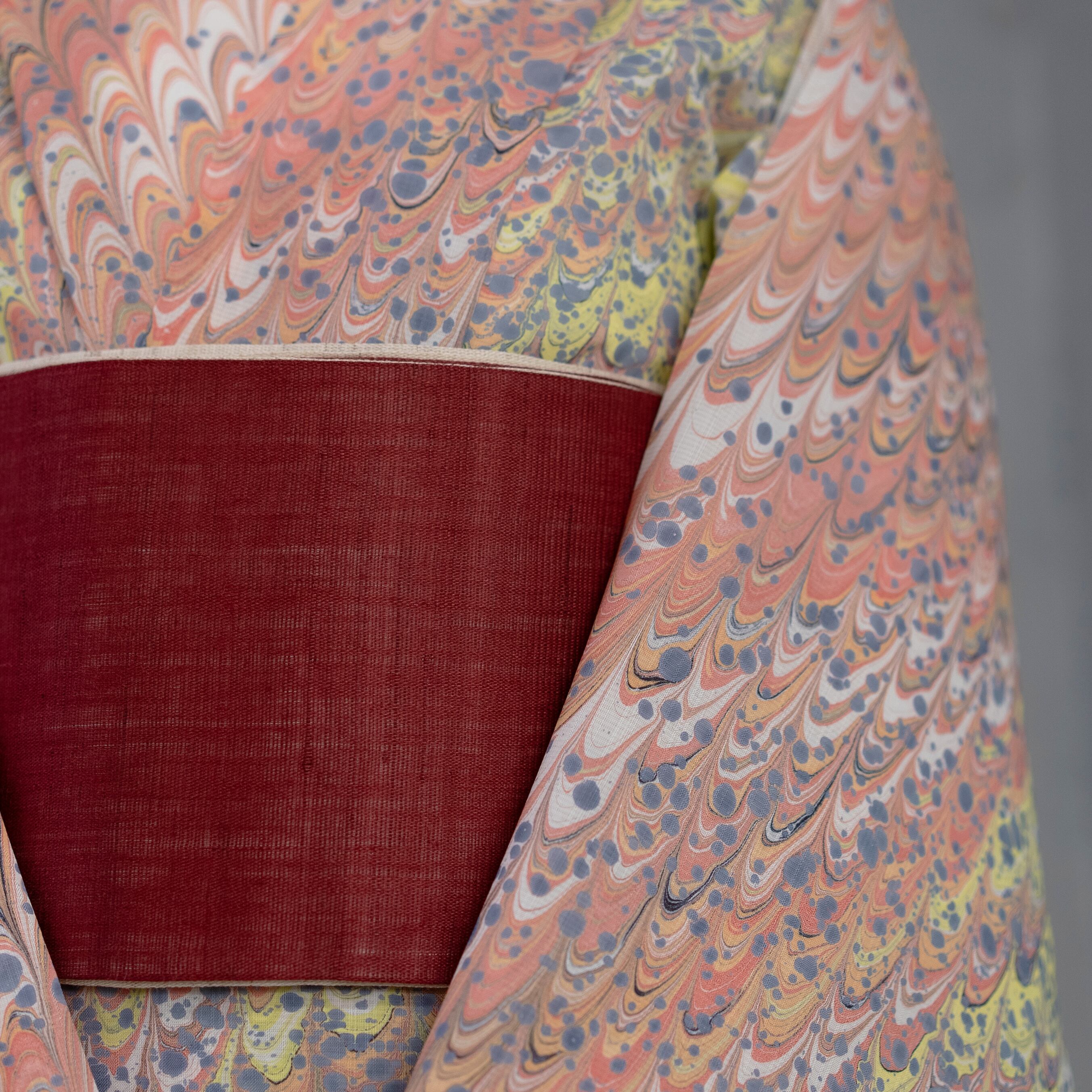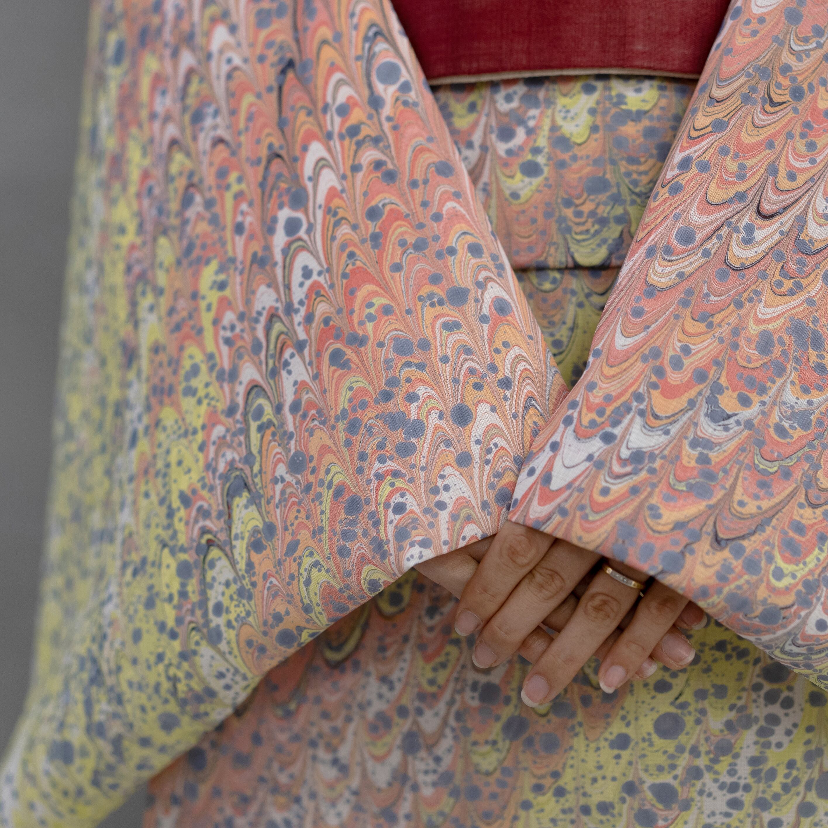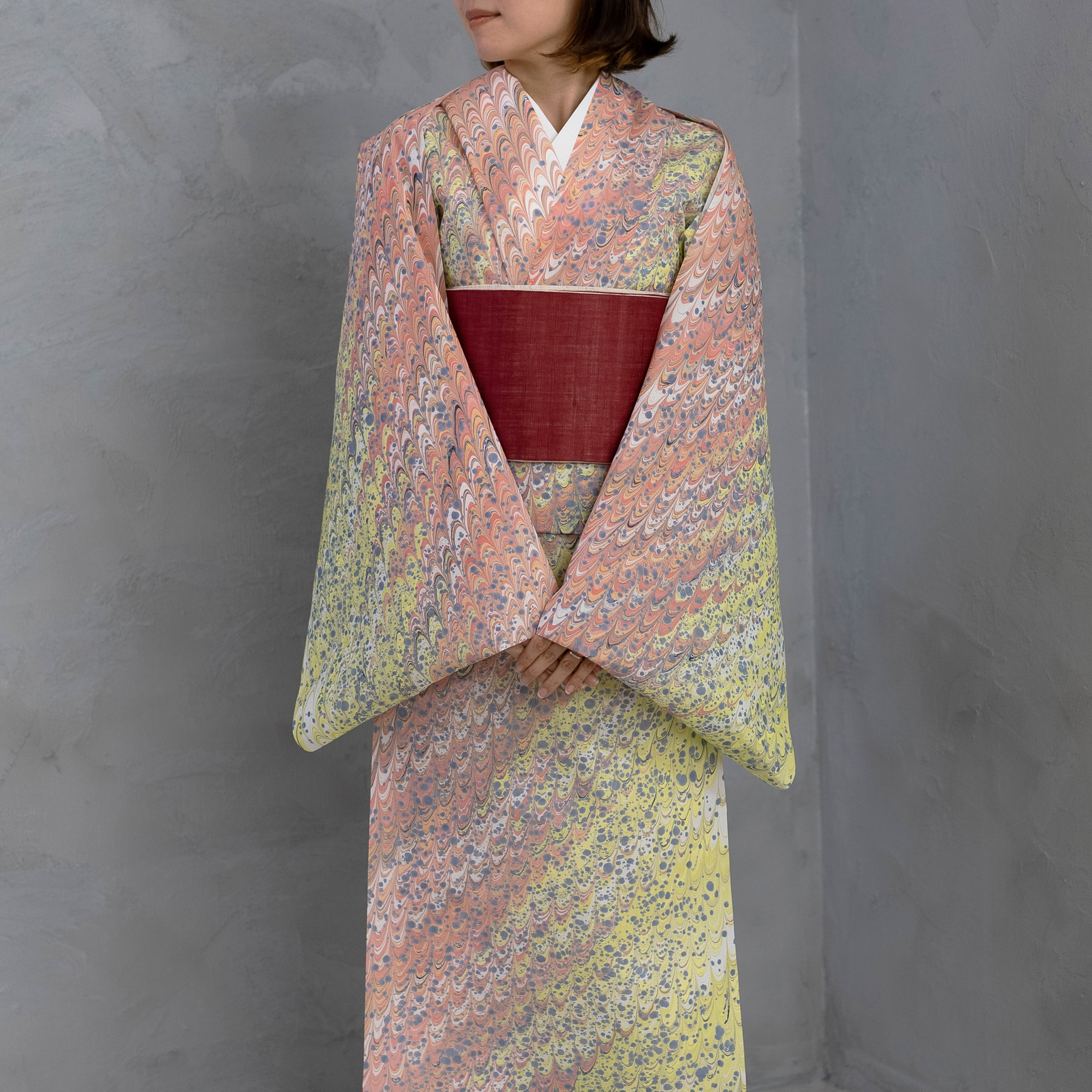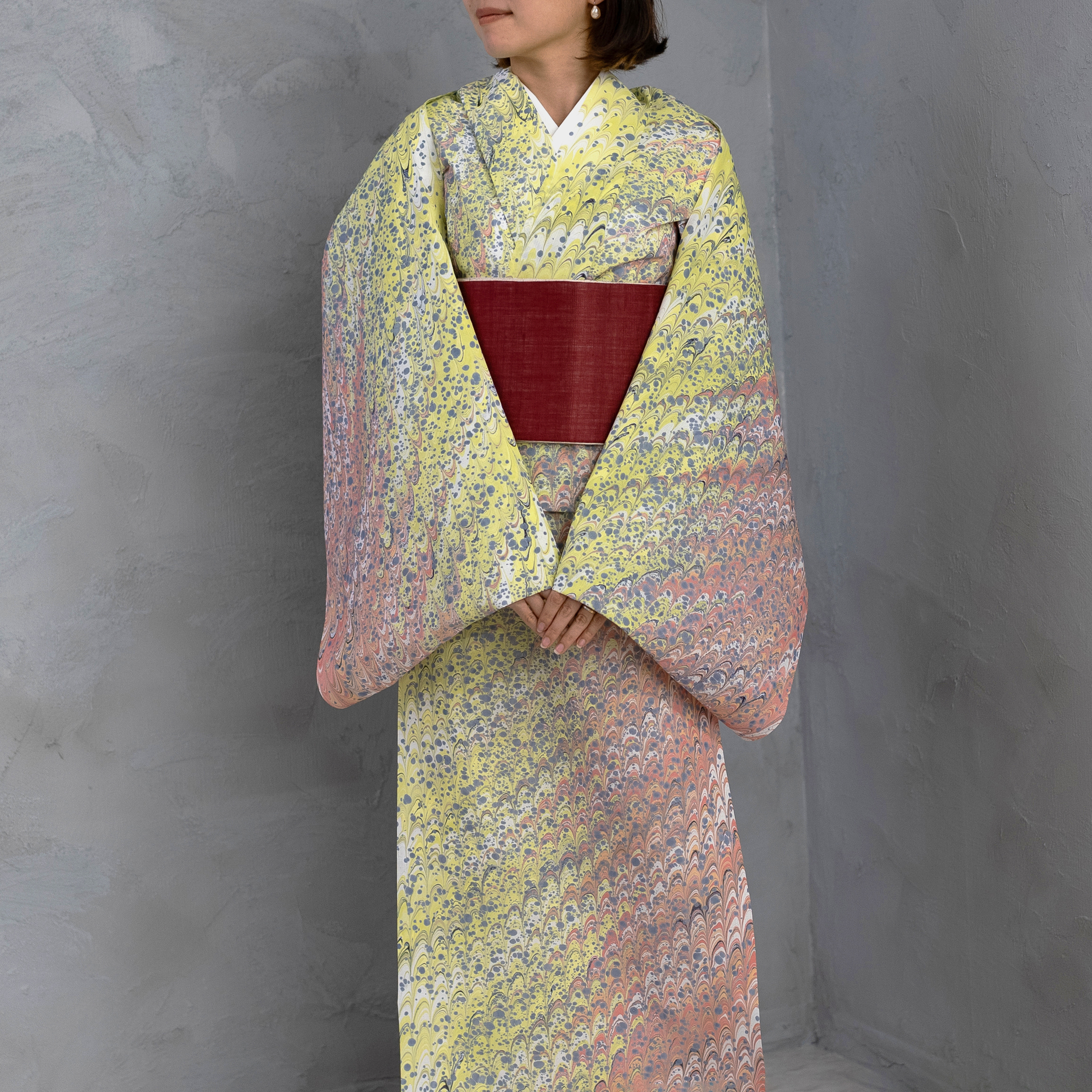 ・【恭平墨流し】は繊細で美しい柄の品質を保つため、一反を3回に分け時間をかけて染めます。反物でご納品する場合3分割にカットされて納品致します。(仕立て上問題はございません)ご理解ご協力のほどお願い致します。(今回の反物は作品によっては、カットされていないものを含みます)