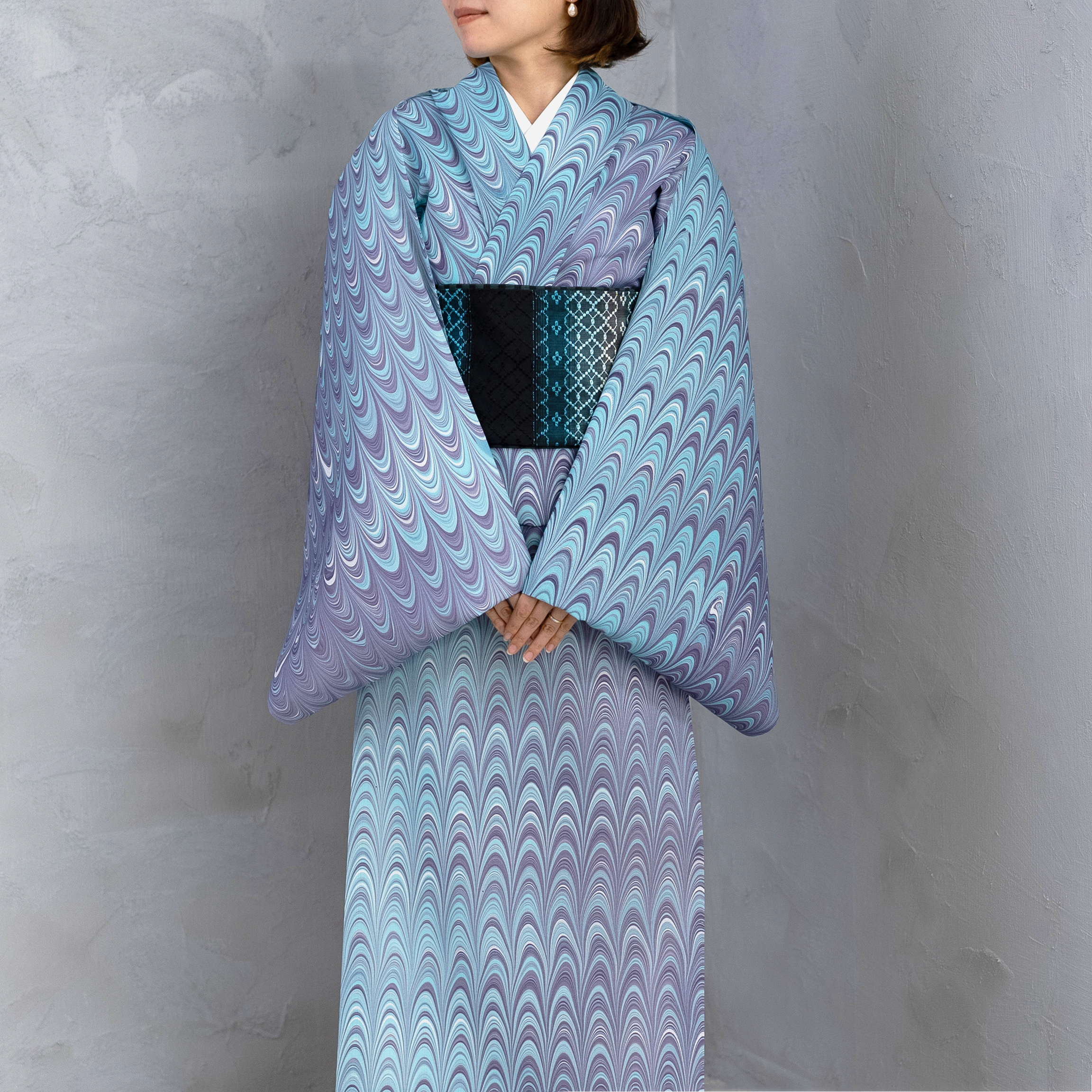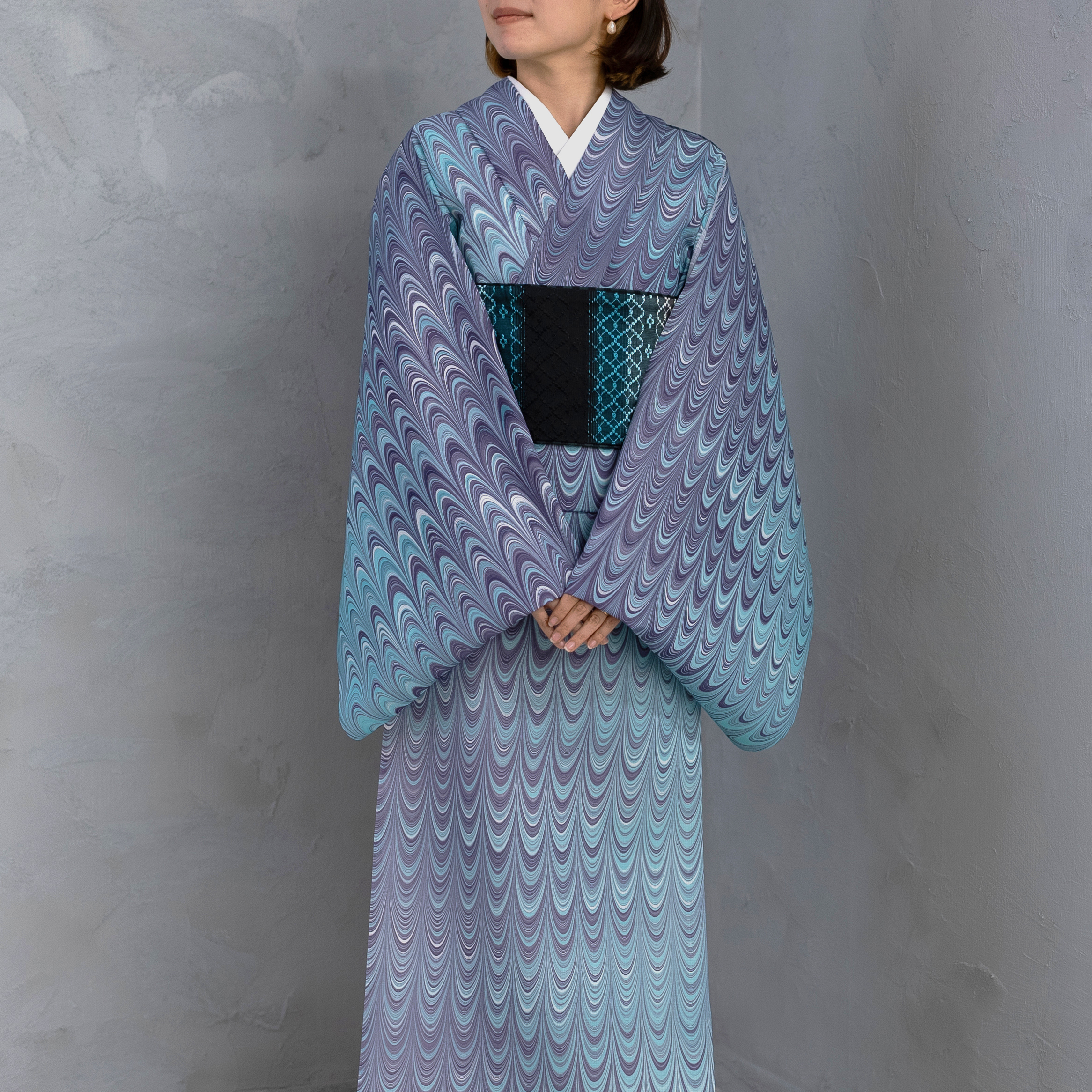 ・【恭平墨流し】は繊細で美しい柄の品質を保つため、一反を3回に分け時間をかけて染めます。反物でご納品する場合3分割にカットされて納品致します。(仕立て上問題はございません)ご理解ご協力のほどお願い致します。(今回の反物は作品によっては、カットされていないものを含みます)