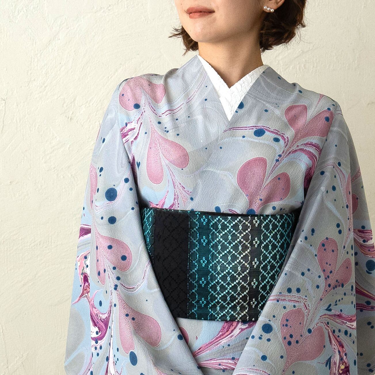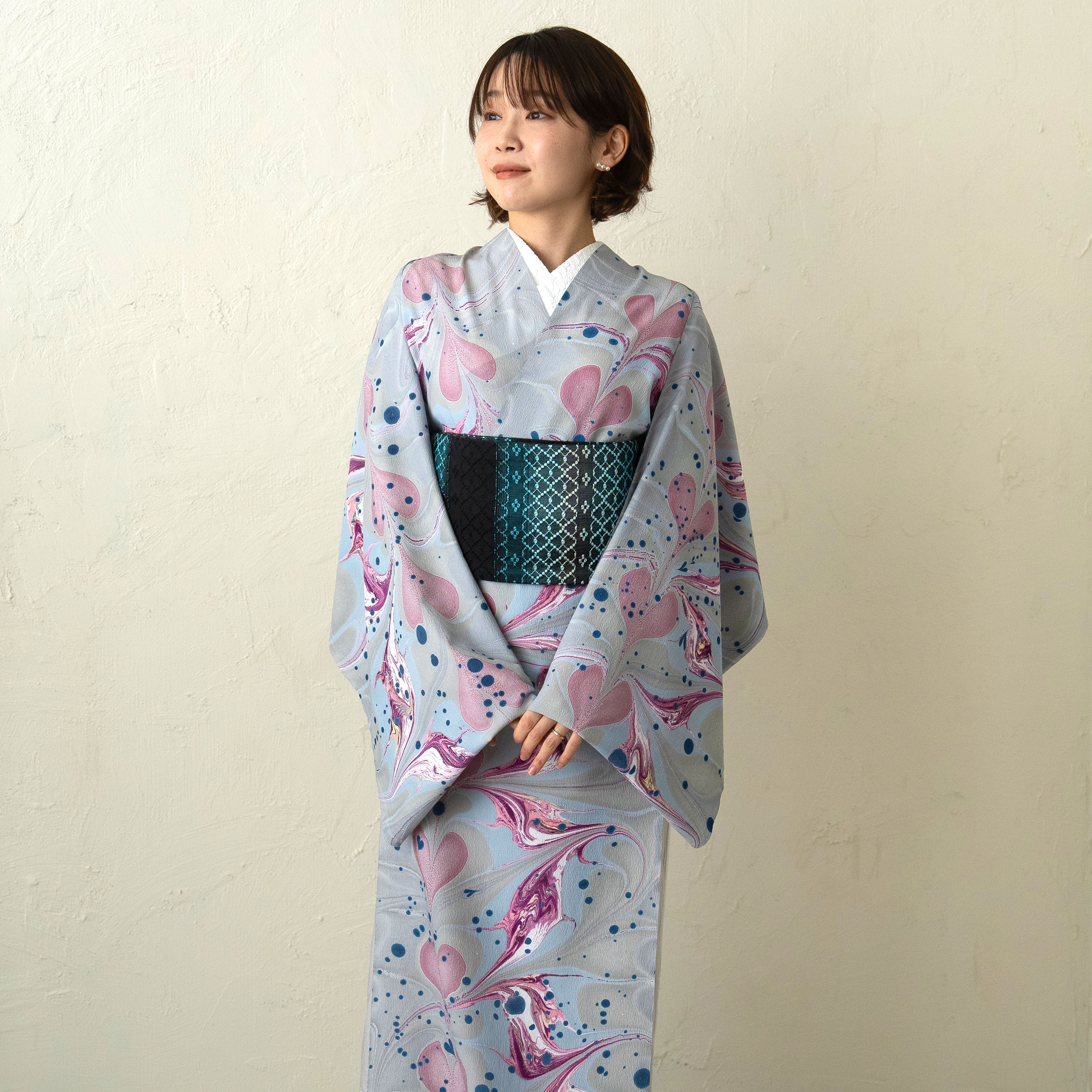 こちらは『墨流し作家:恭平』が染めた洗える着物の反物です。
