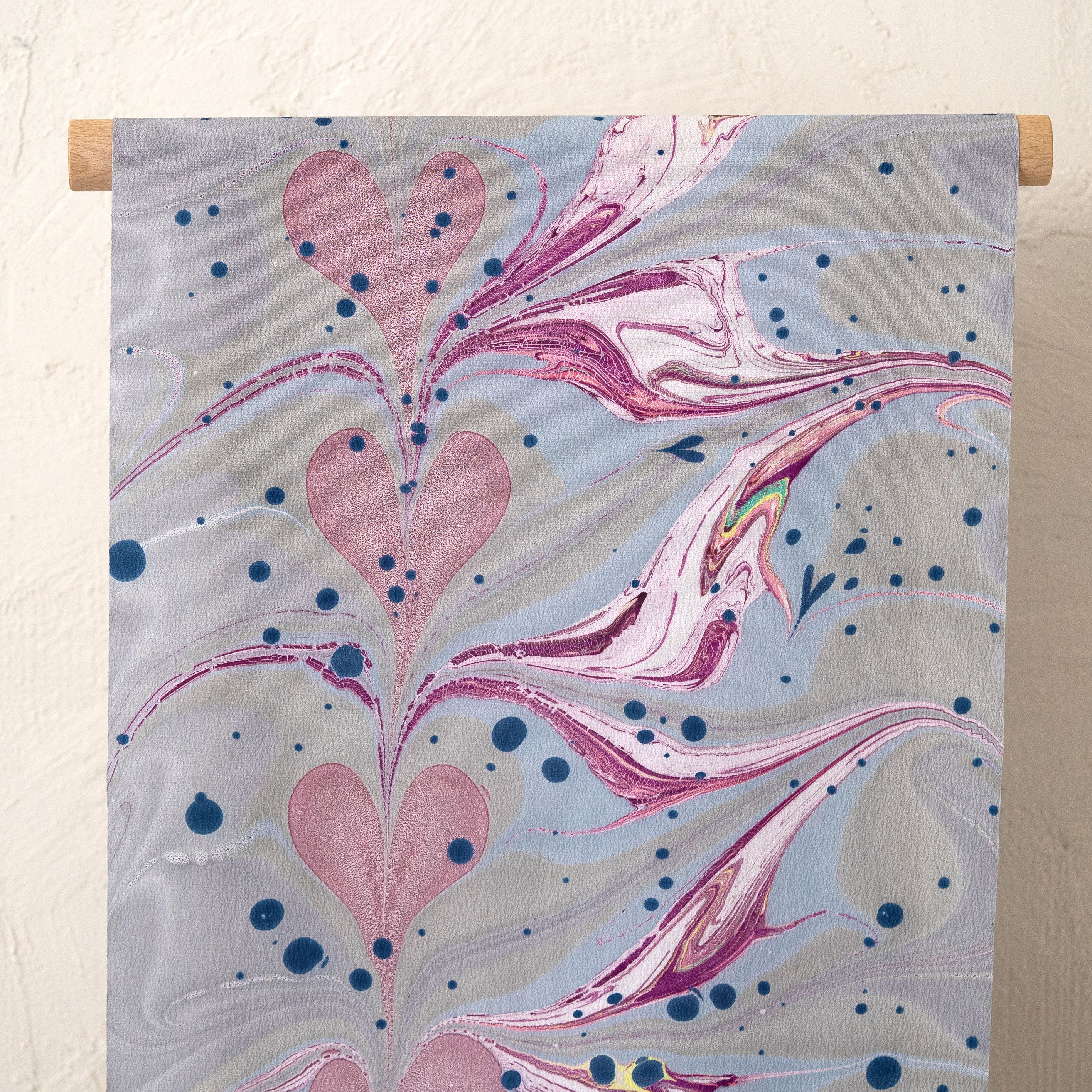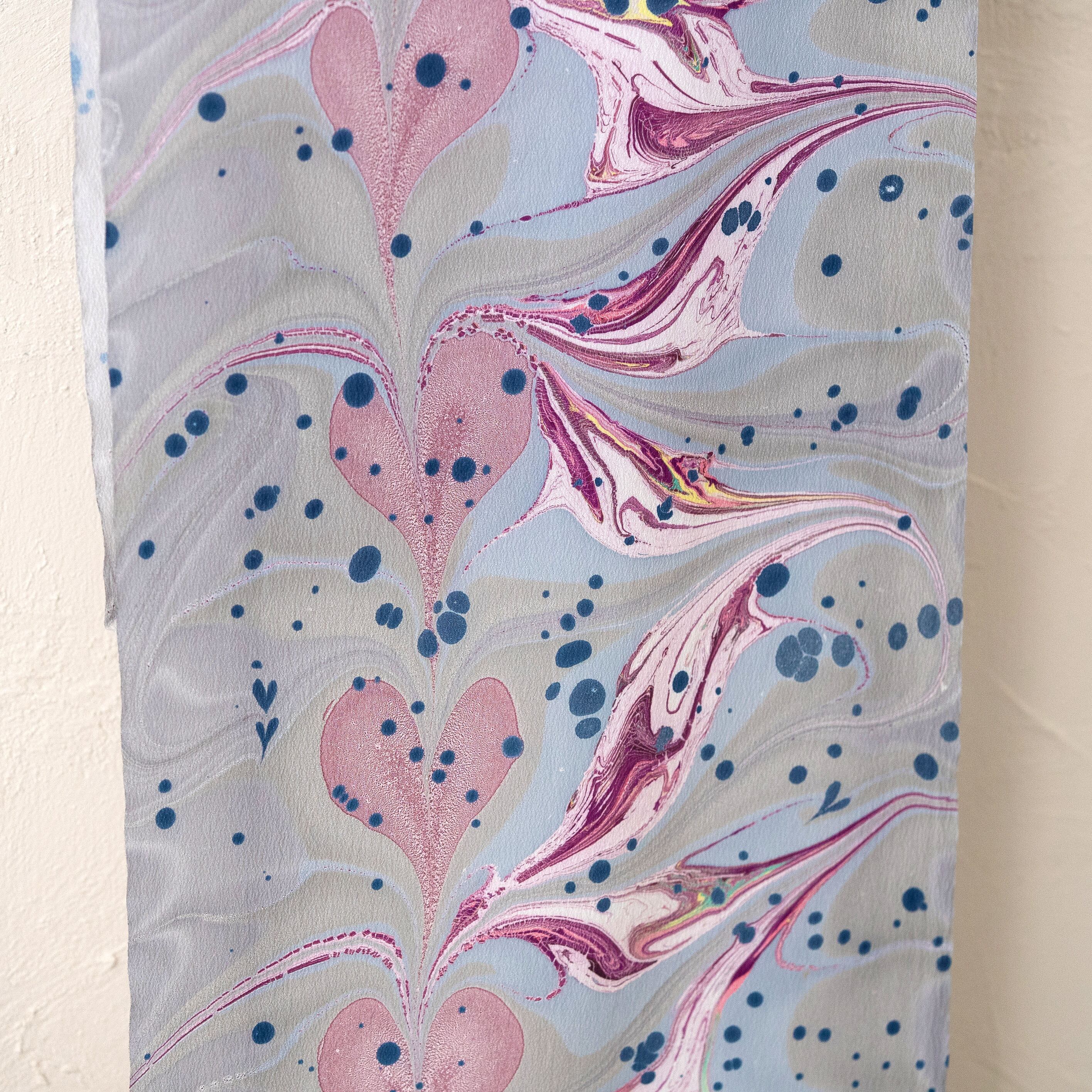 通常の〈KYOHEI〉墨流しのセオリーとは異なり、水面上で模様を遊ばせながら生まれた、独創的なハート柄のデザインです。