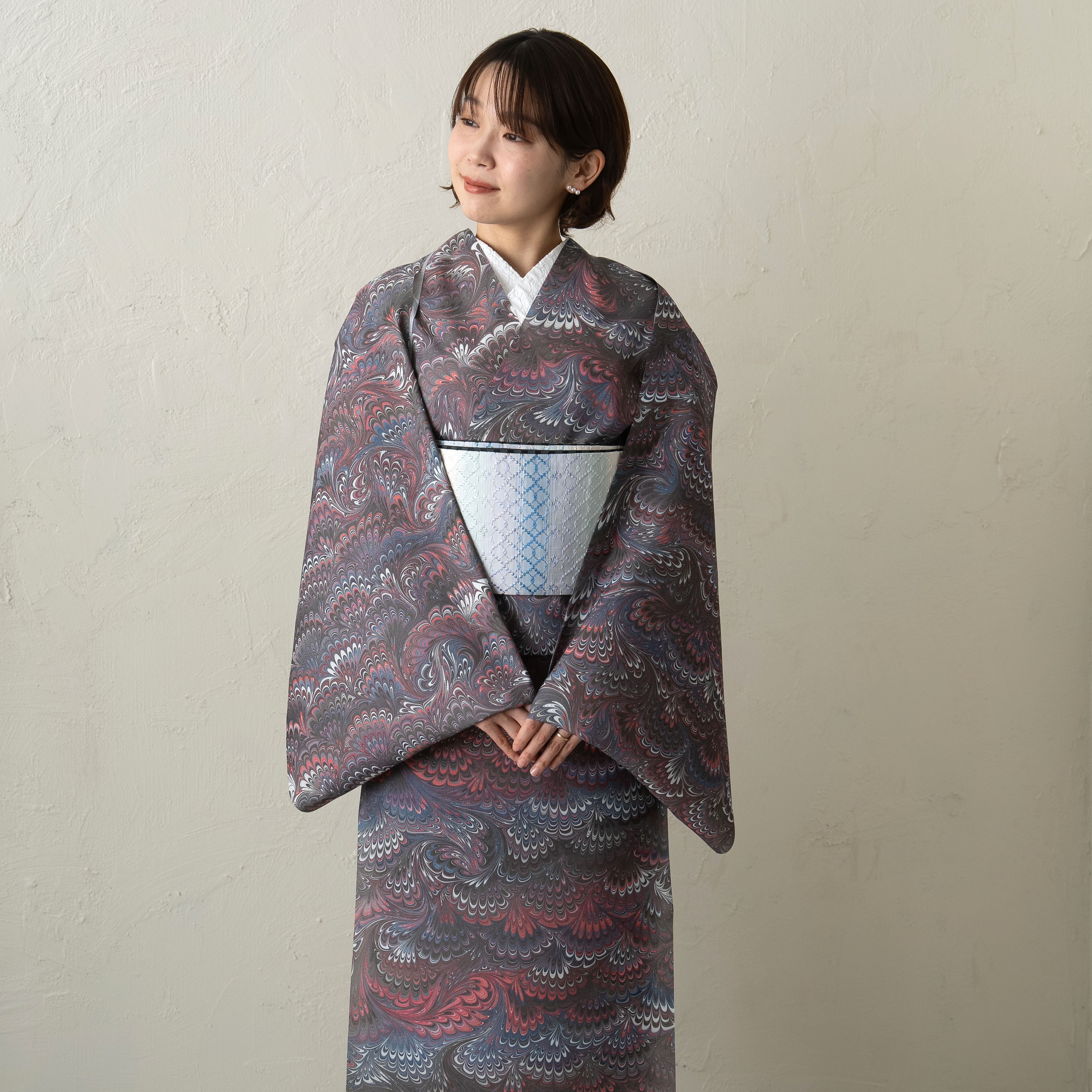 ・【恭平墨流し】は繊細で美しい柄の品質を保つため、一反を3回に分け時間をかけて染めます。反物でご納品する場合3分割にカットされて納品致します。(仕立て上問題はございません)ご理解ご協力のほどお願い致します。(今回の反物は作品によっては、カットされていないものを含みます)